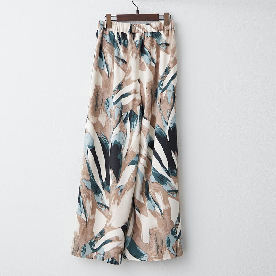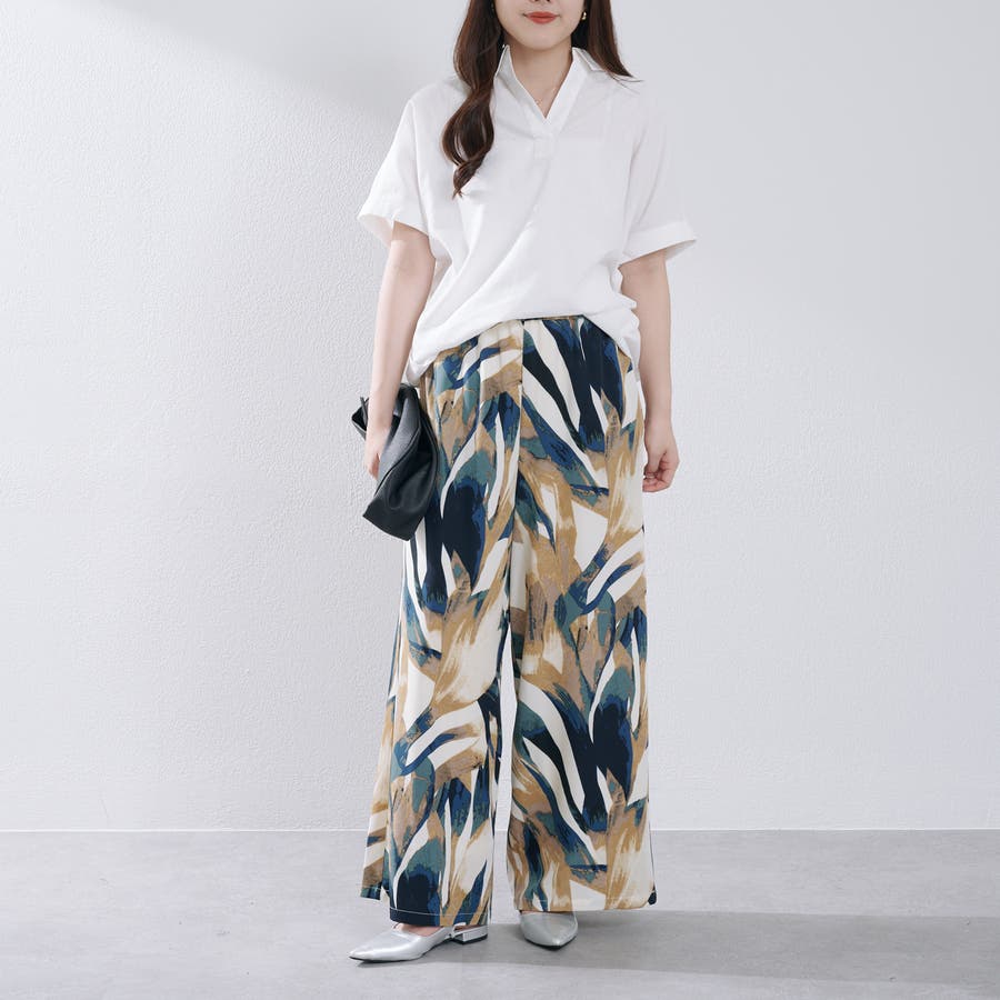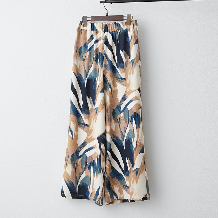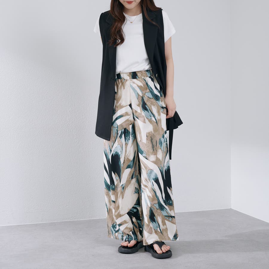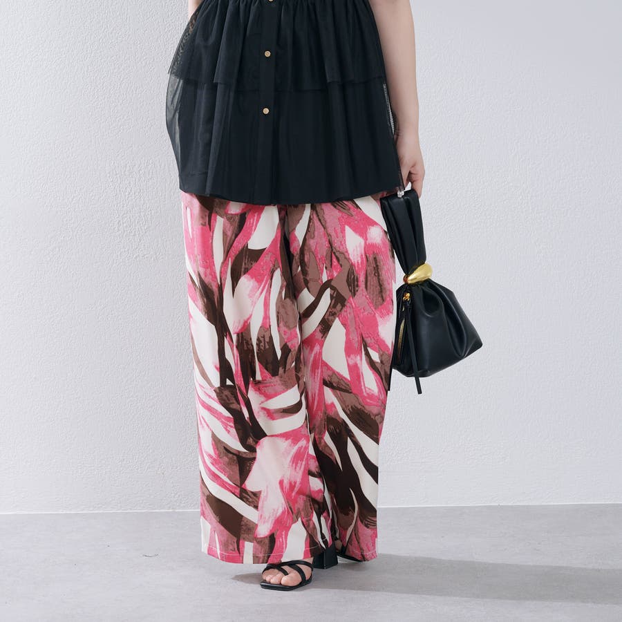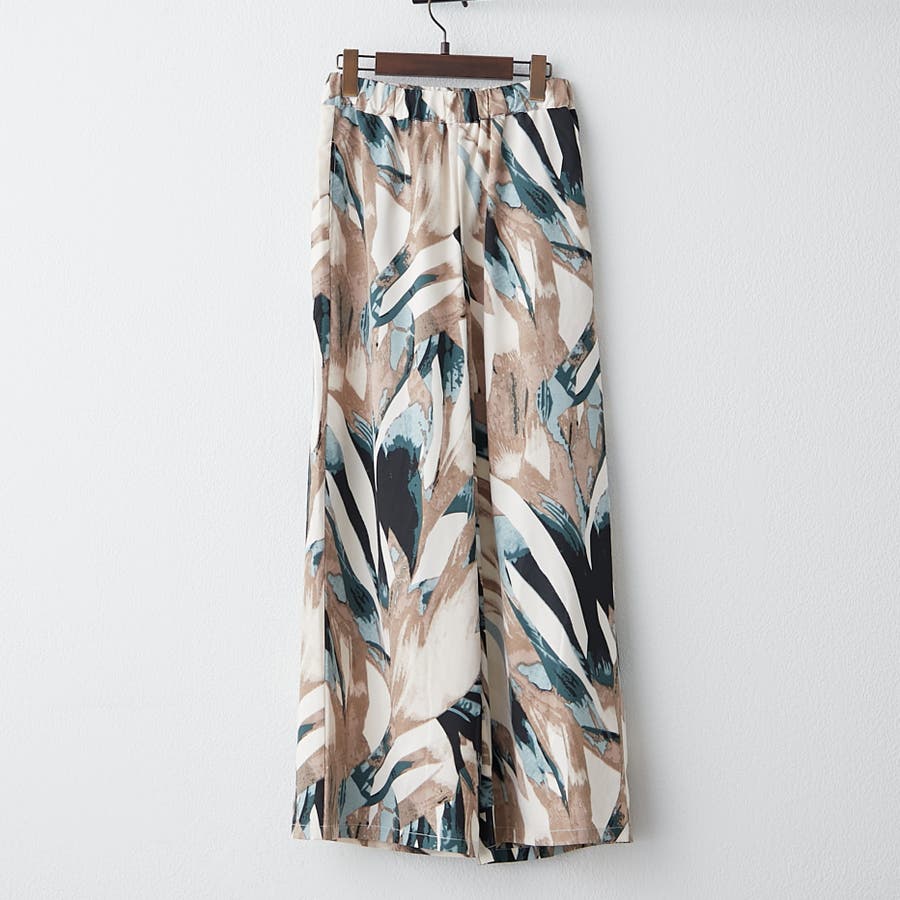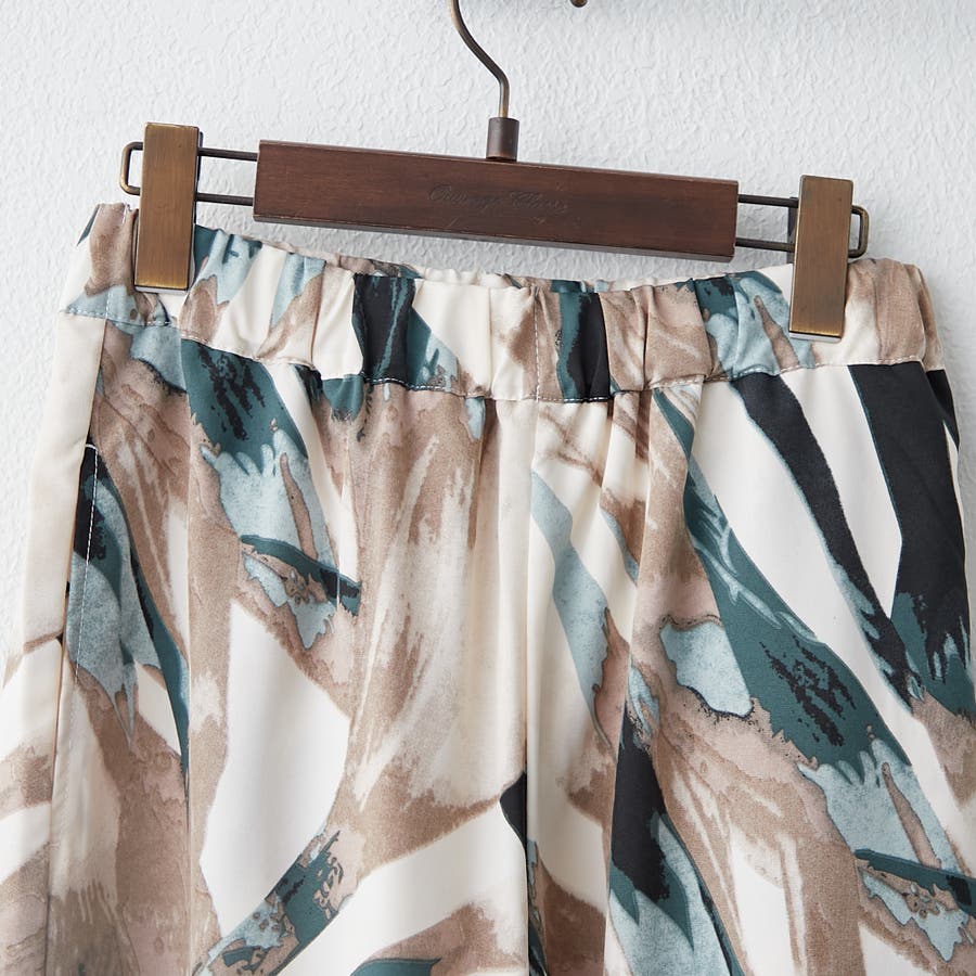 ・ぱっと目を惹く総柄デザインが印象的なイージーパンツ