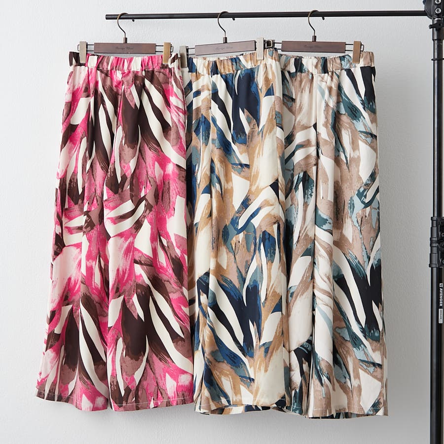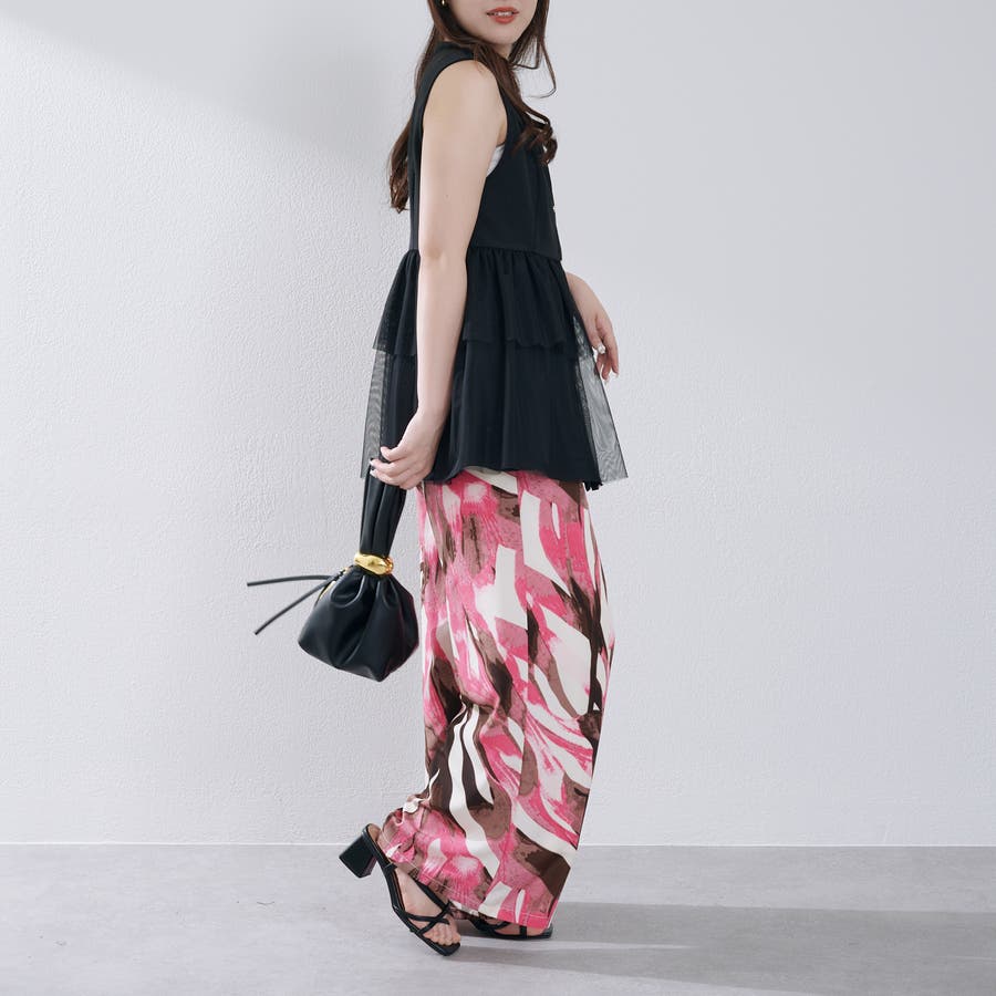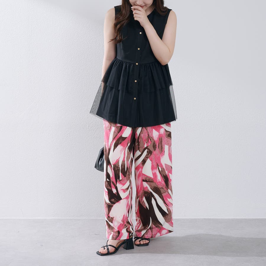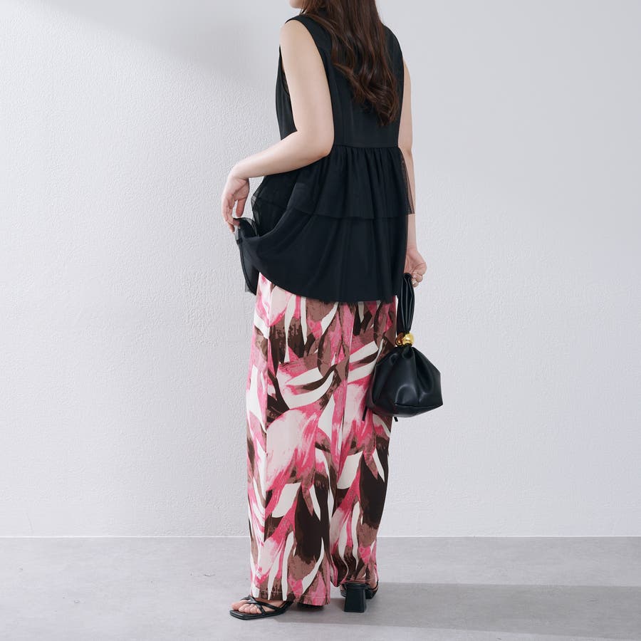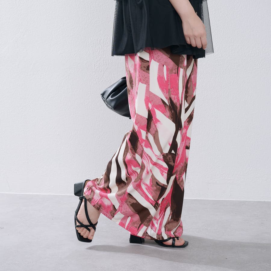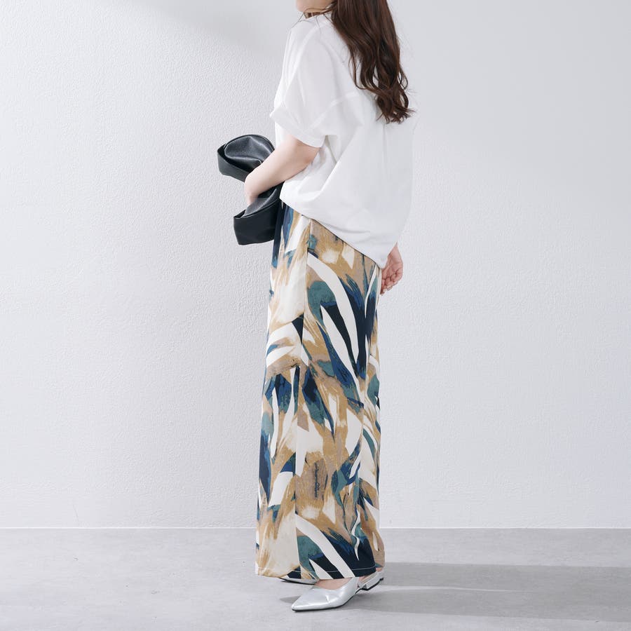 ・ぱっと目を惹く総柄デザインが印象的なイージーパンツ