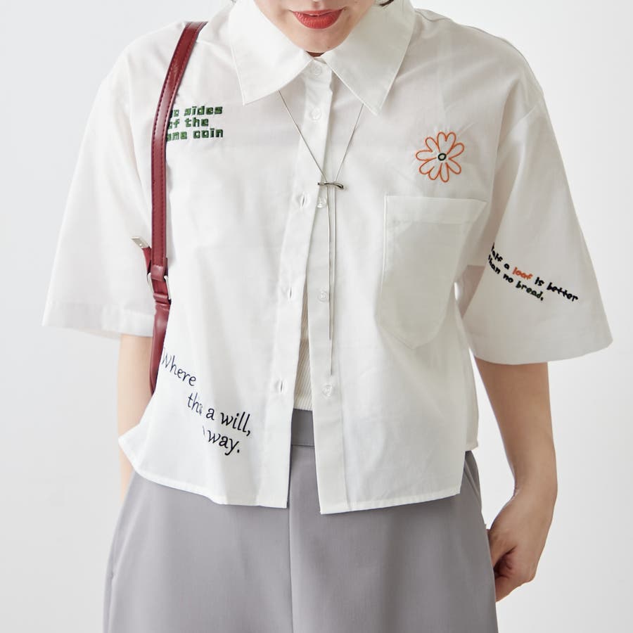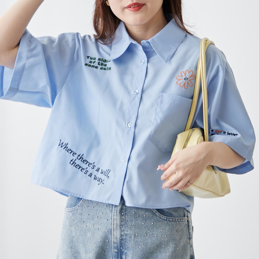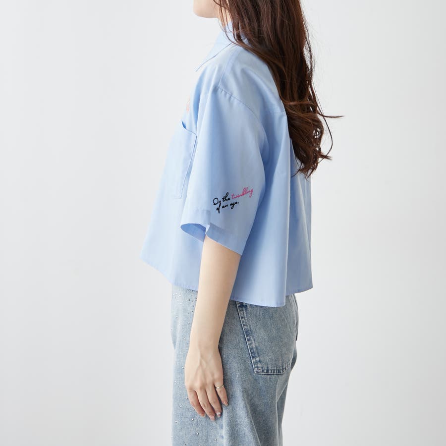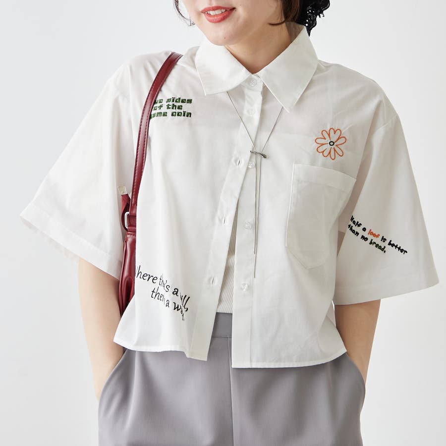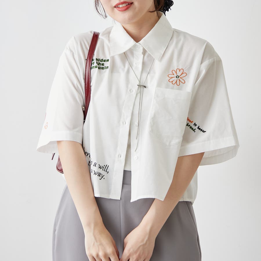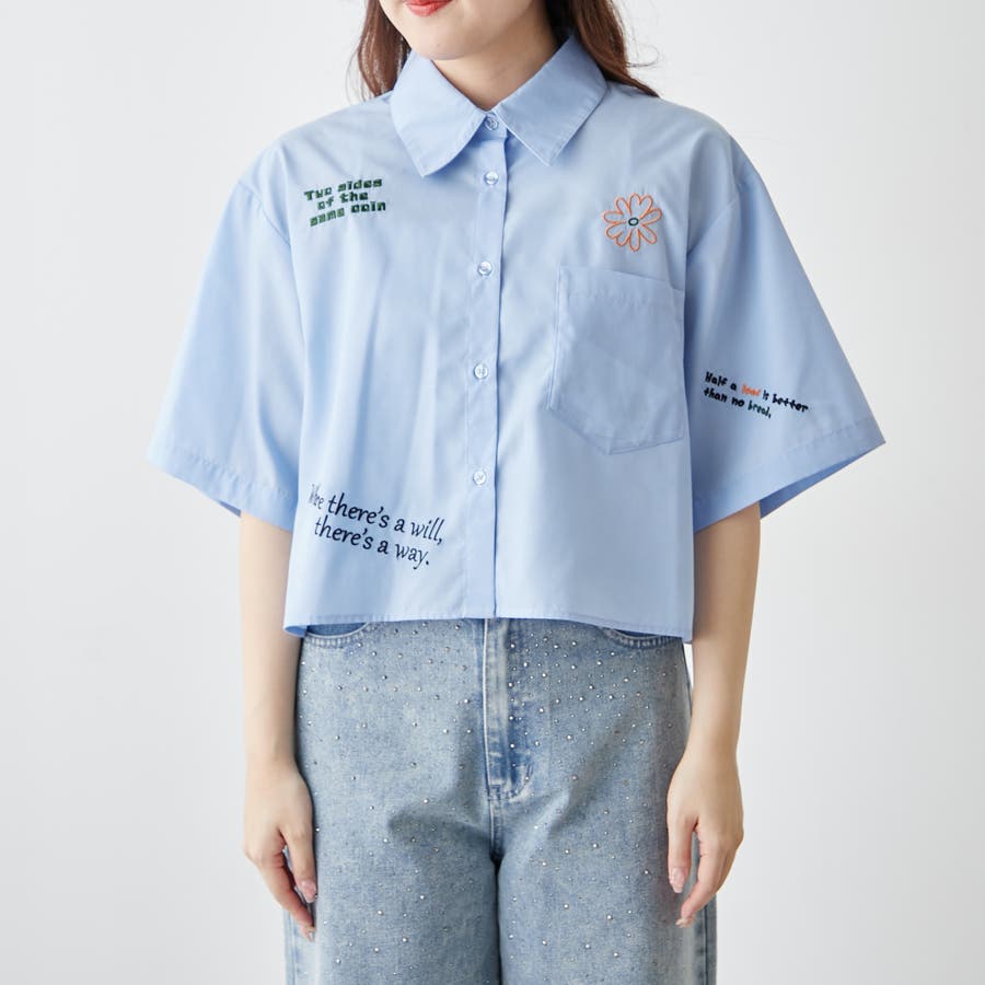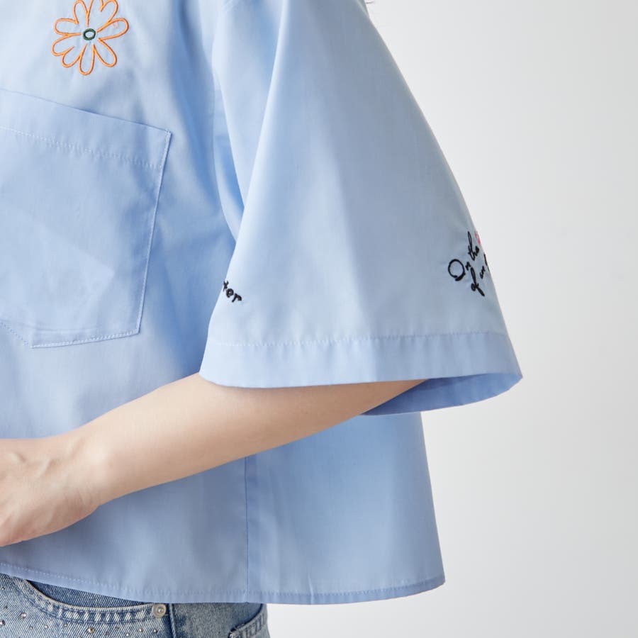 ・カラフルな刺繍がポップで可愛いショート丈シャツ