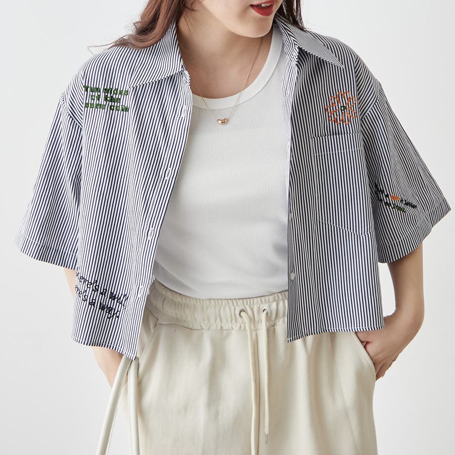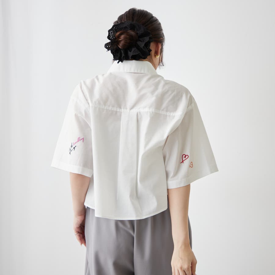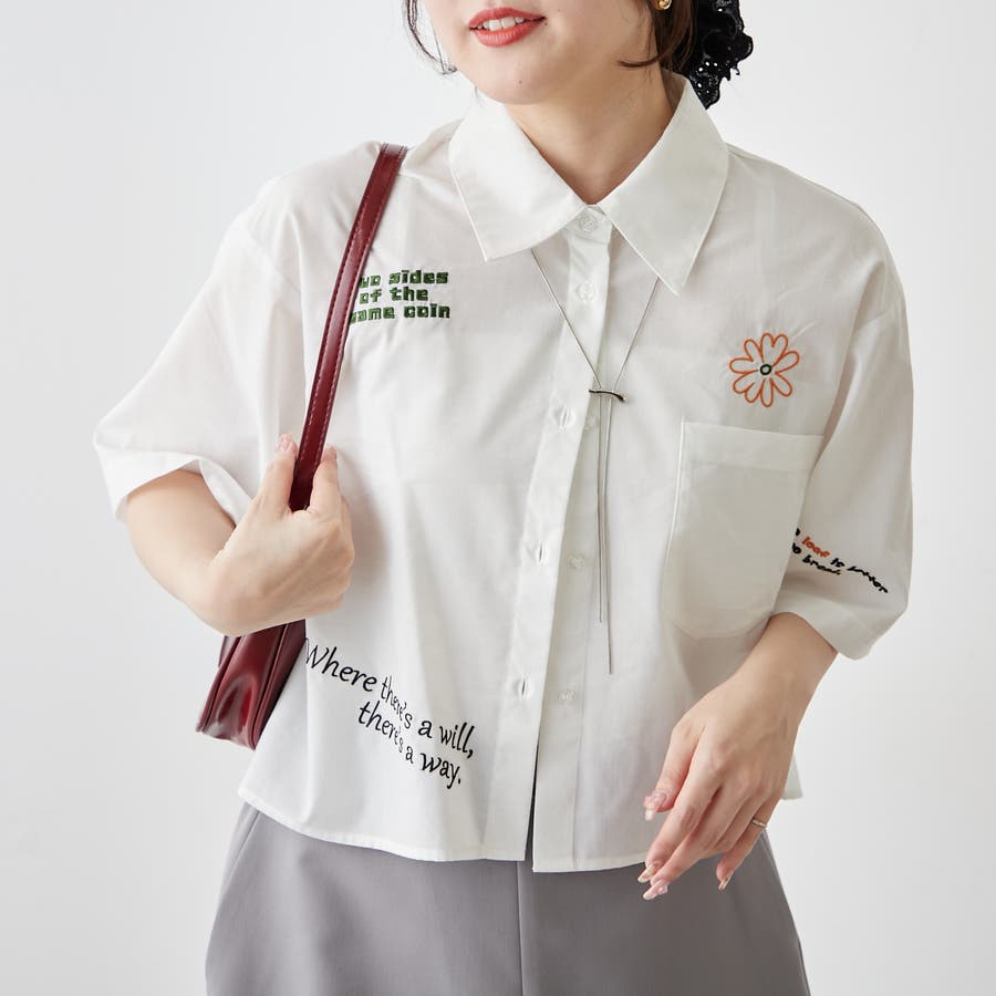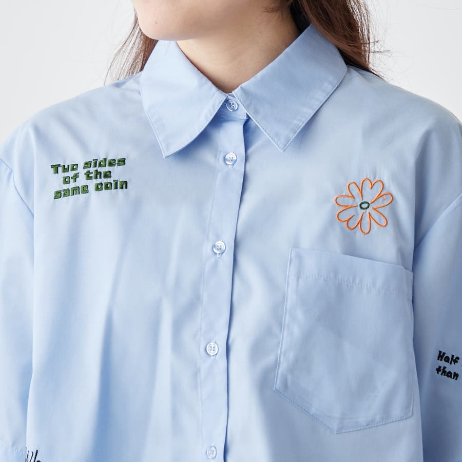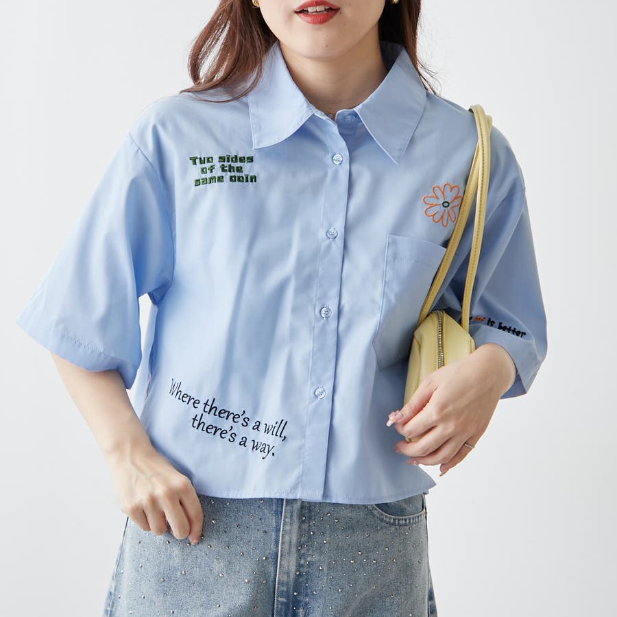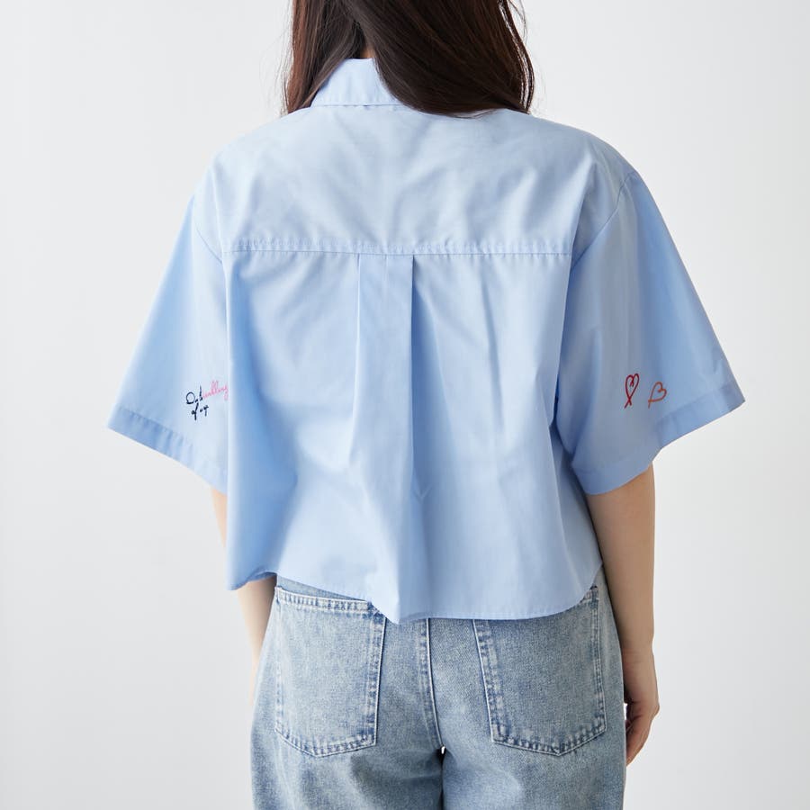 ・カラフルな刺繍がポップで可愛いショート丈シャツ