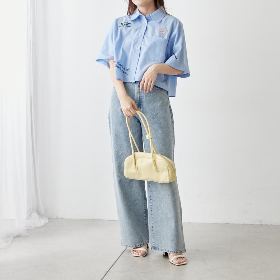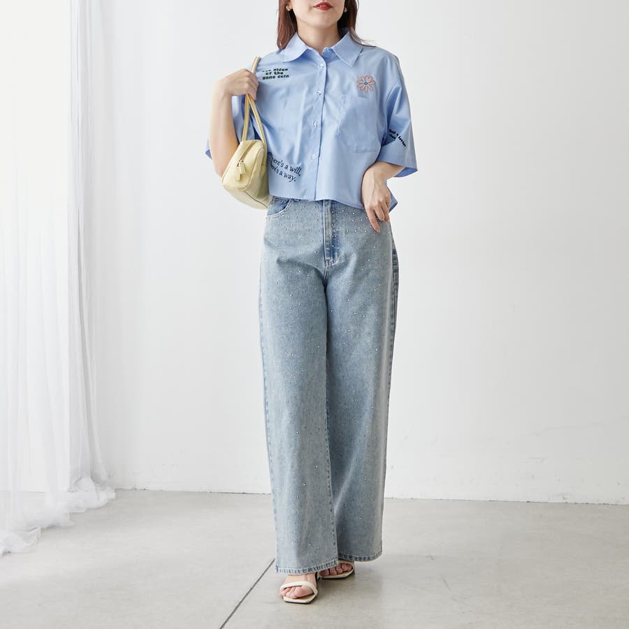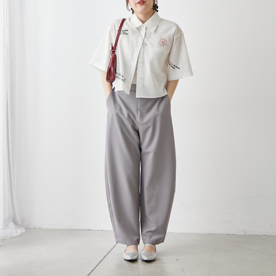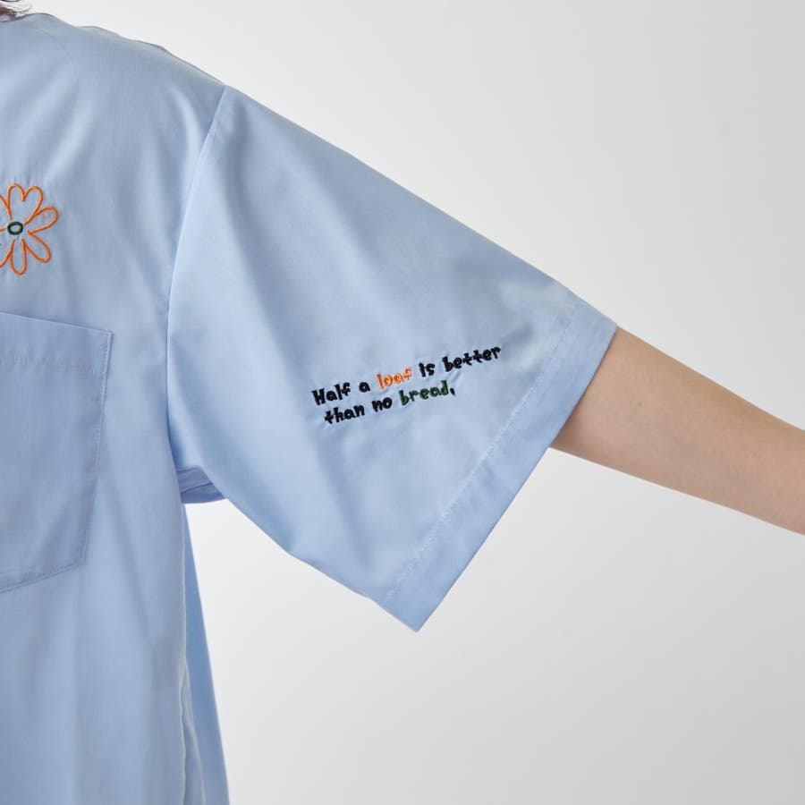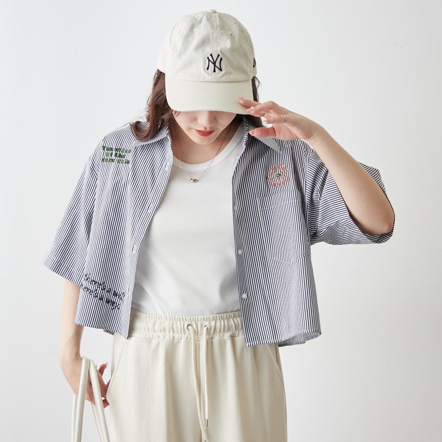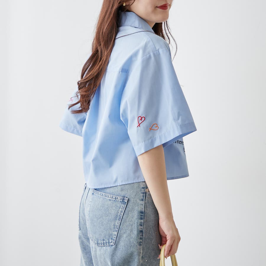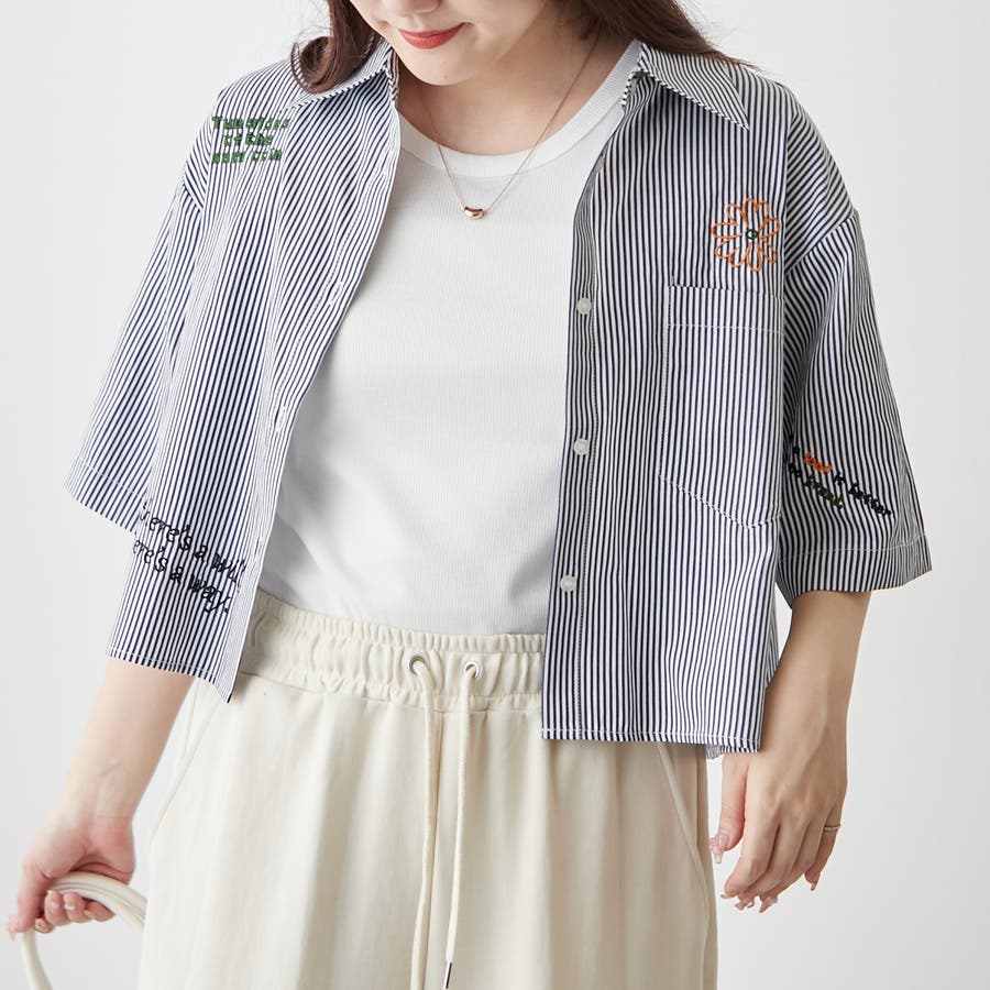 ・カラフルな刺繍がポップで可愛いショート丈シャツ