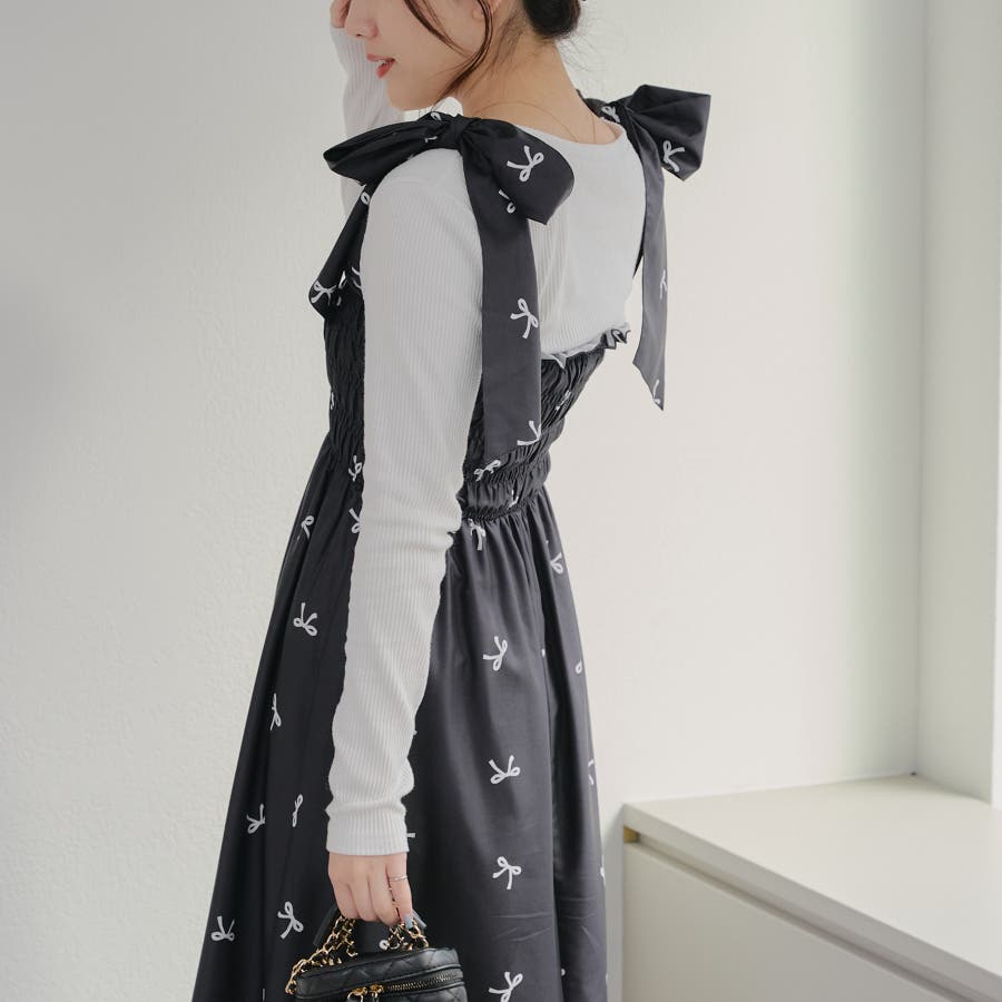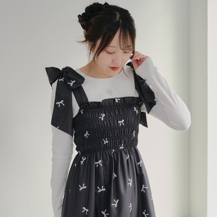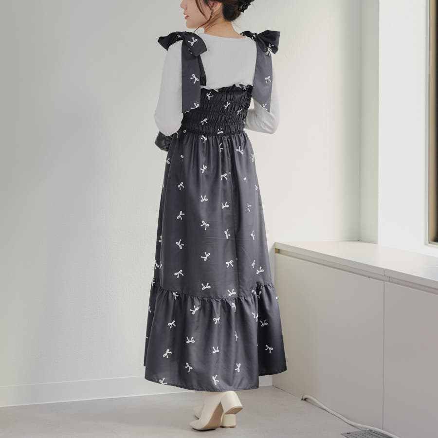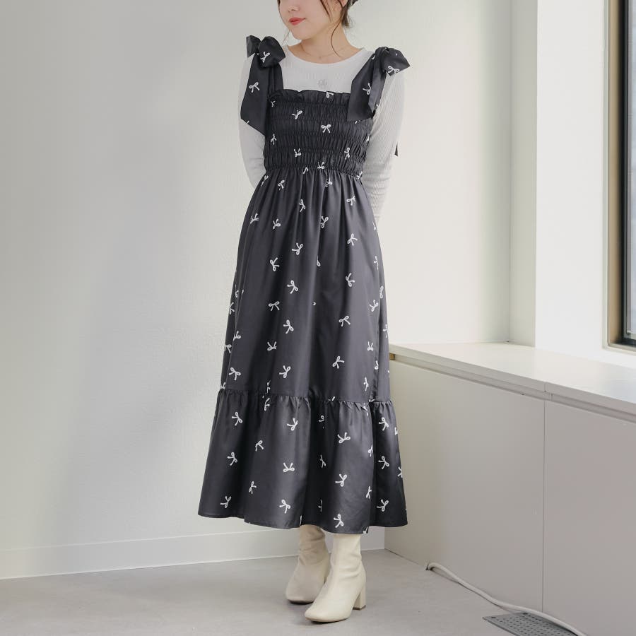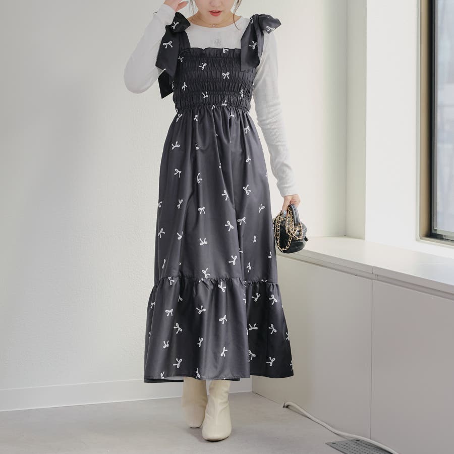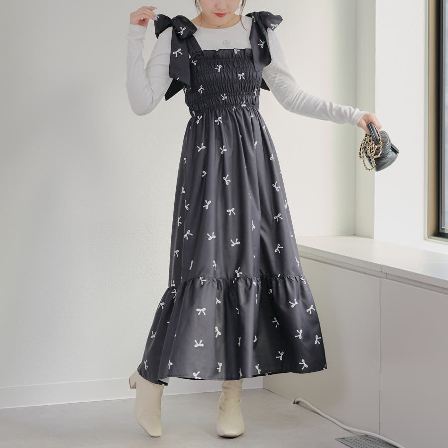 ・女っぽさが叶う肩リボンが可愛いティアードワンピ。