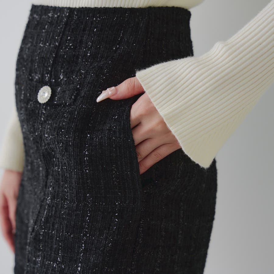 ・ハイウエストボトムなので、ショート丈トップスやジャケットとの合わせが抜群です。
