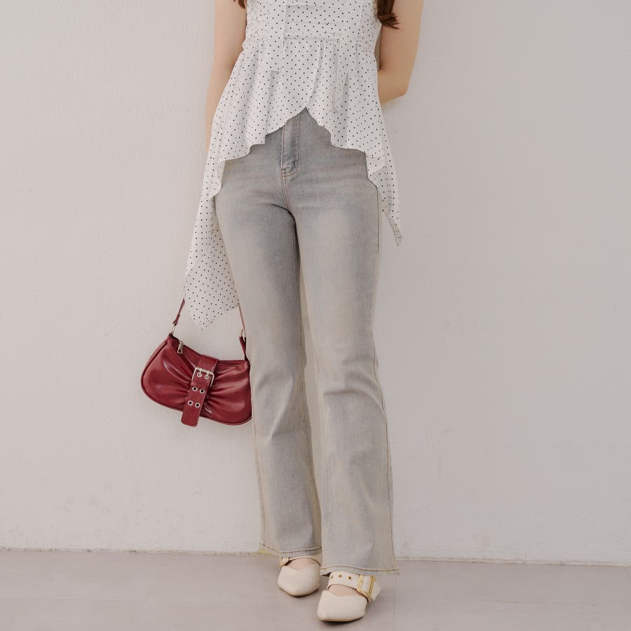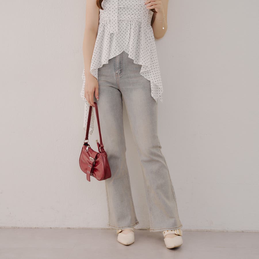 ・トレンドのフレアシルエットで、脚長効果抜群のデニムパンツ。