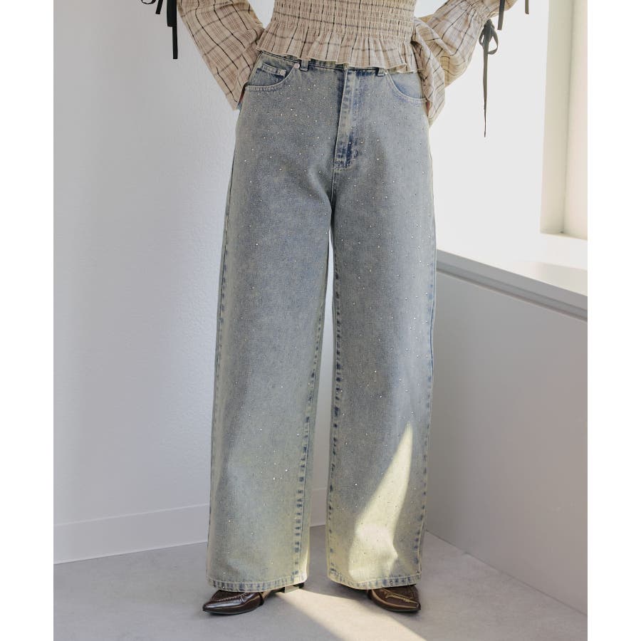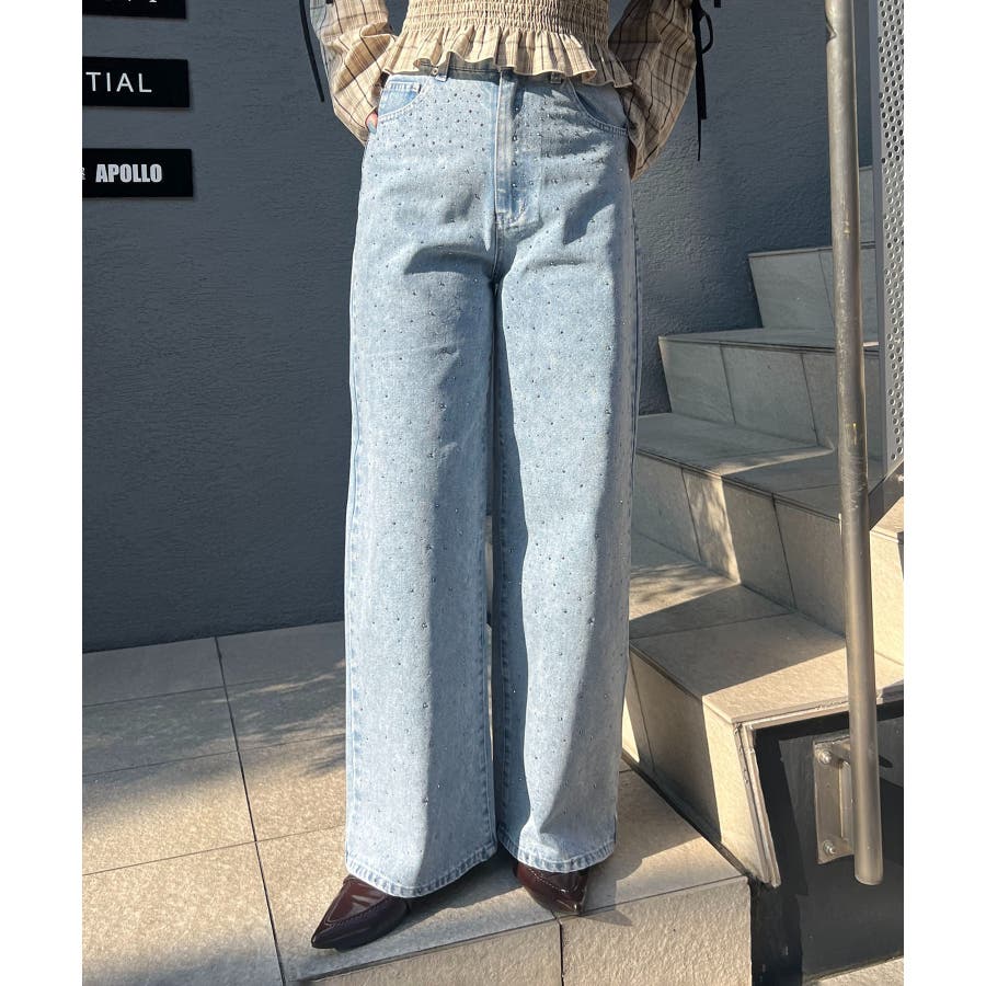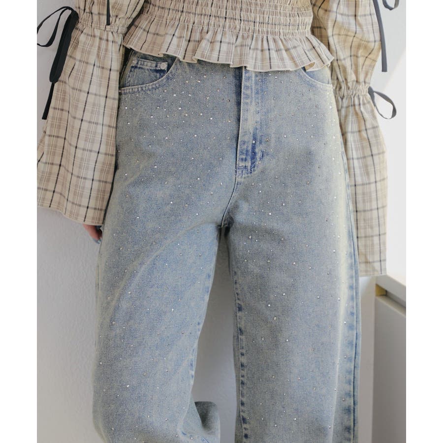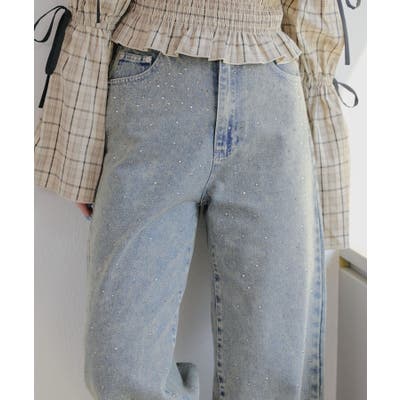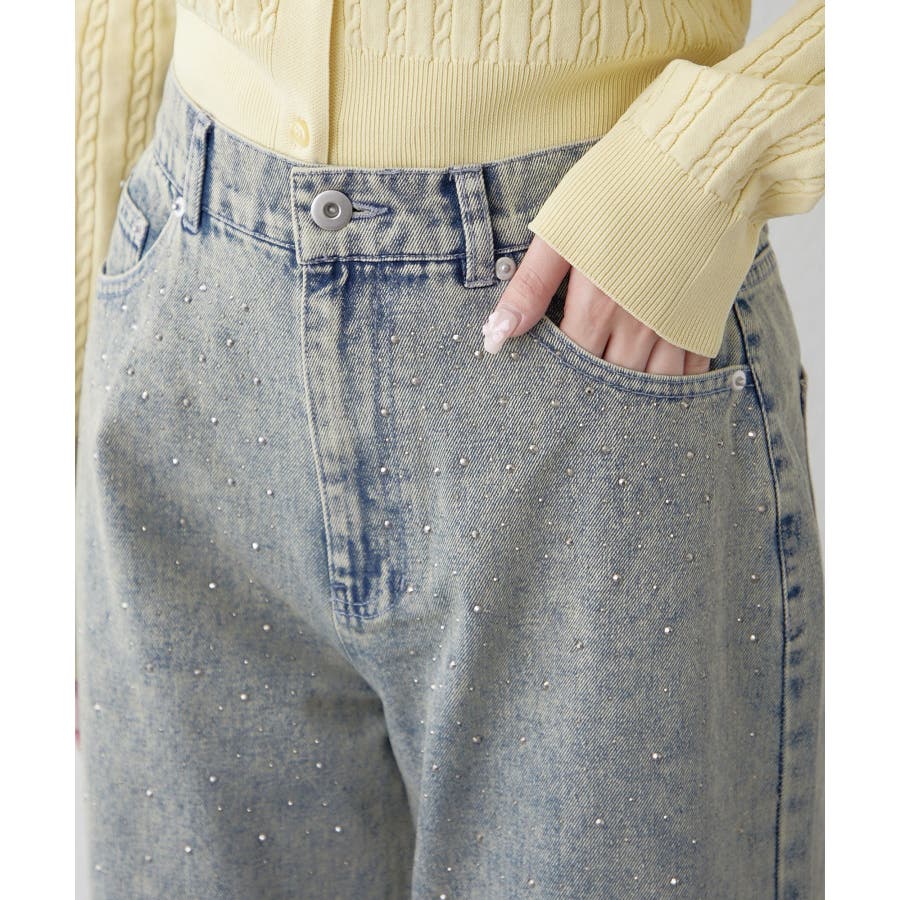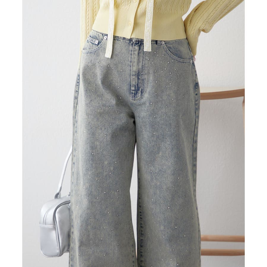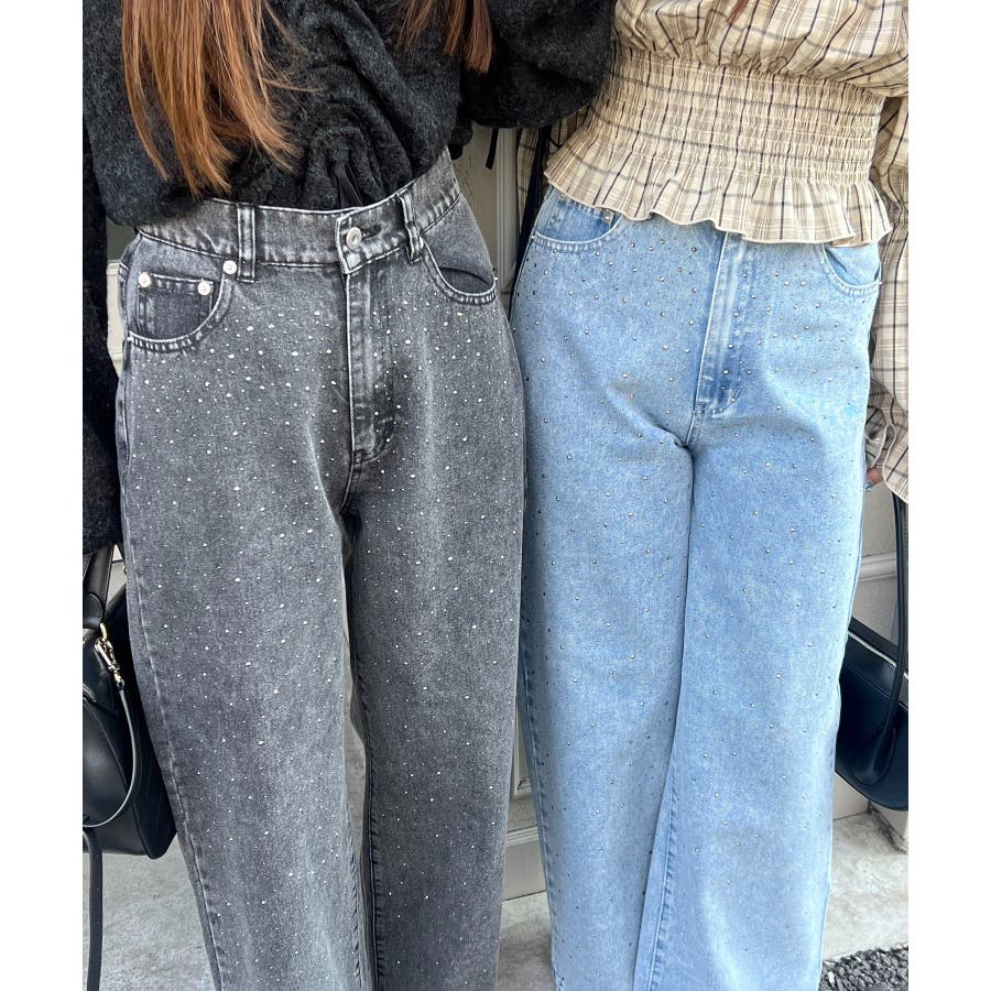 RMAF Remindmeandforever olivedesolive niceclaup 秋 秋服 秋物 夏 夏服 夏物 韓国 韓国系 韓国風 韓国ファッション 10代 20代 30代 大人 人気 大人かわいい 大人カジュアル トレンド 新作 プチプラ デニム デニムパンツ パンツ ボトム ストーン付きデニム カジュアル 0852020110