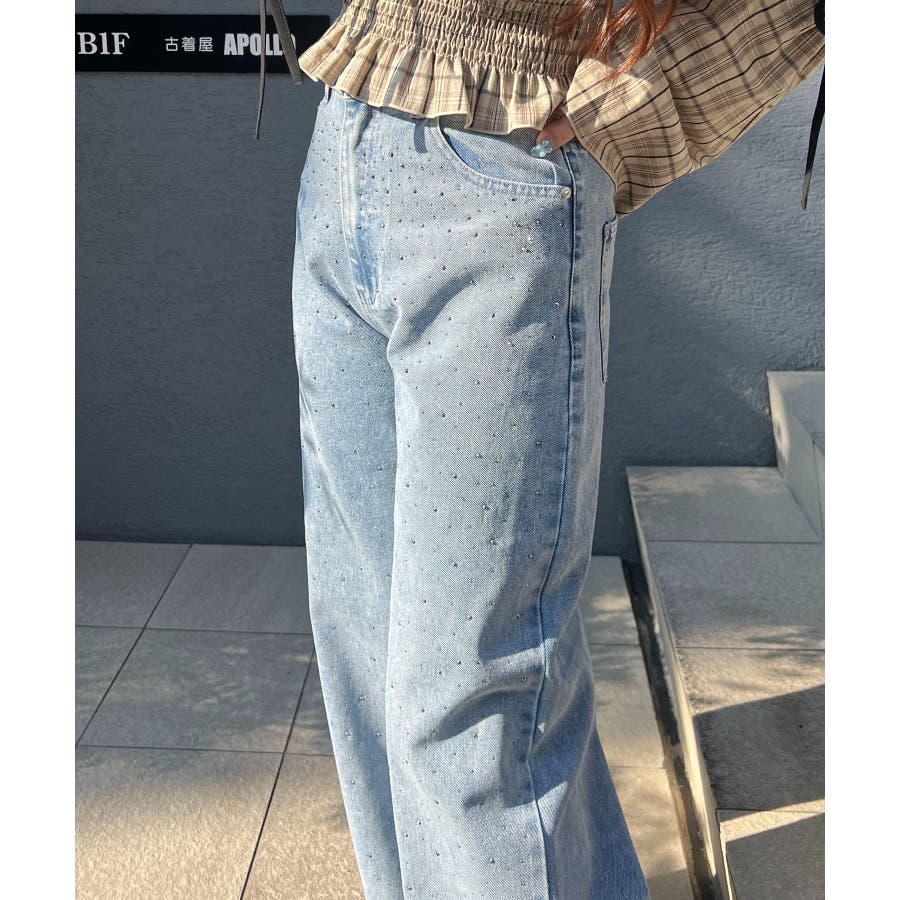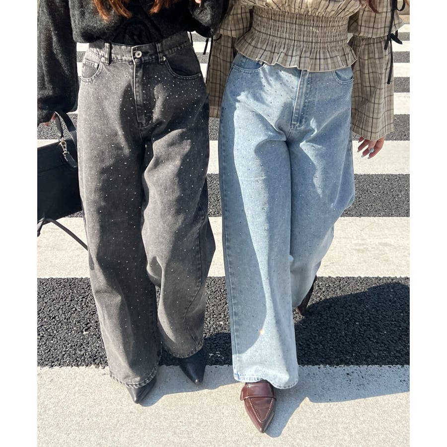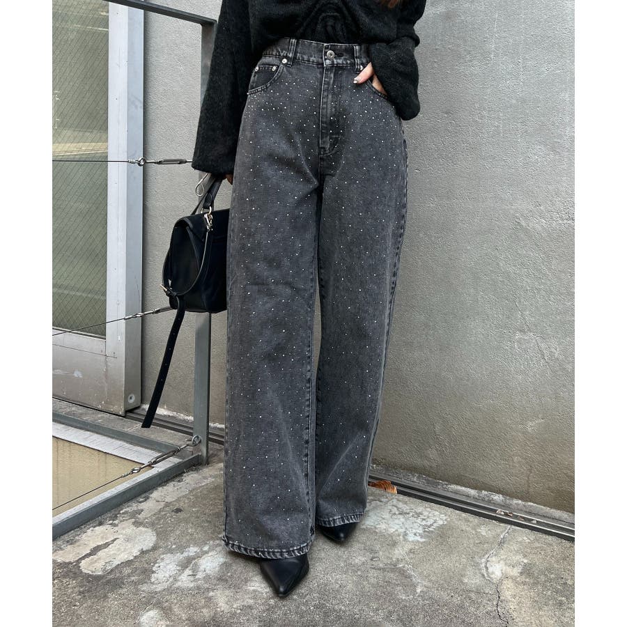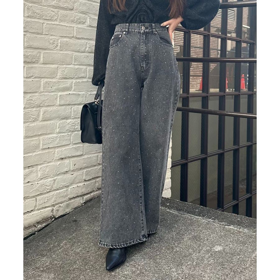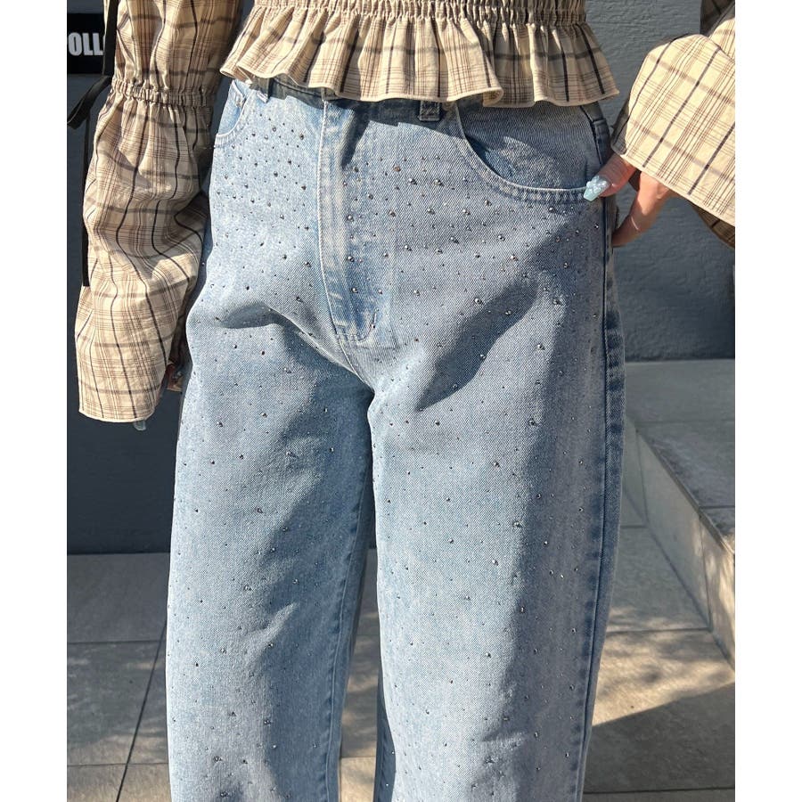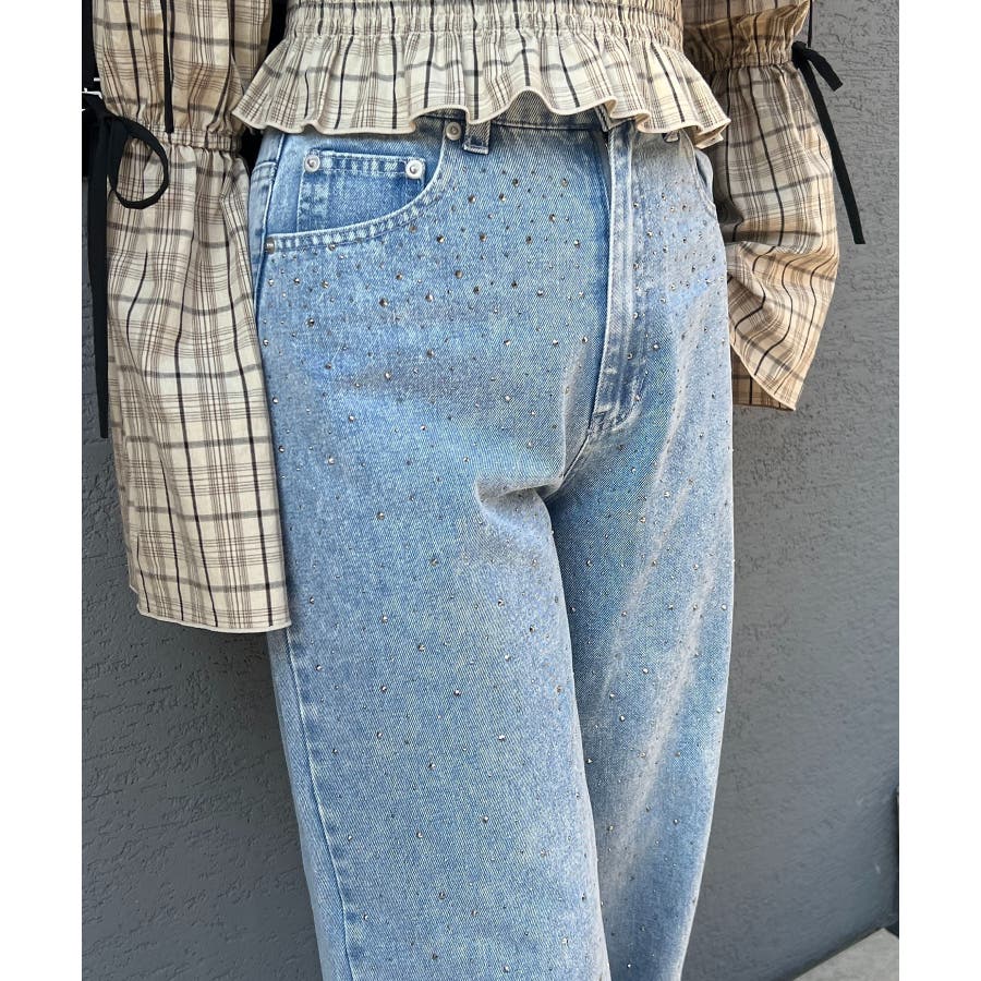 RMAF Remindmeandforever olivedesolive niceclaup 秋 秋服 秋物 夏 夏服 夏物 韓国 韓国系 韓国風 韓国ファッション 10代 20代 30代 大人 人気 大人かわいい 大人カジュアル トレンド 新作 プチプラ デニム デニムパンツ パンツ ボトム ストーン付きデニム カジュアル 0852020110