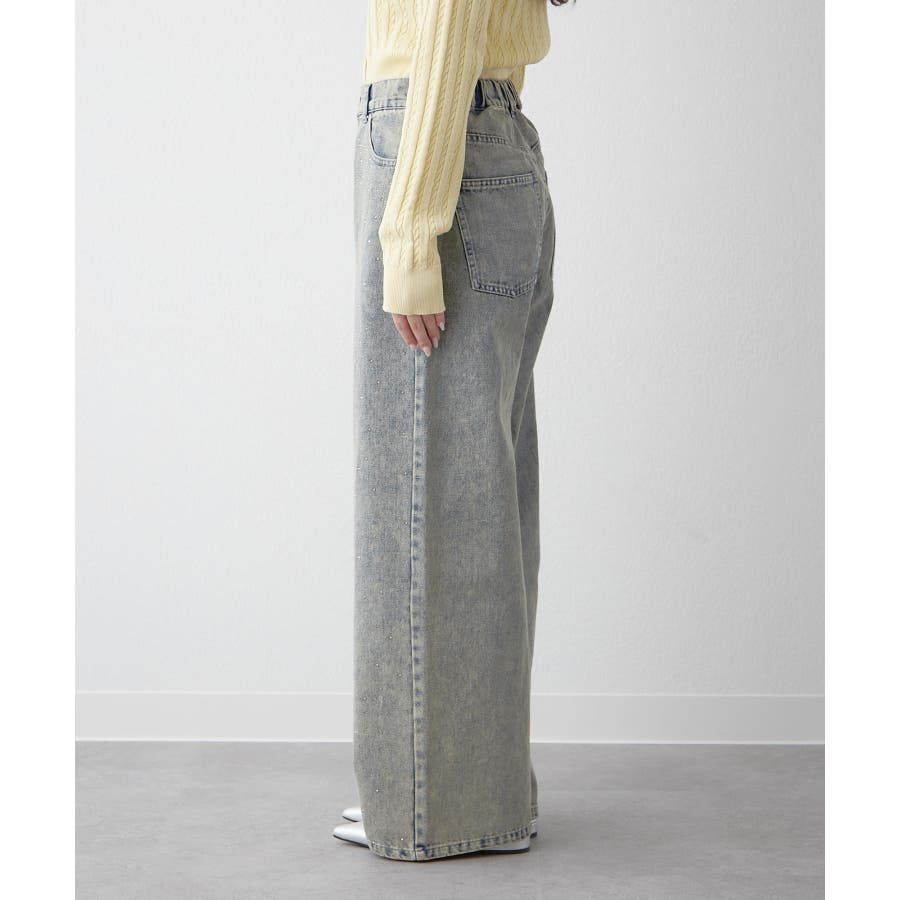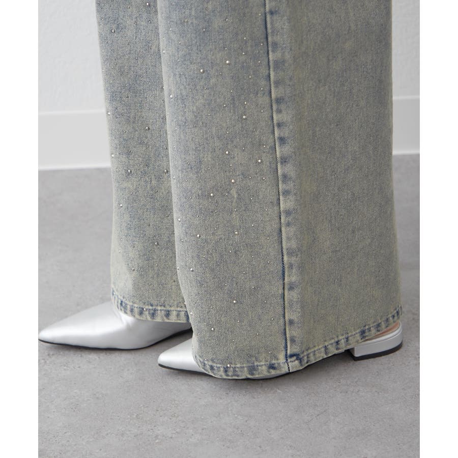 【サイズ展開あり】ストーン付デニムフレアパンツ