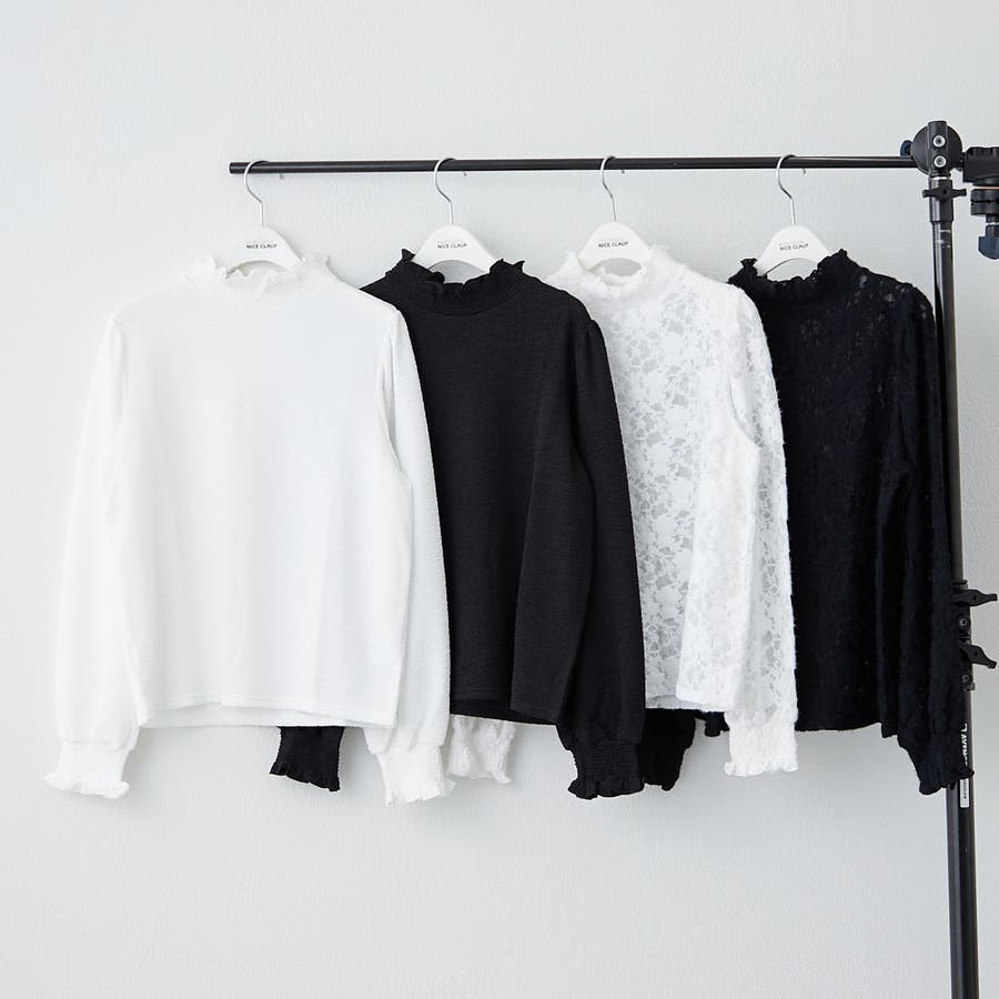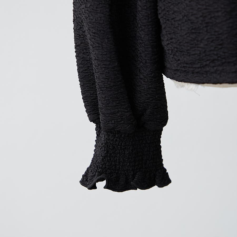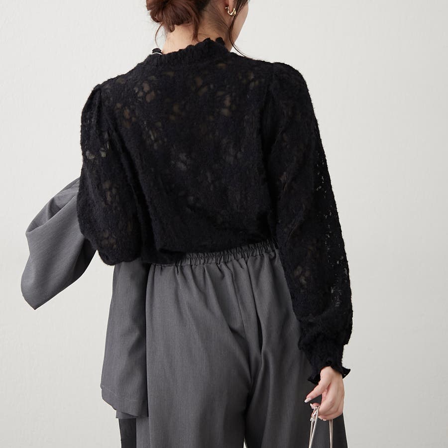 ・ふくれジャガードと起毛レースの異素材ミックスで、奥行きのある表情に。
