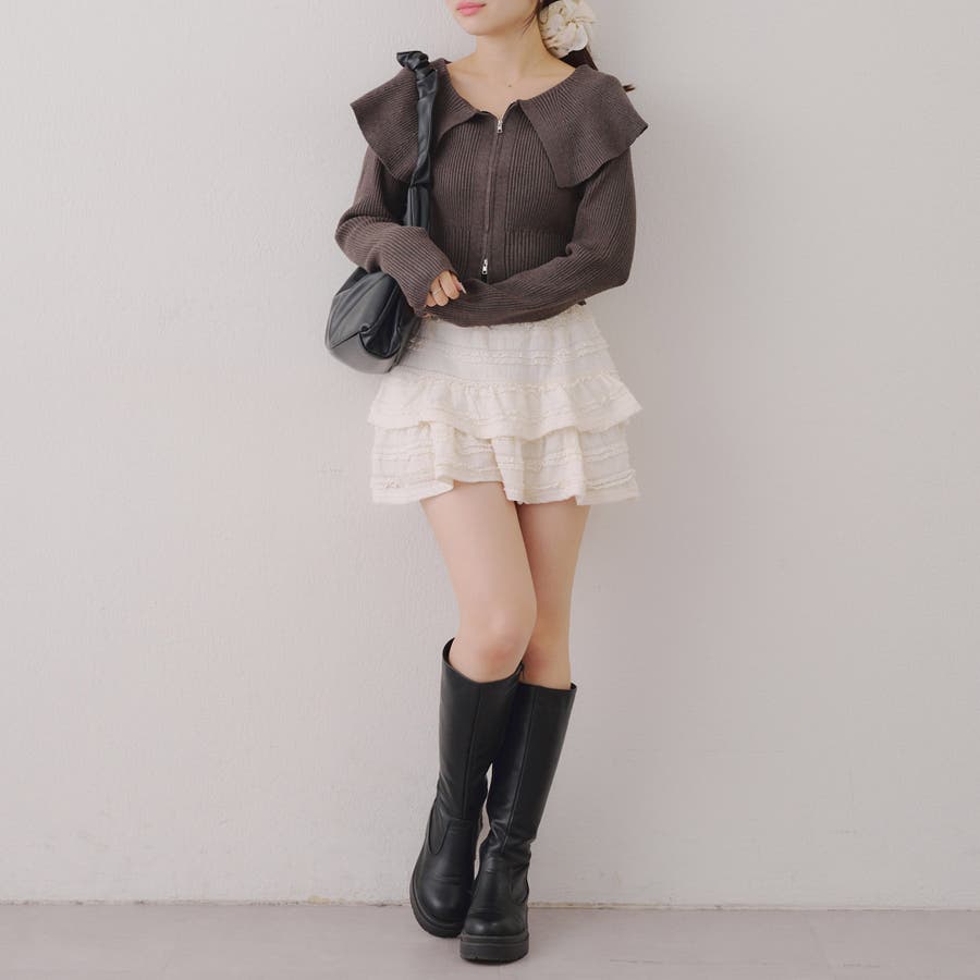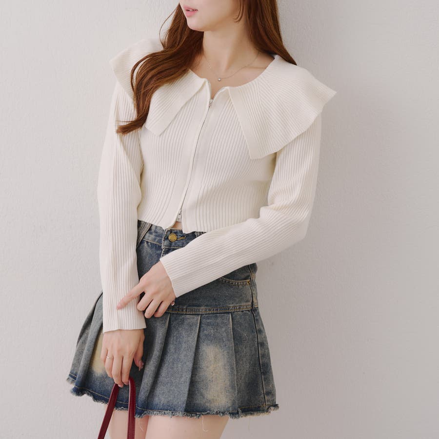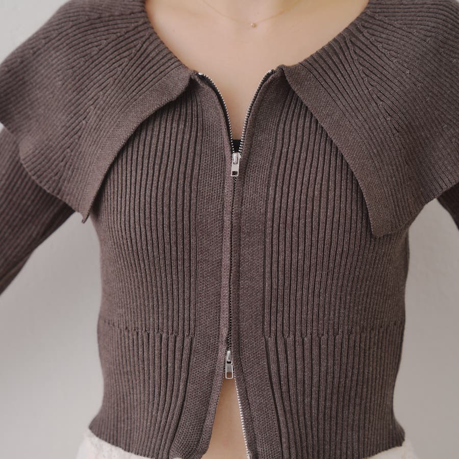 お顔周りスッキリ見え◎ ビッグ衿ジップカーディガン