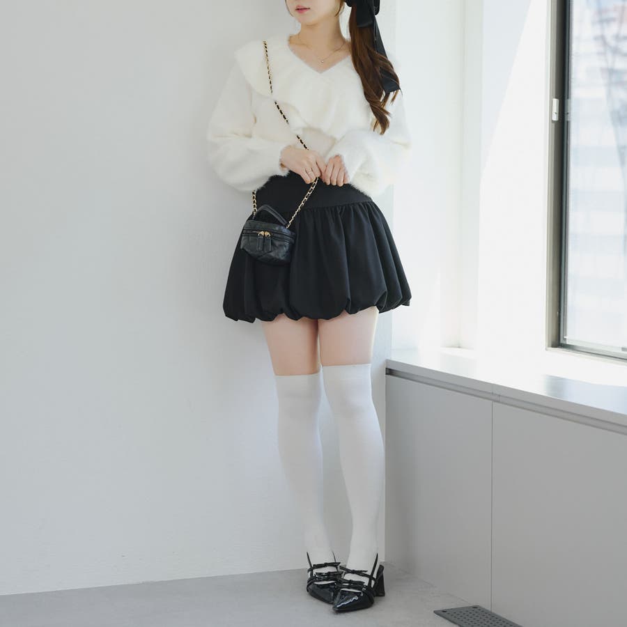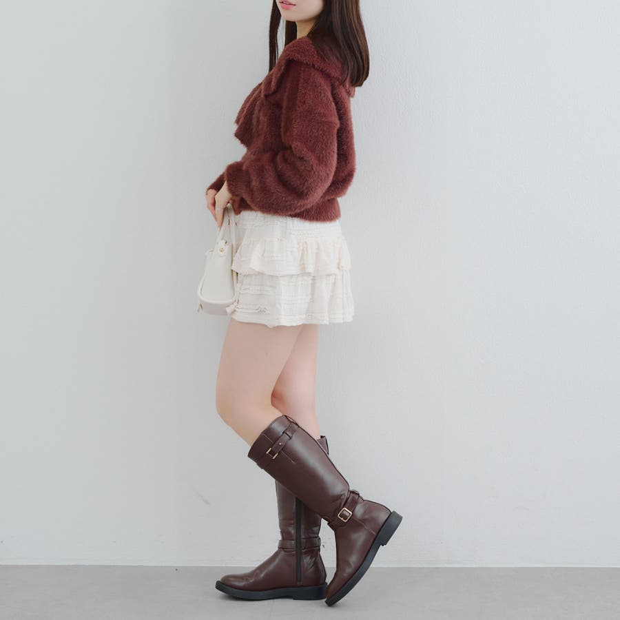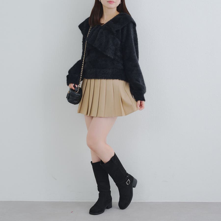 ・ニットの甘さを生かして、ミニスカートとブーツでとことん可愛く♪