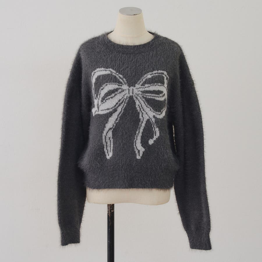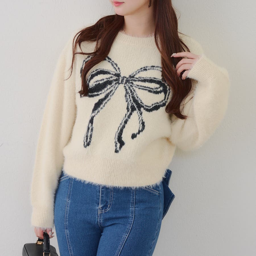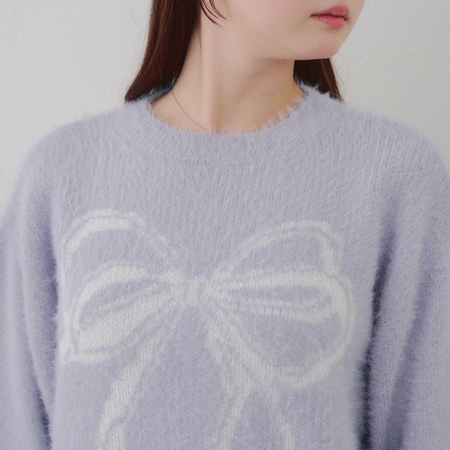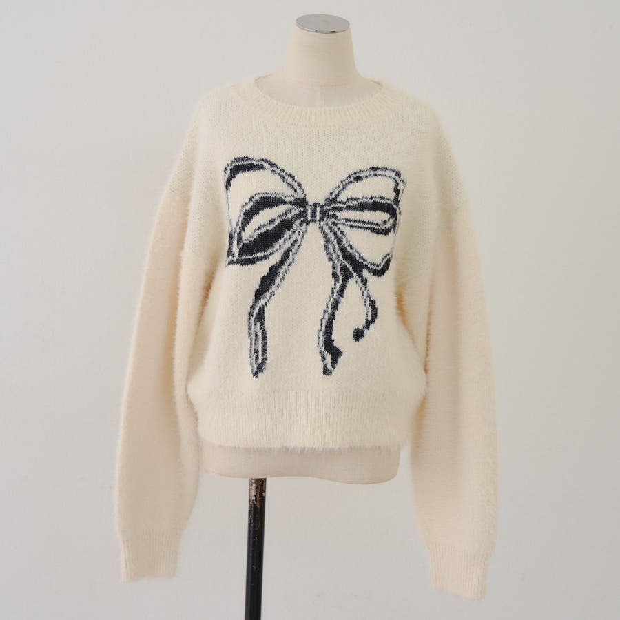 ・大きなリボン柄が存在感のあるデザインのシャギーニット