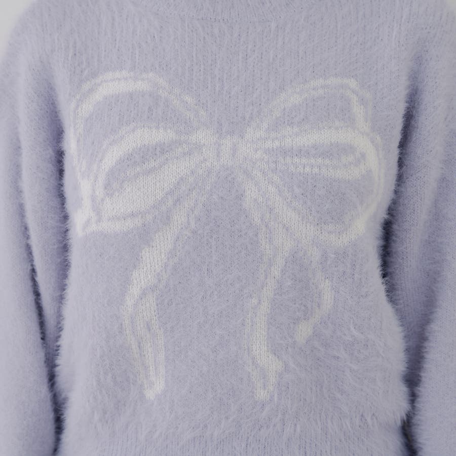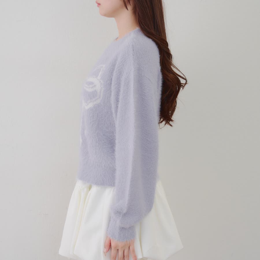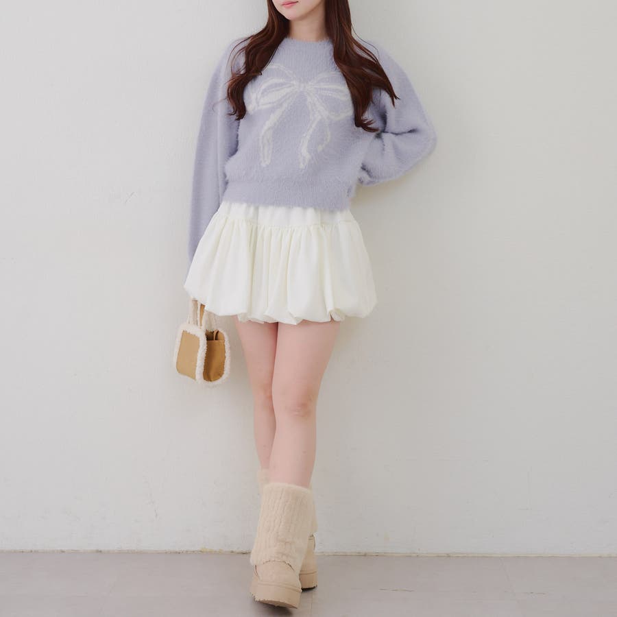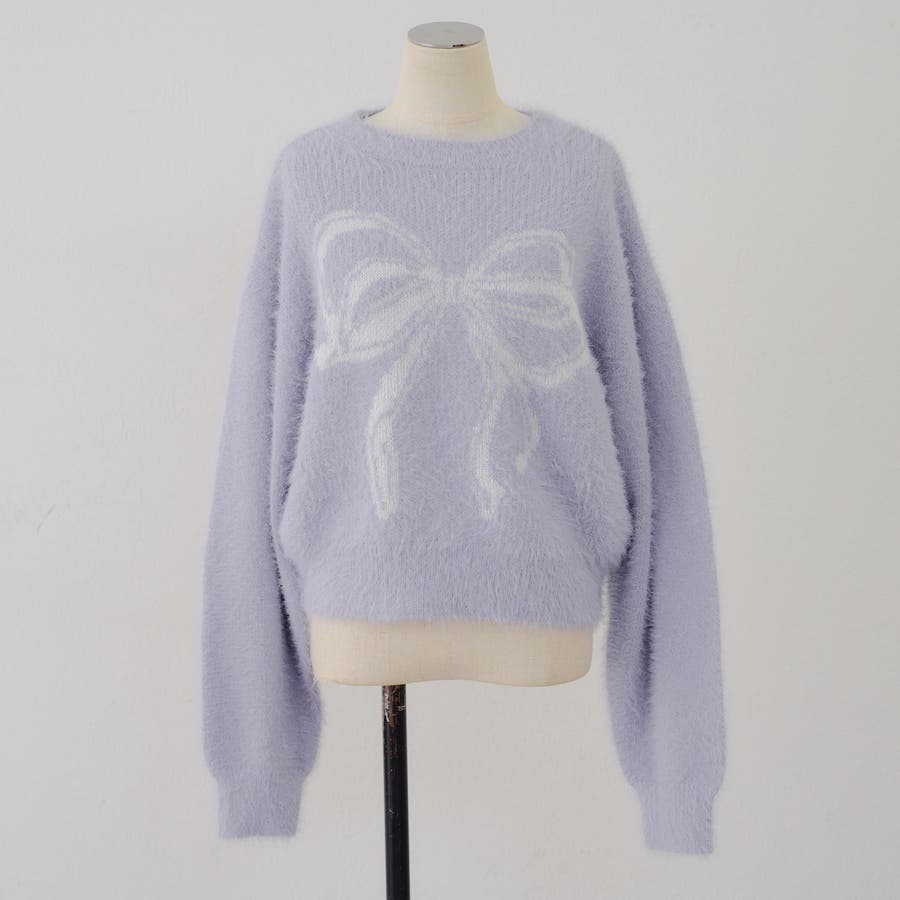 ・大きなリボン柄が存在感のあるデザインのシャギーニット