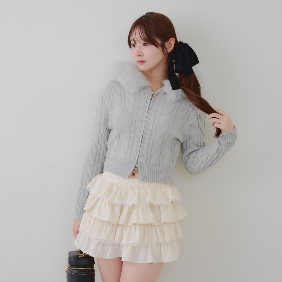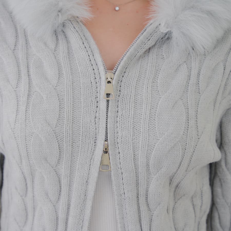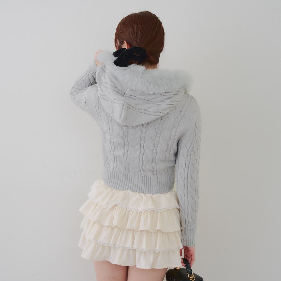 ・存在感のあるケーブル編みが今年らしいファー付きパーカー