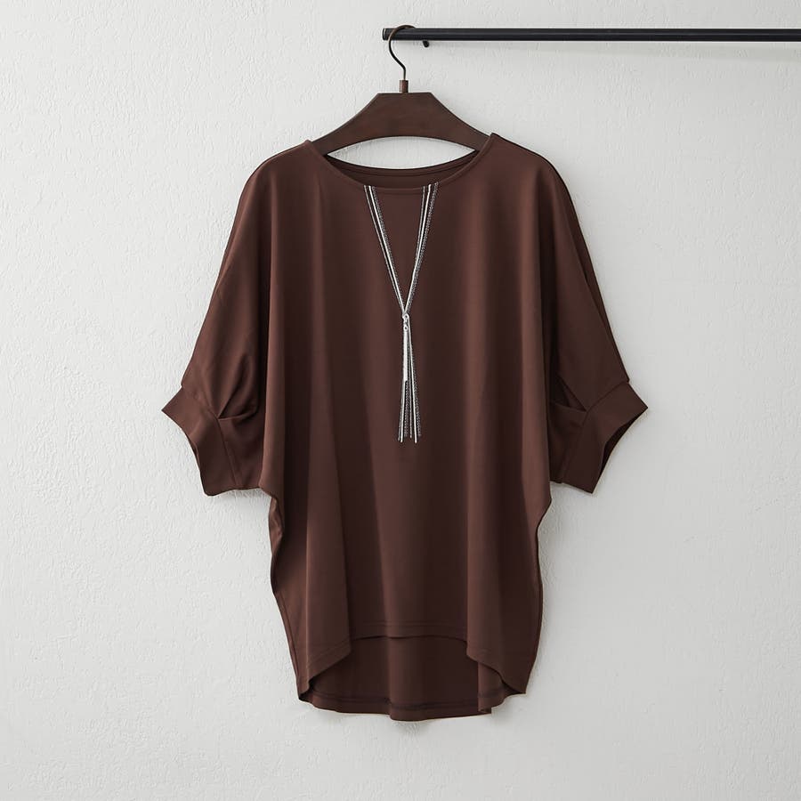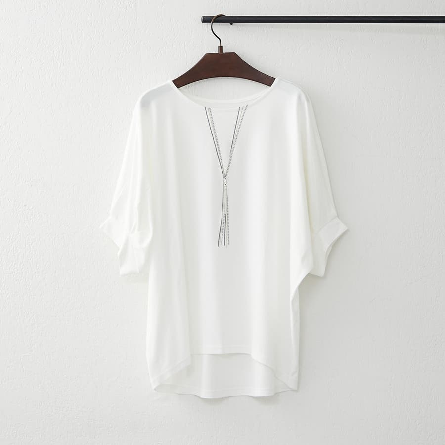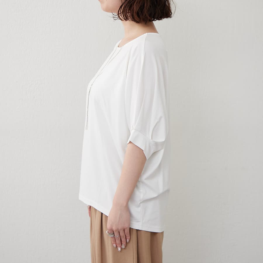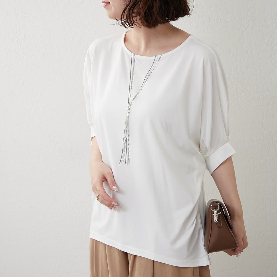 ・ネックラインはほどよく開いており、顔周りスッキリ見え