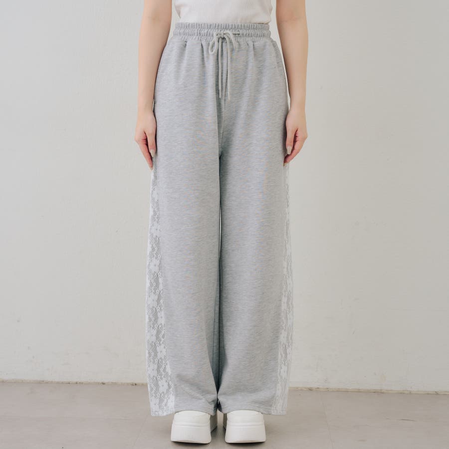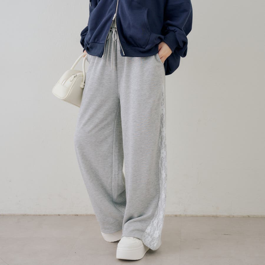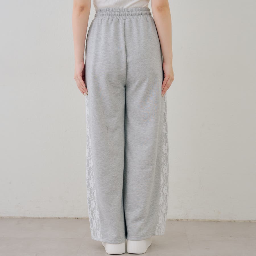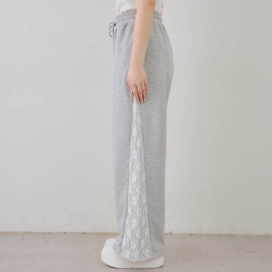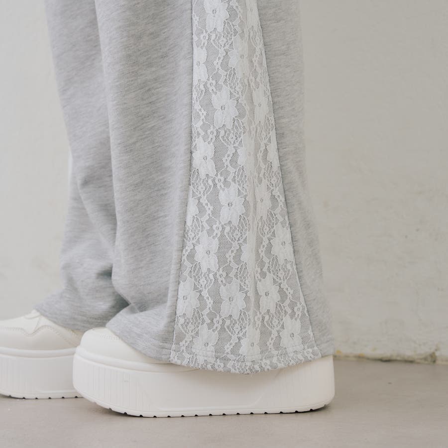 ・サイドにレースがあしらわれたガーリーなスウェットパンツ