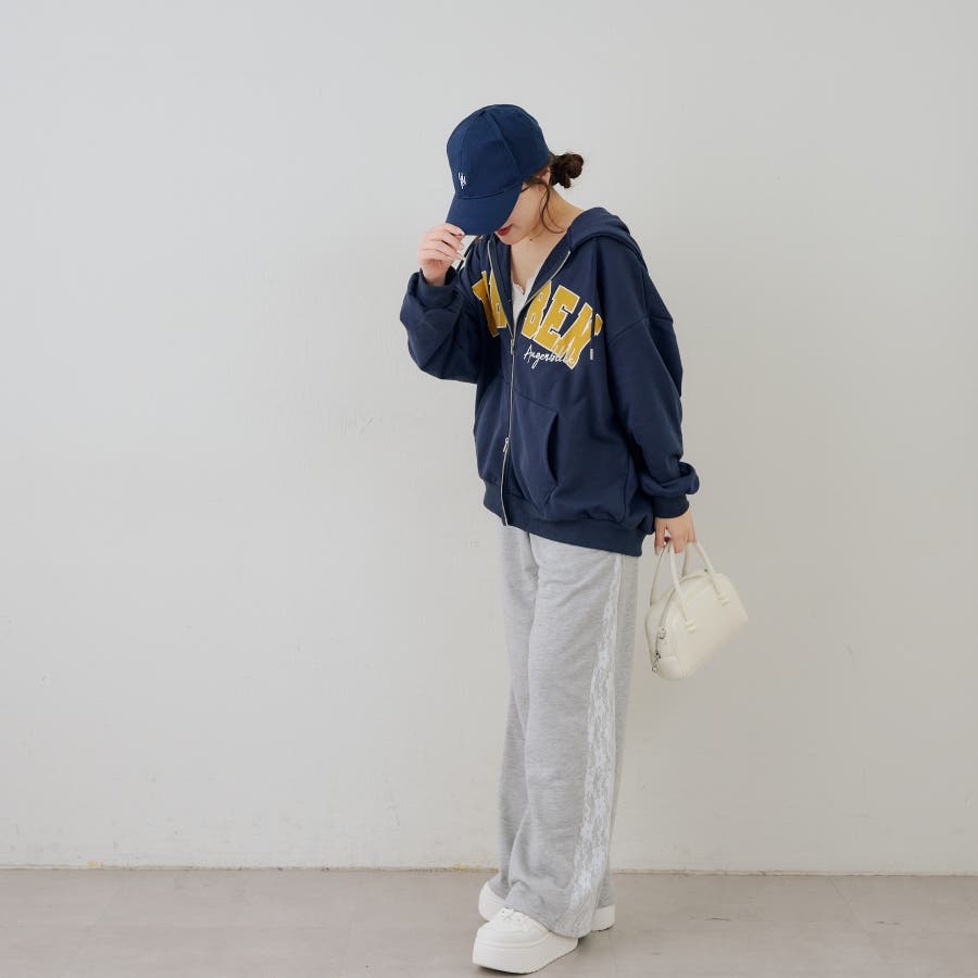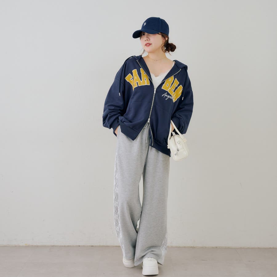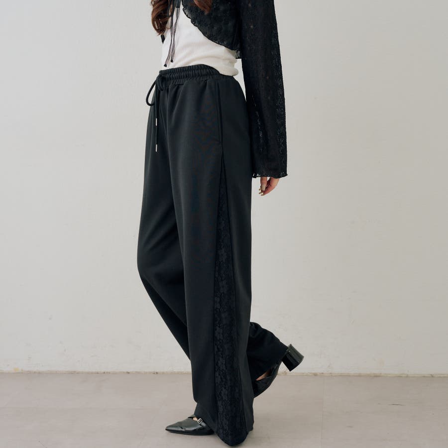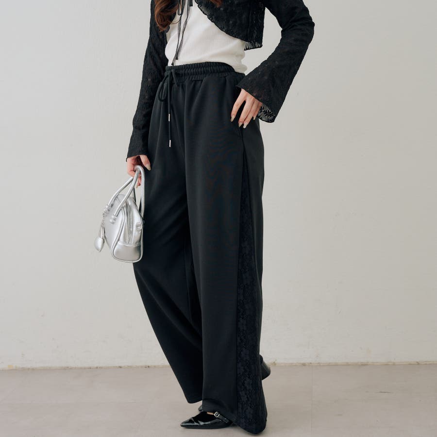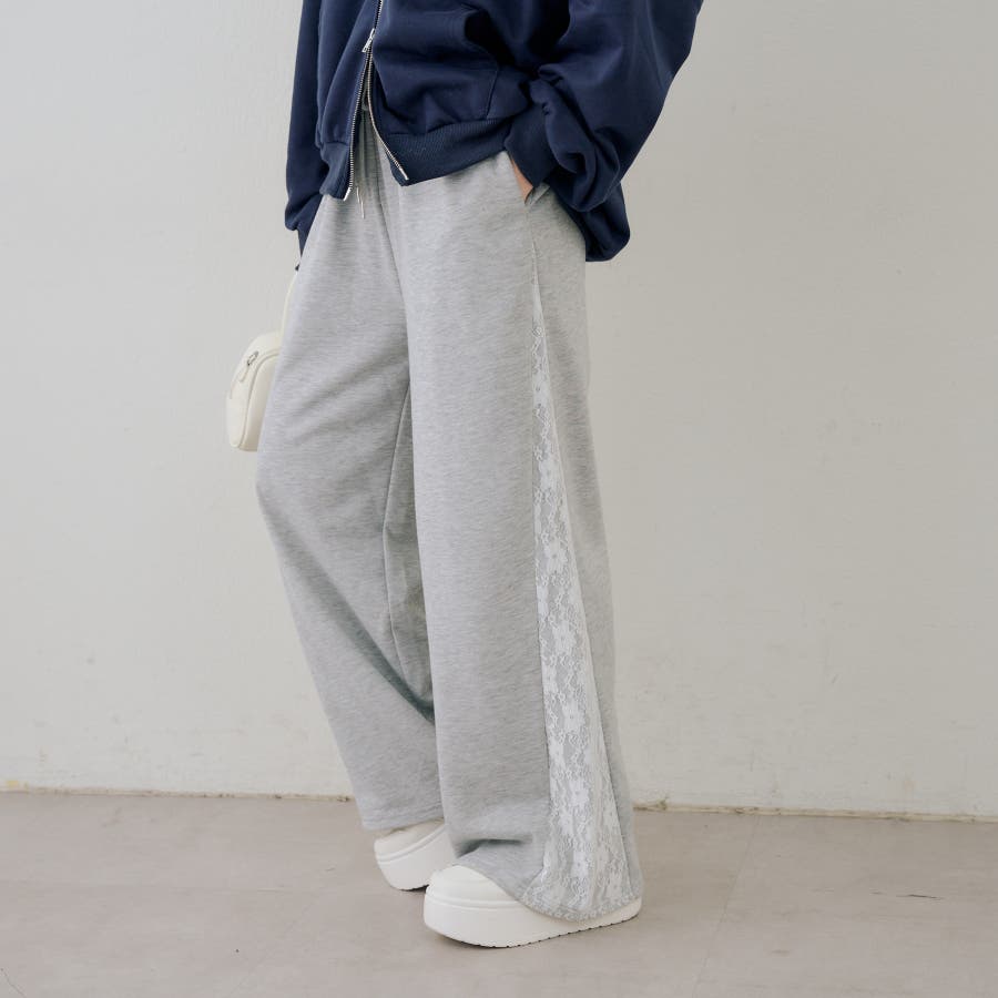 ・サイドにレースがあしらわれたガーリーなスウェットパンツ