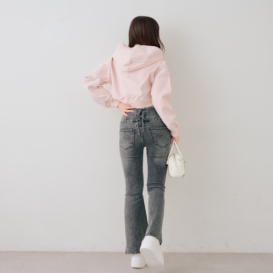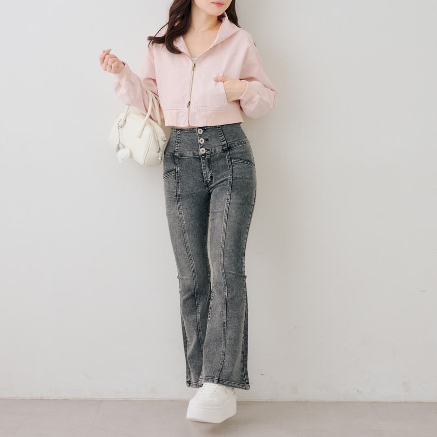 ・フレアパンツで自然と腰位置を高く見せるスタイリングも◎