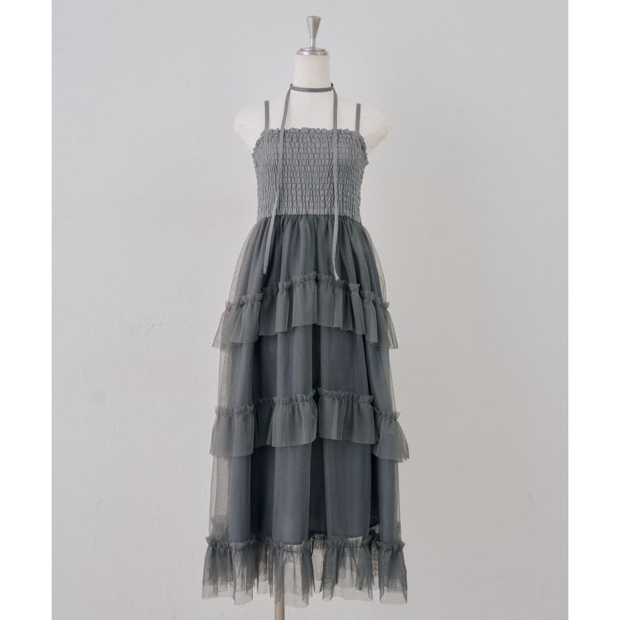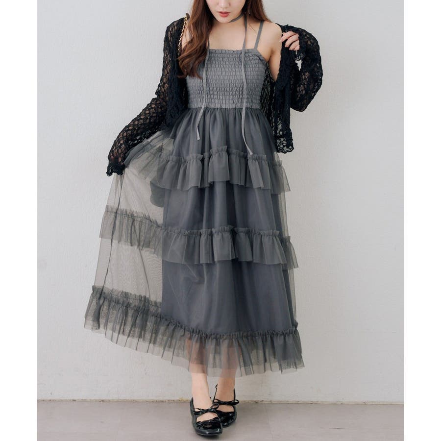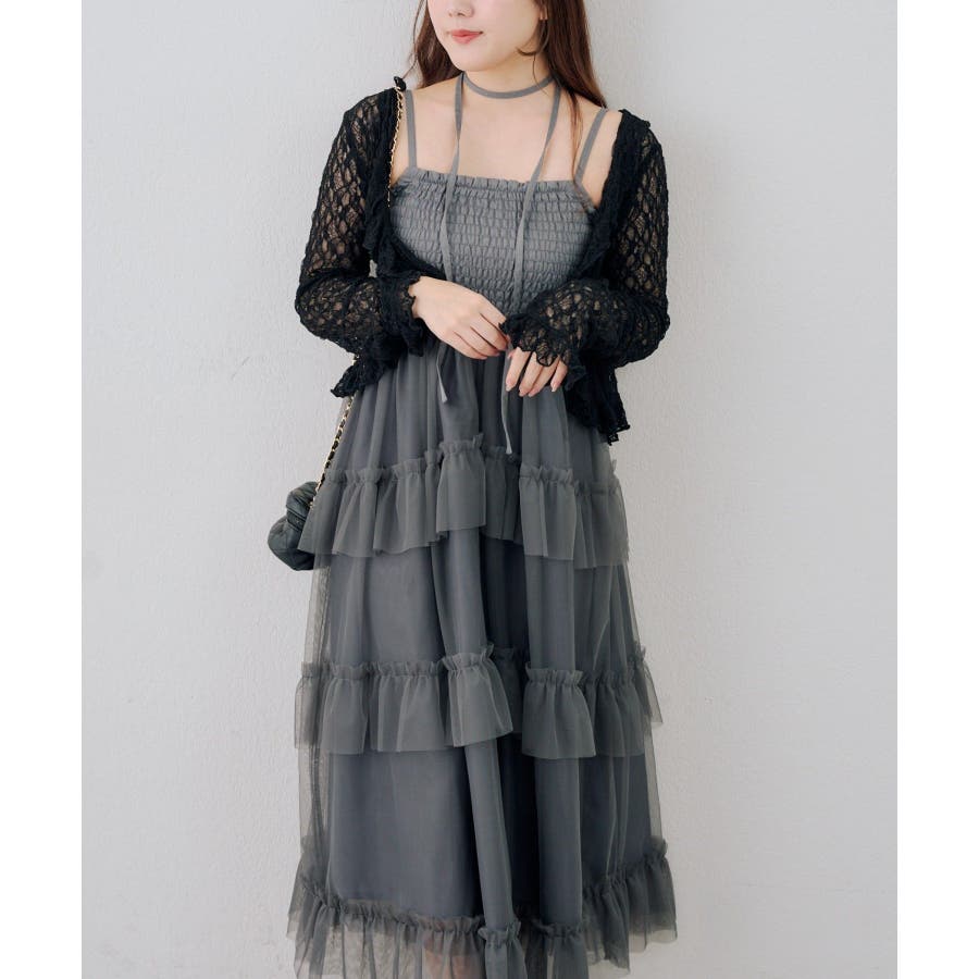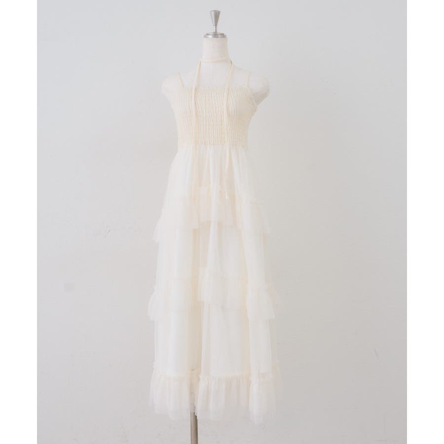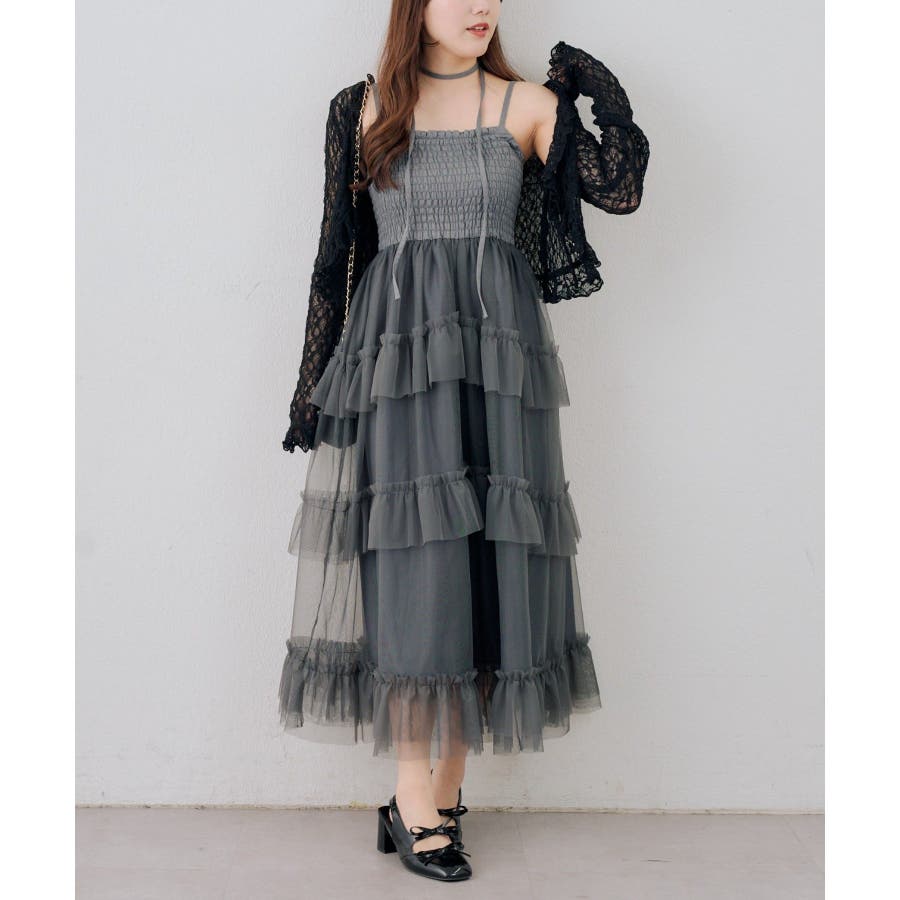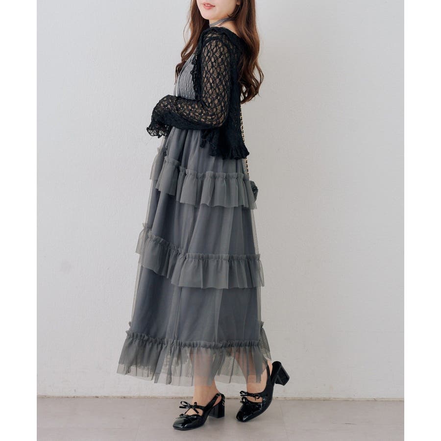 ・ふんわりと軽やかなチュールを重ねた、ロマンティックなティアードワンピース