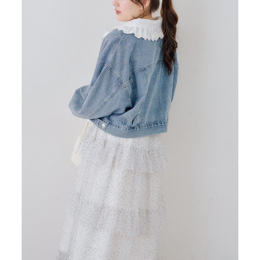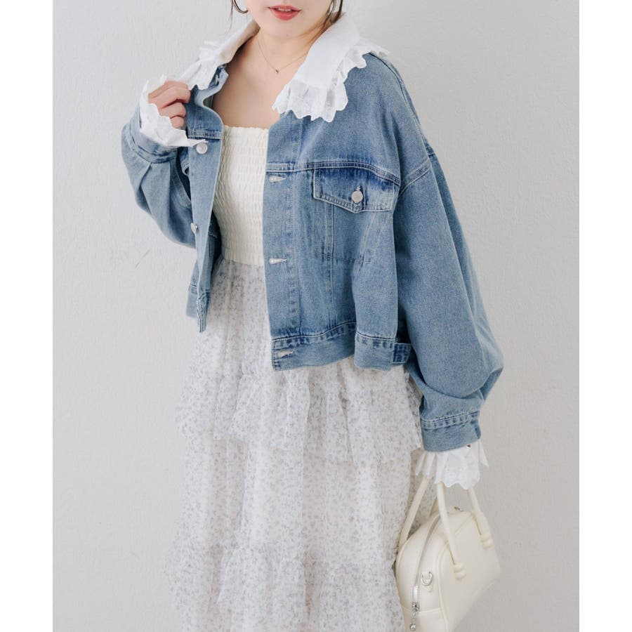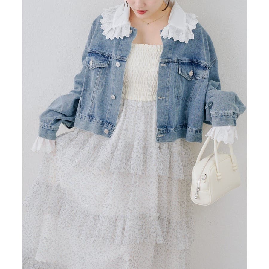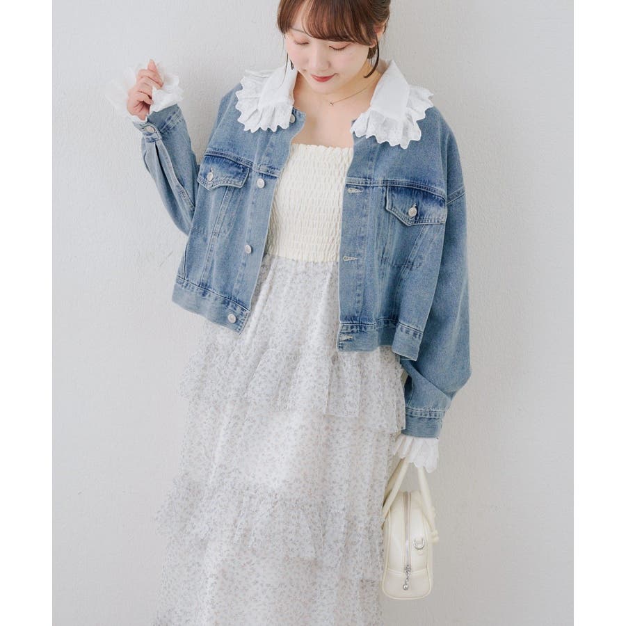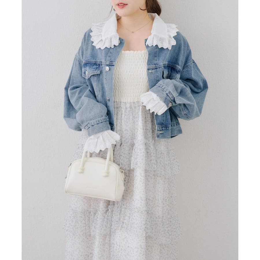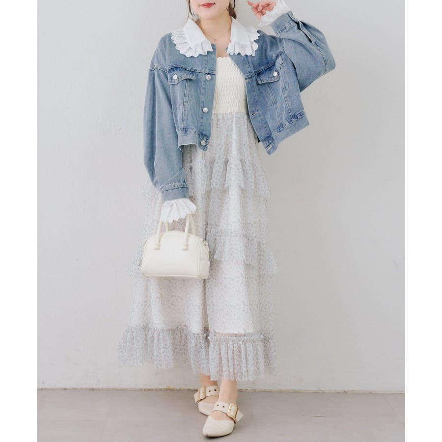 ・ワンピースにスニーカーを合わせ、カジュアルなデニムジャケットを羽織れば、普段使いにもぴったりのガーリースタイルに