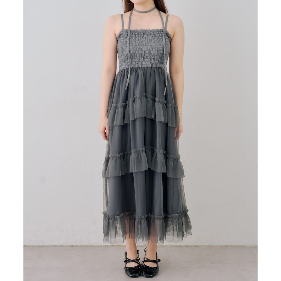 シャーリングティアードキャミワンピース