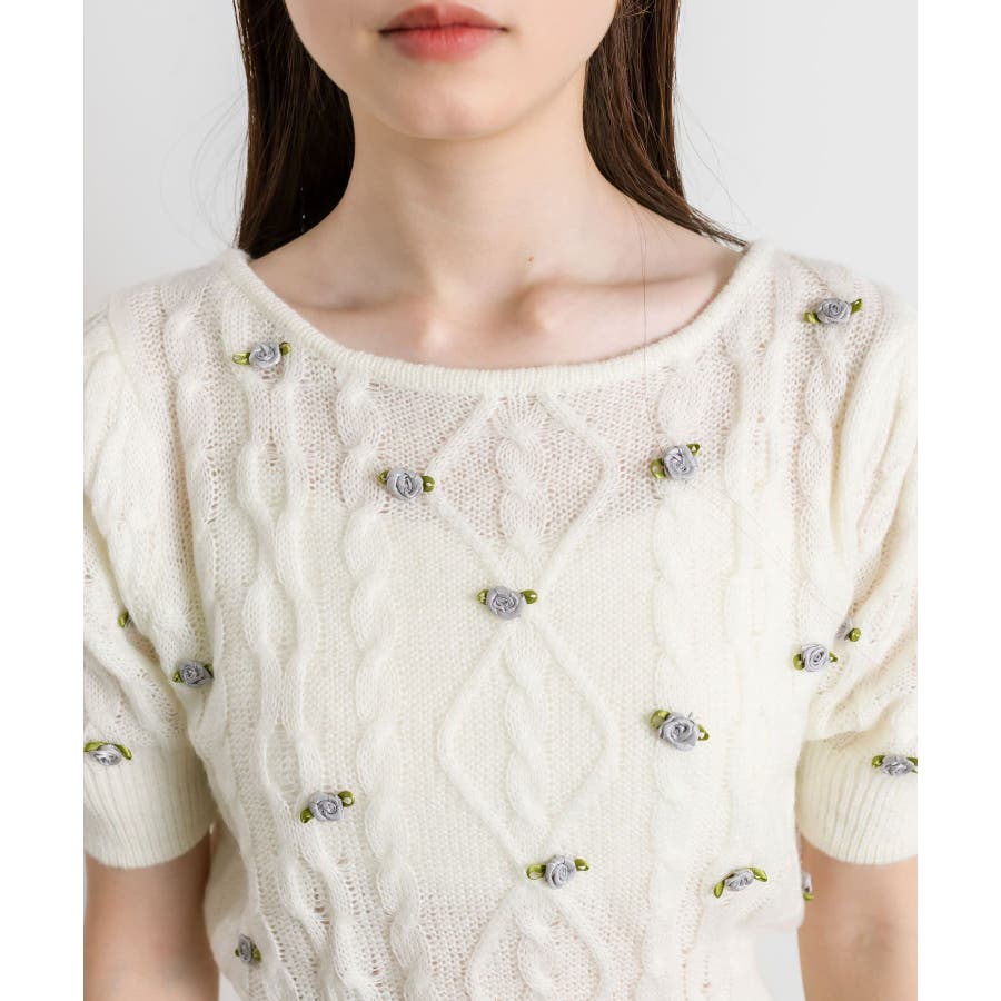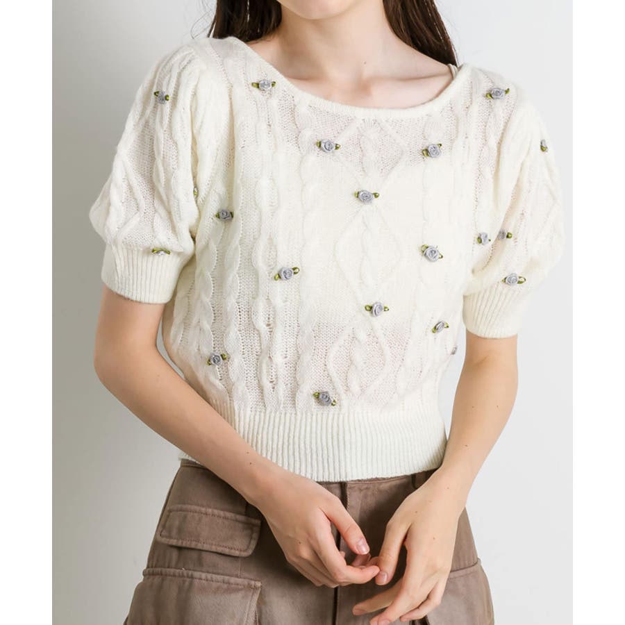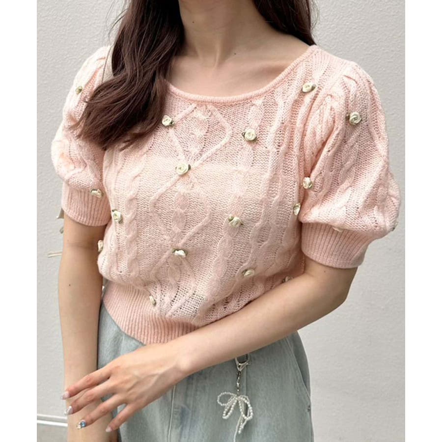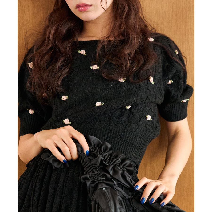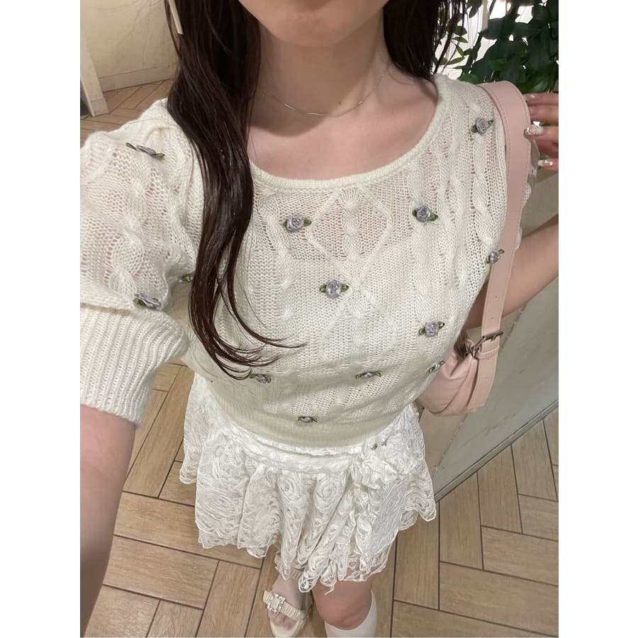・小さいローズがちりばめられたバレエコアデザインのニット。