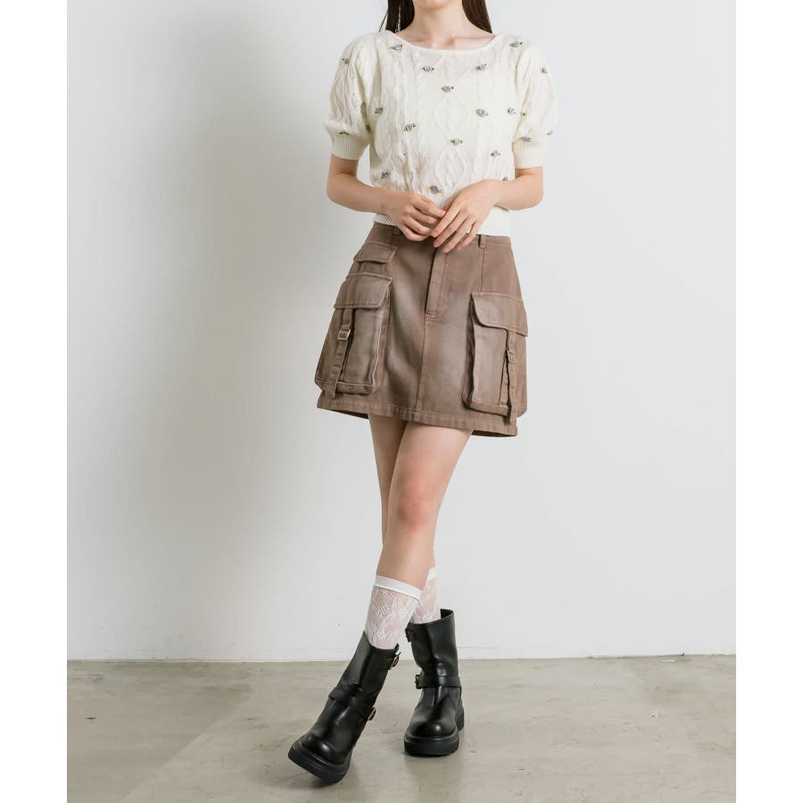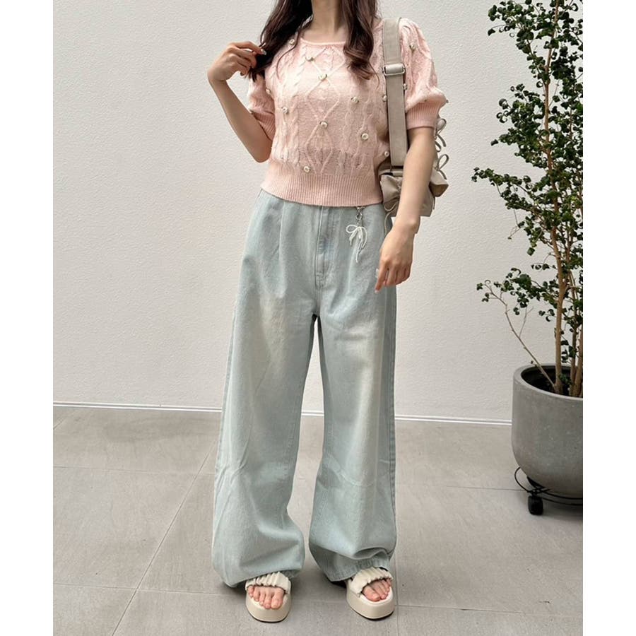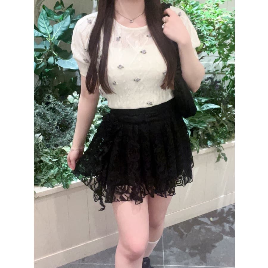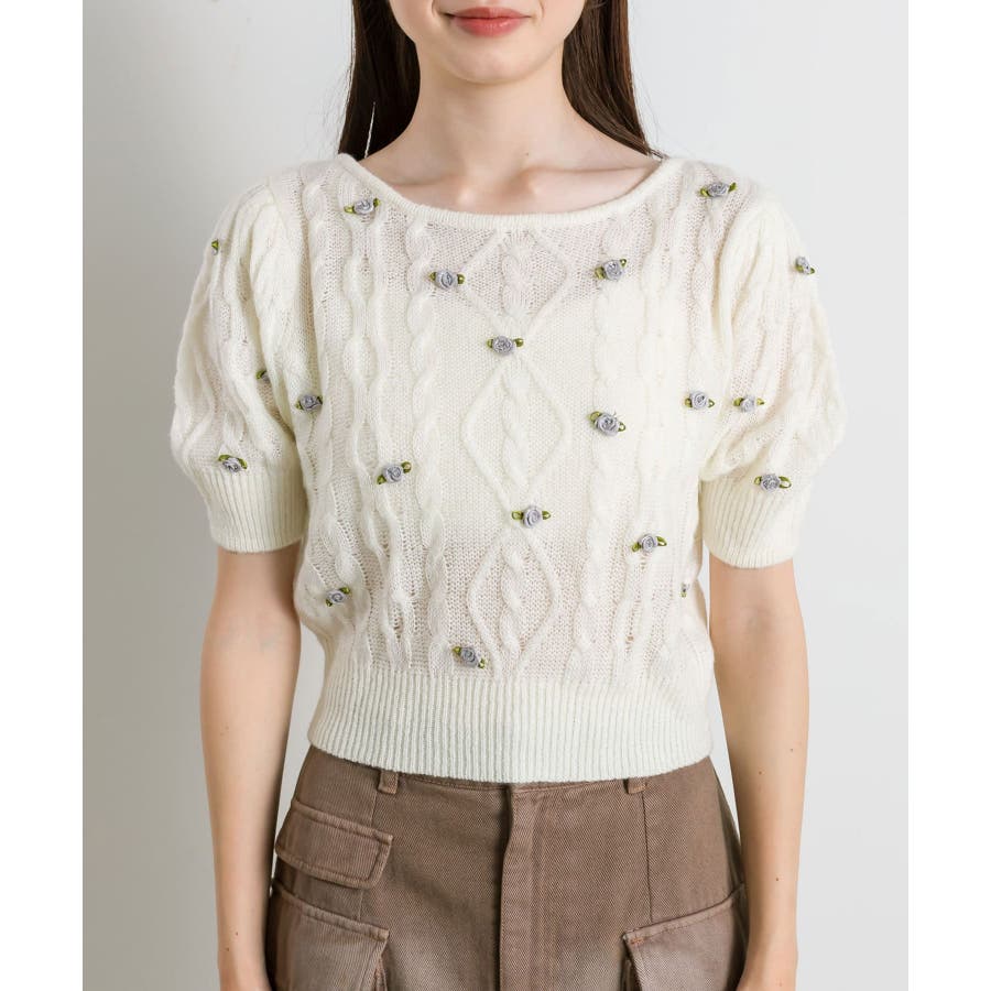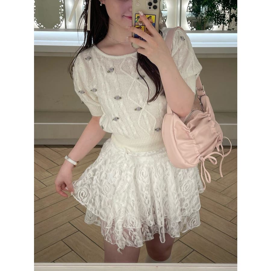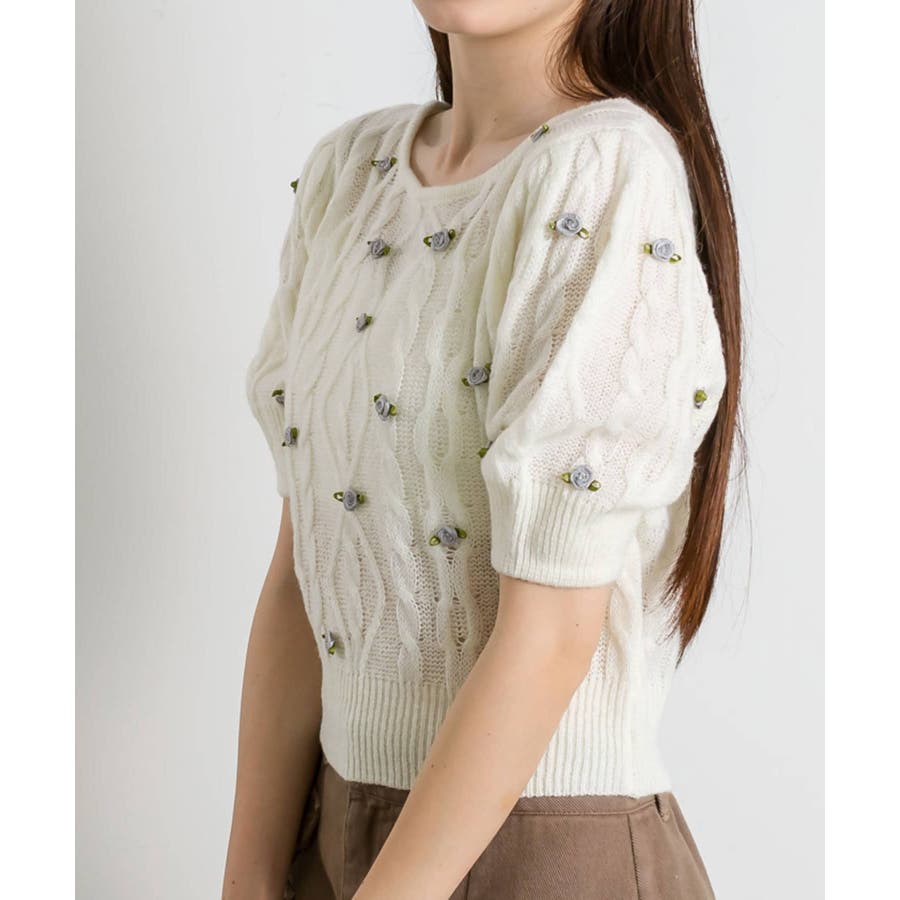 ・小さいローズがちりばめられたバレエコアデザインのニット。