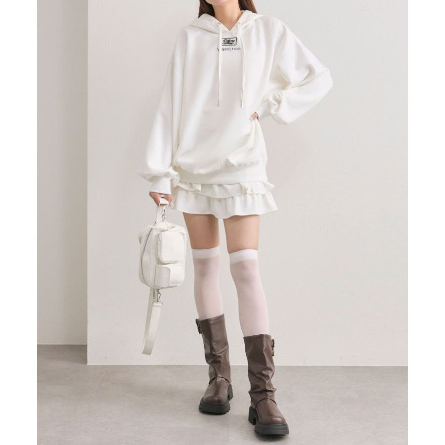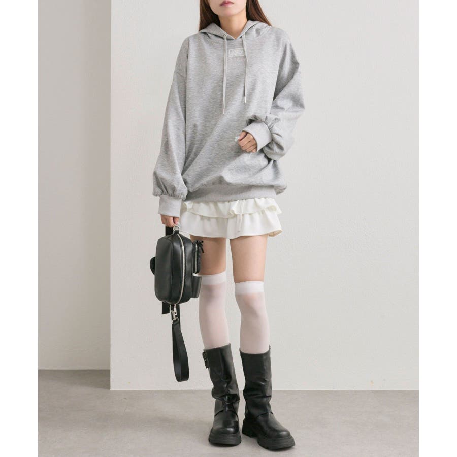 ・ミニボトムを合わせてすっぽりミニワンピ風に着るのがおすすめ。