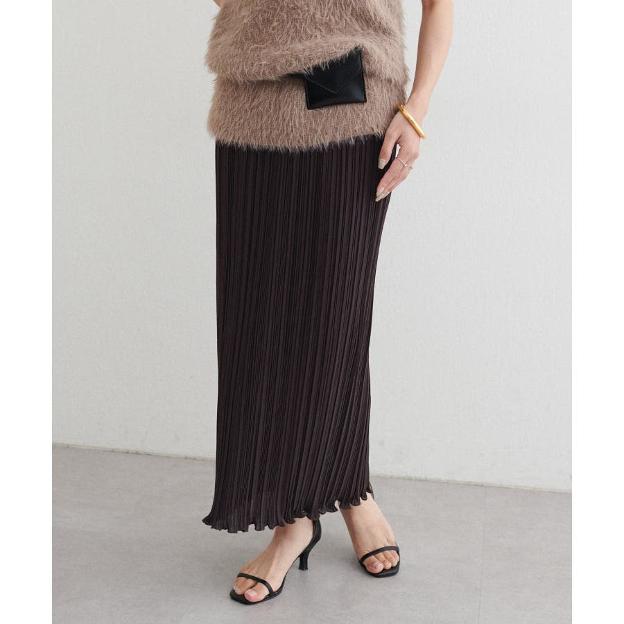すっきりとしたIラインシルエットにプリーツを施したタイトスカート。