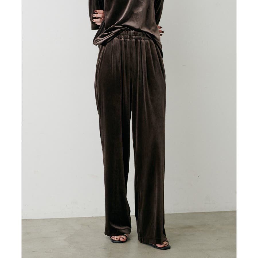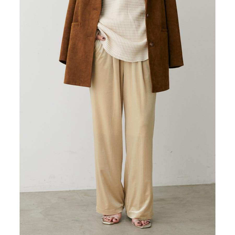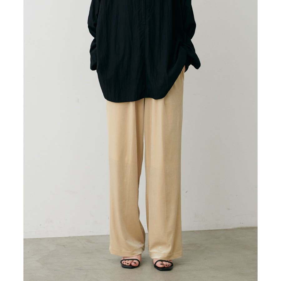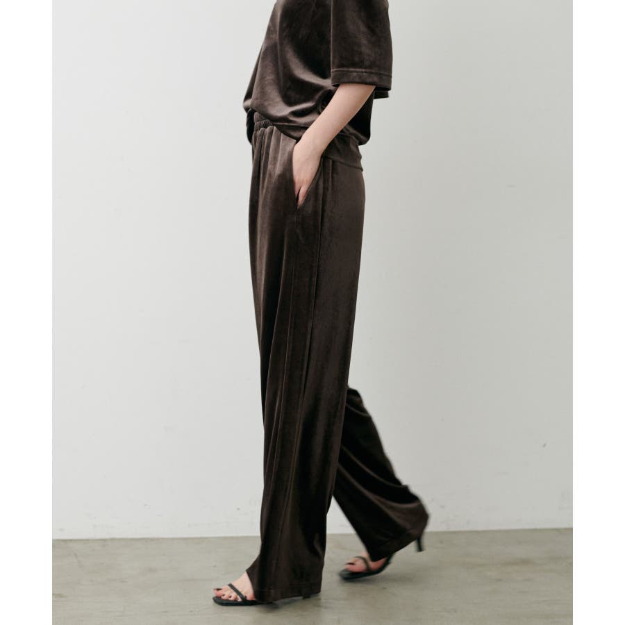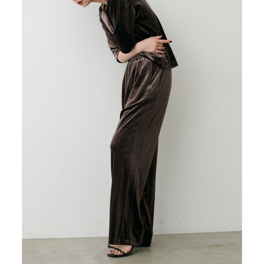 上品な光沢感のあるベロア素材を使用した、トレンド感あふれるサイドラインパンツ。
