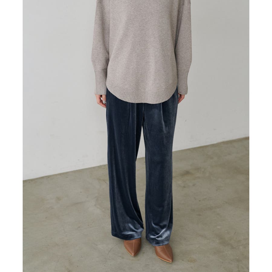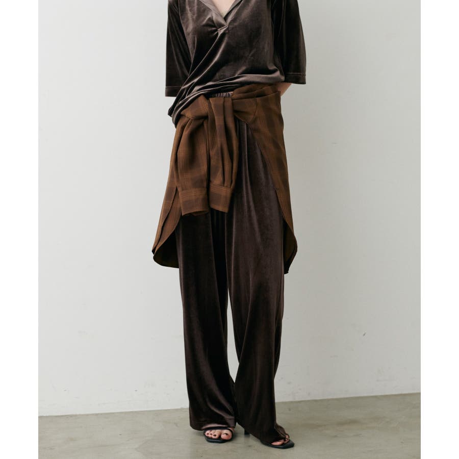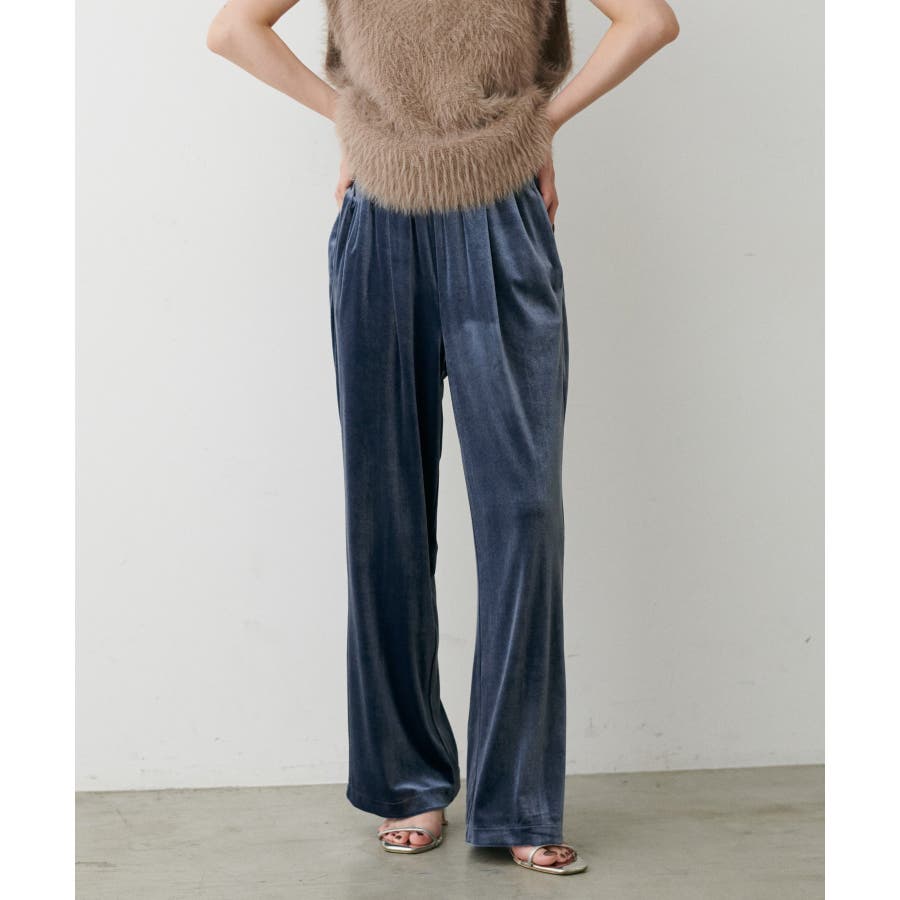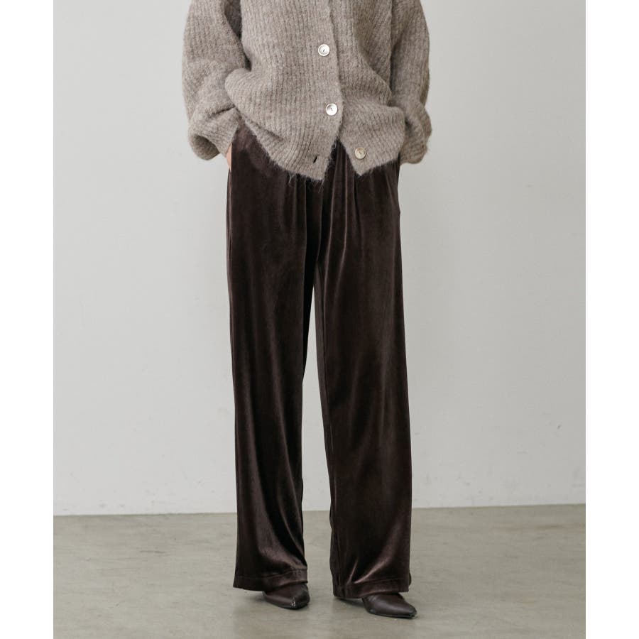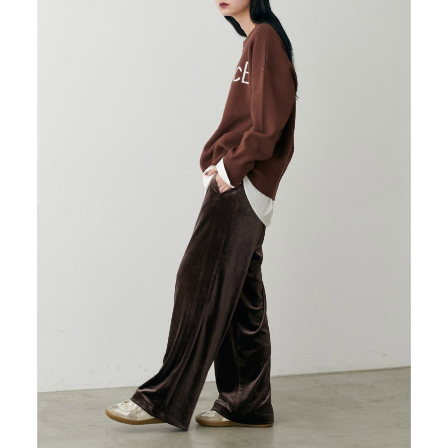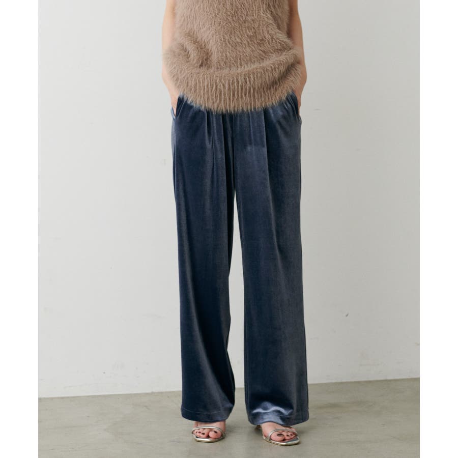 上品な光沢感のあるベロア素材を使用した、トレンド感あふれるサイドラインパンツ。