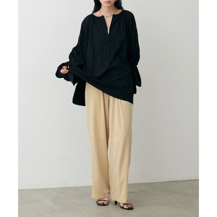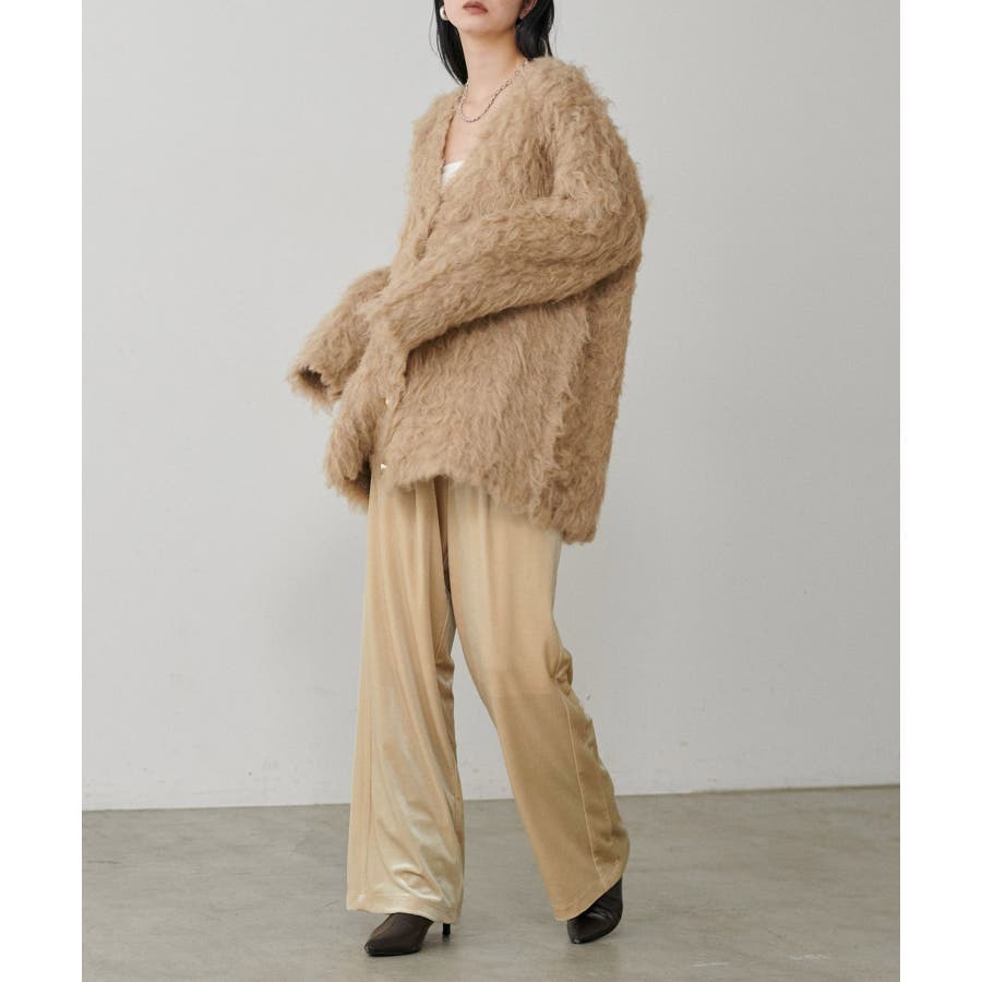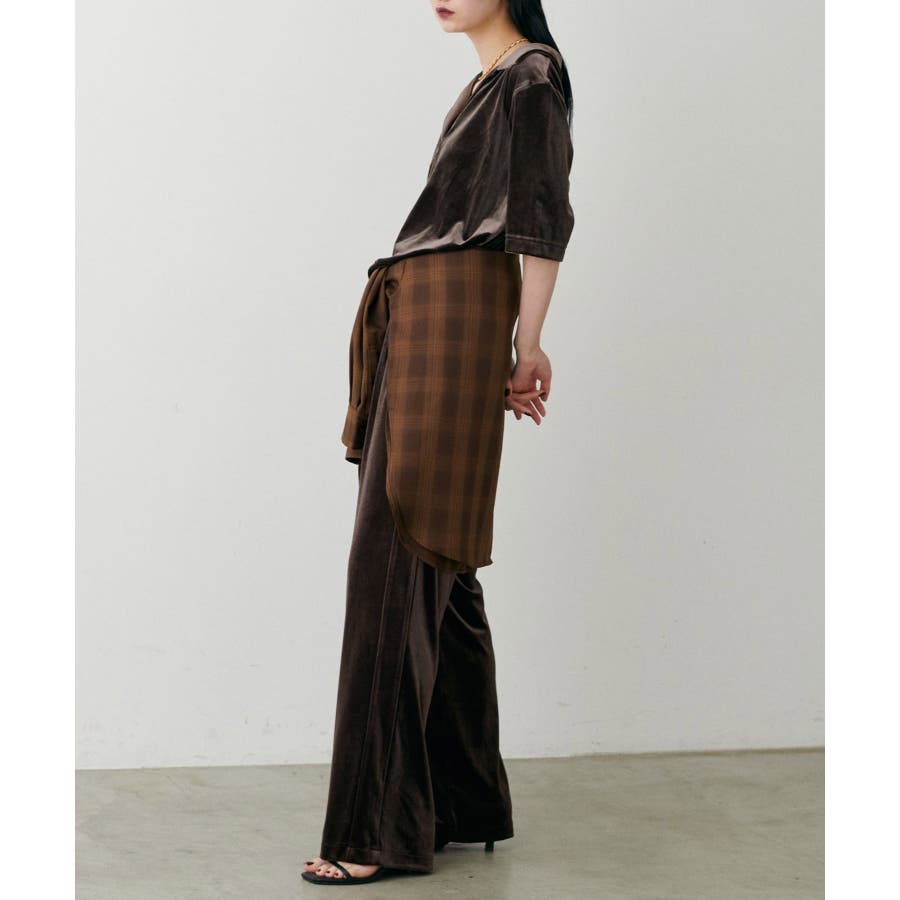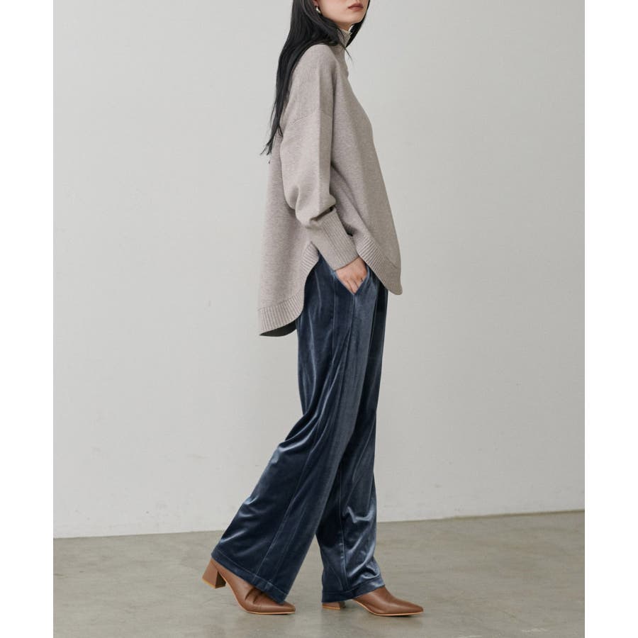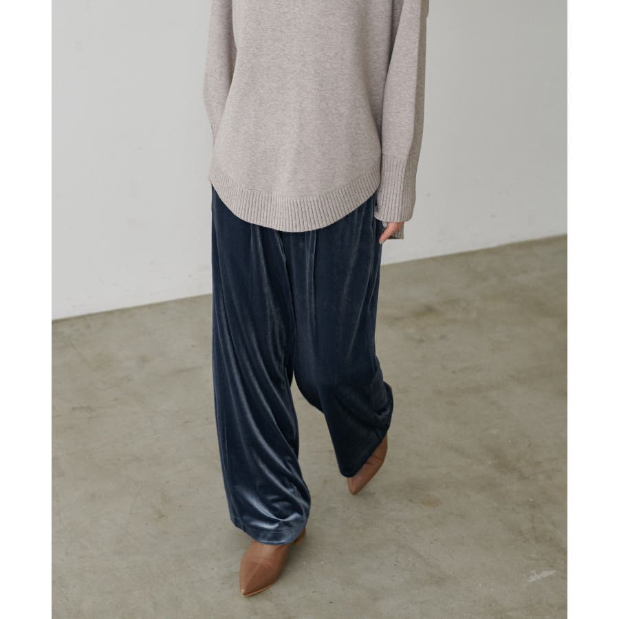 上品な光沢感のあるベロア素材を使用した、トレンド感あふれるサイドラインパンツ。