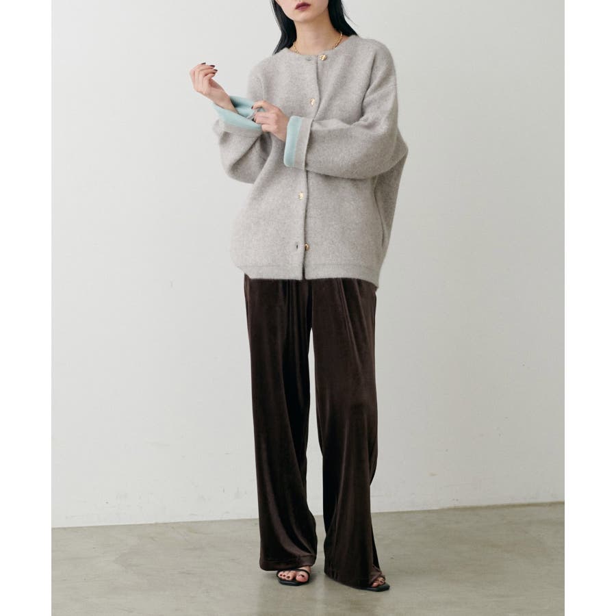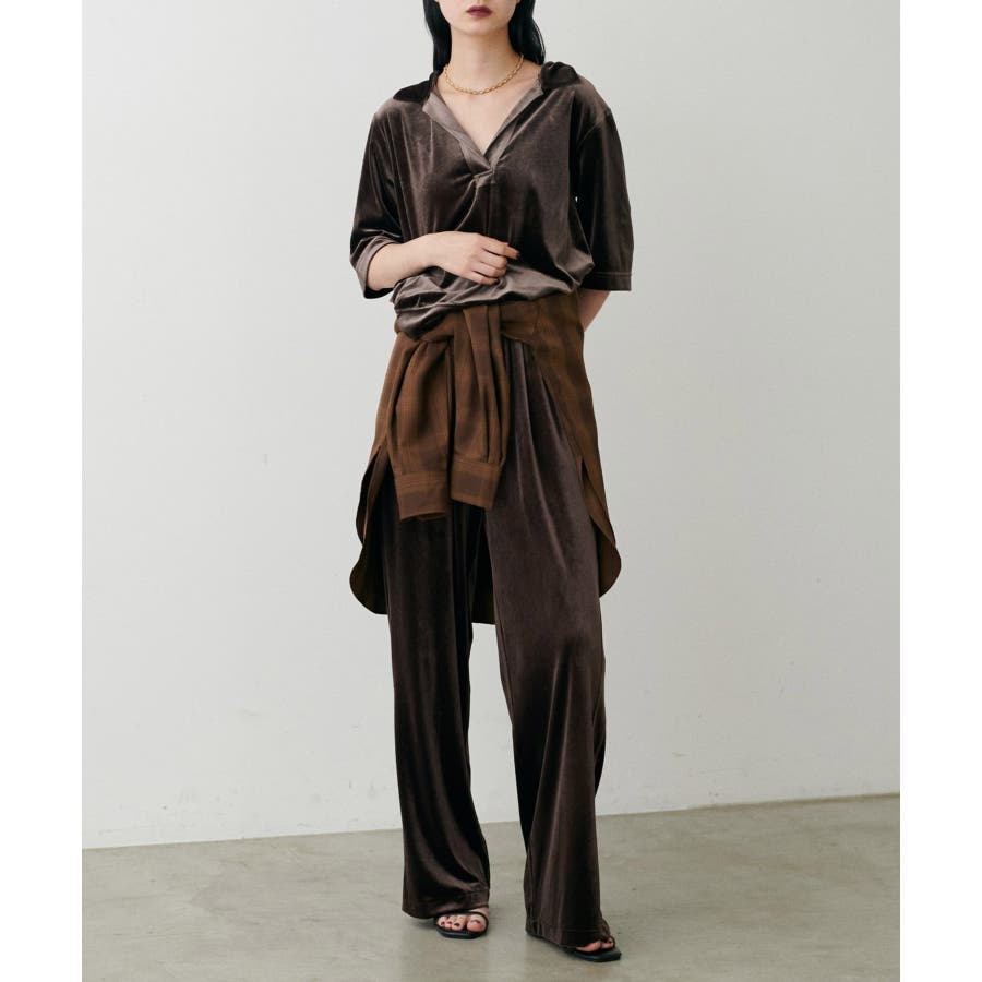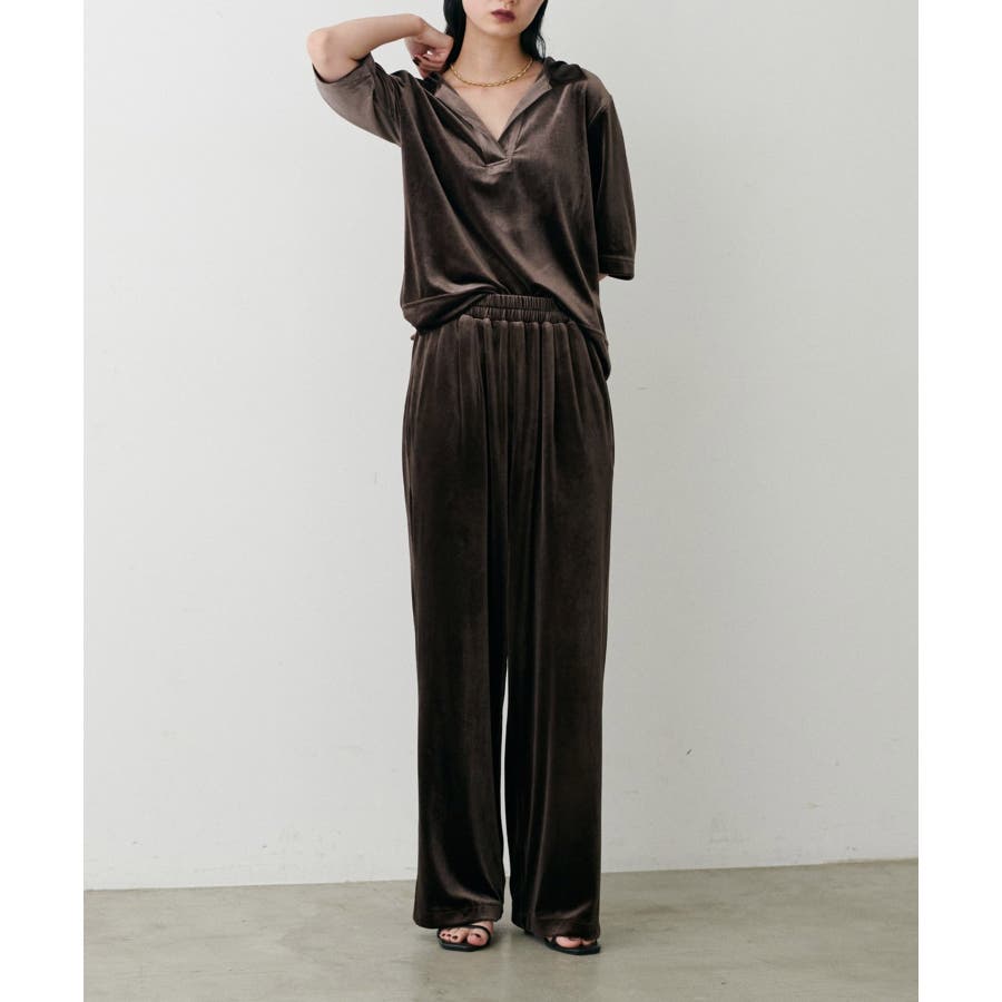 同素材のベロアトップスとセットアップ風に着こなして華やかに、