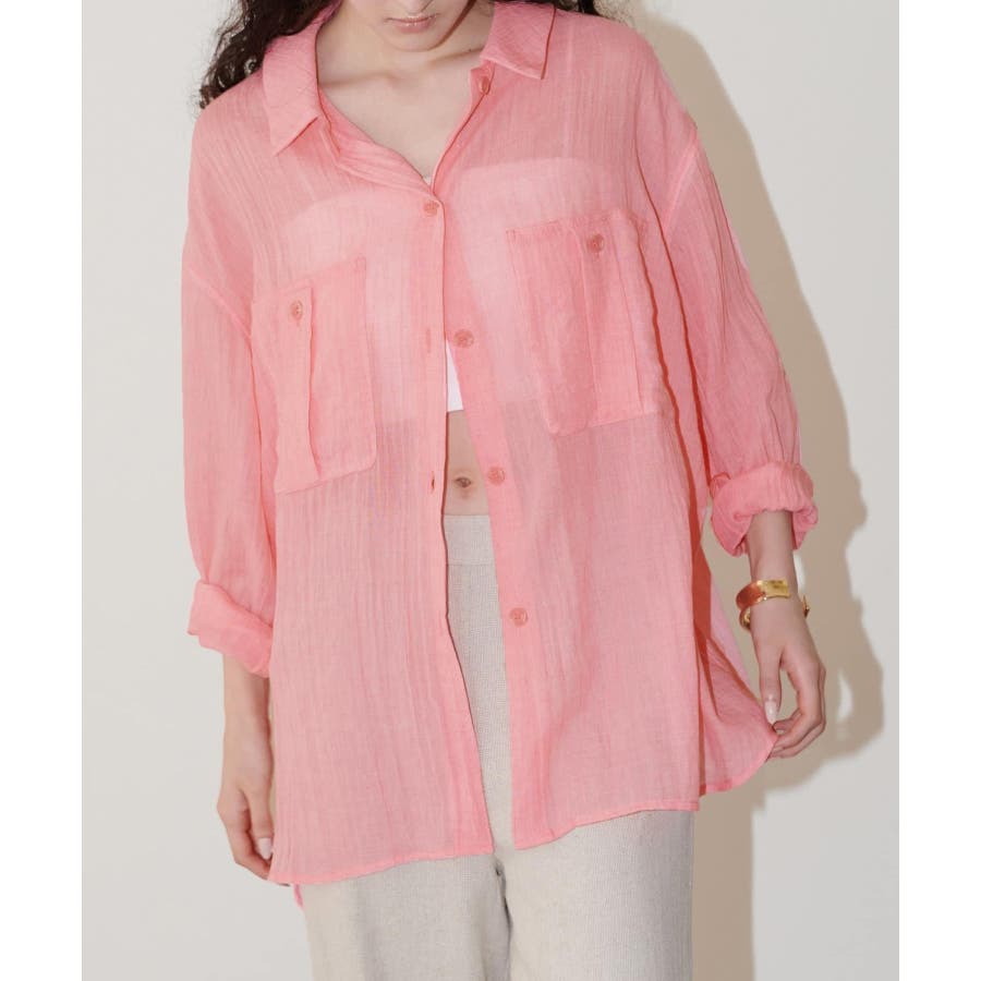 トレンドライクなシアー素材のオーバーサイズシャツ。