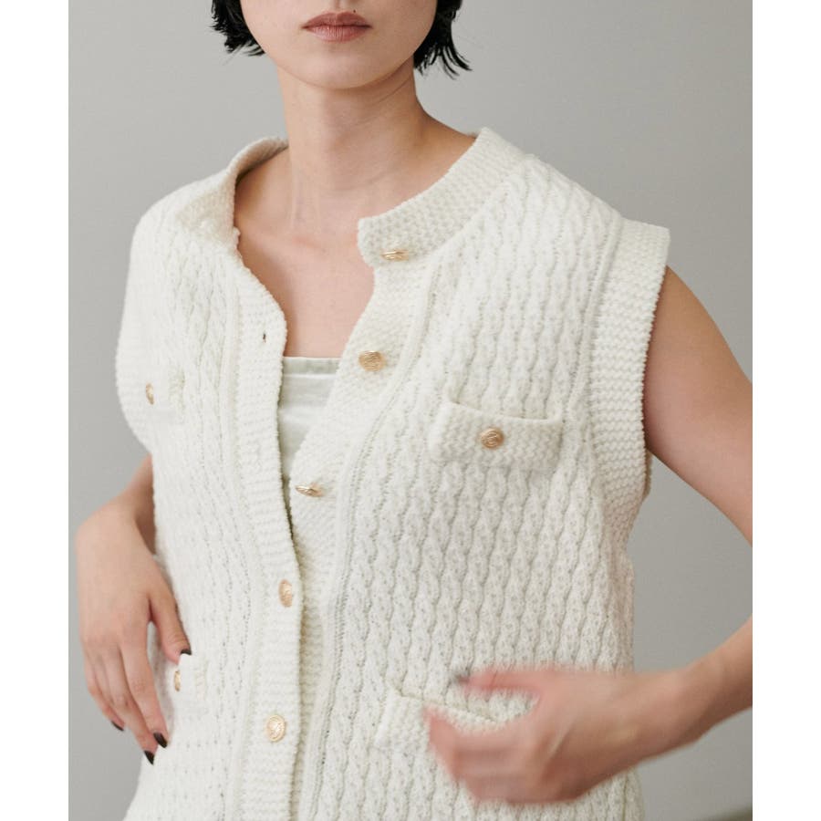 ふんわりとしたモール糸で編み立てた、やわらかな風合いが魅力のクルーネックニットベスト。