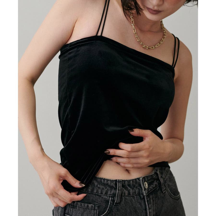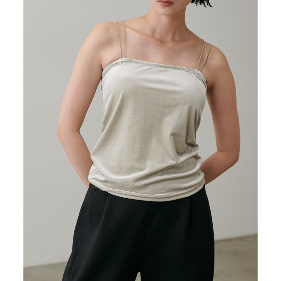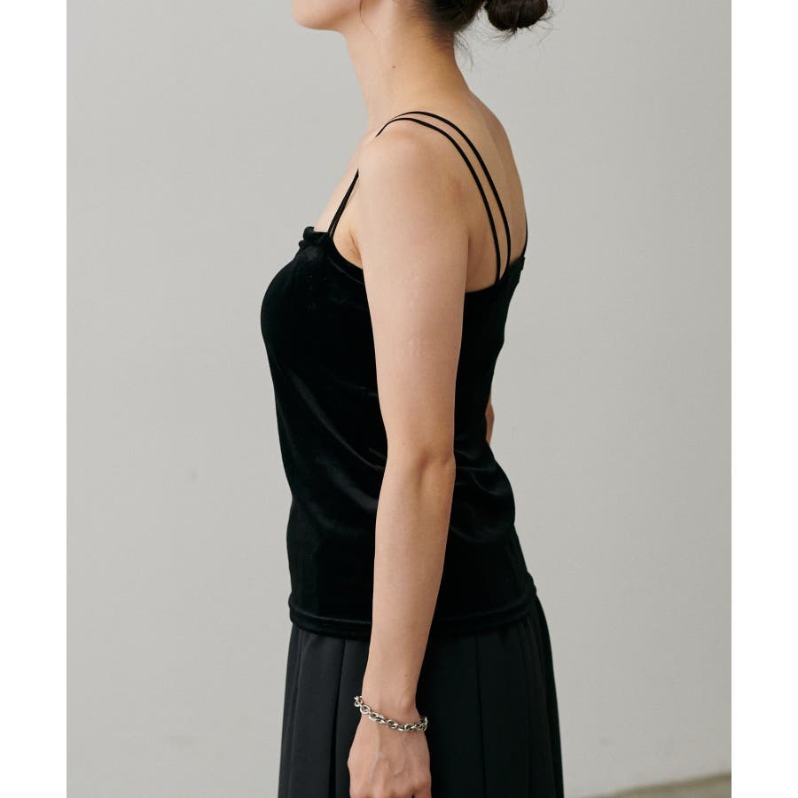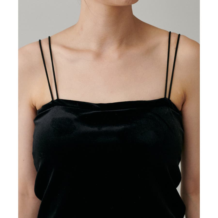 上品な光沢感が魅力のベロア素材で仕立てたカップ付きキャミソール。