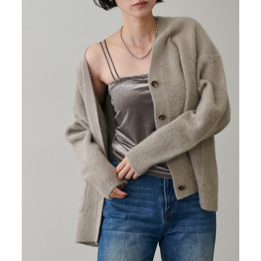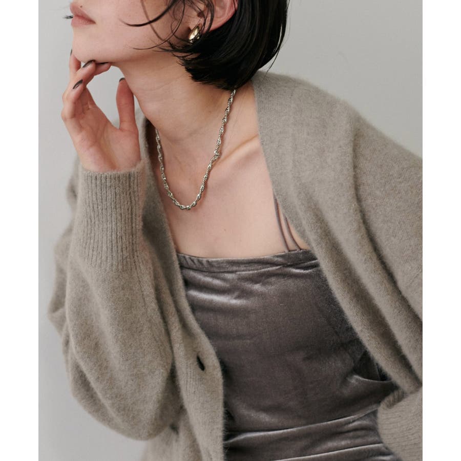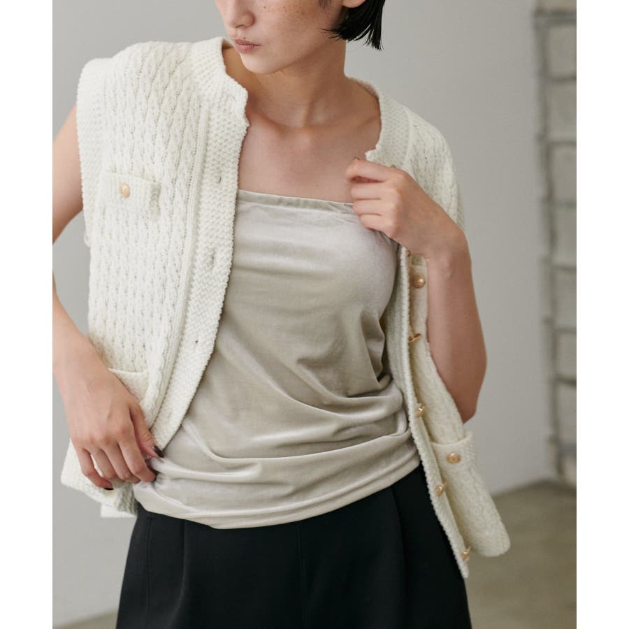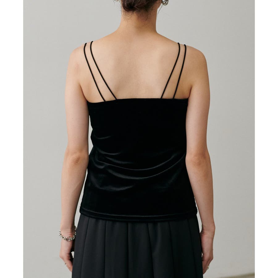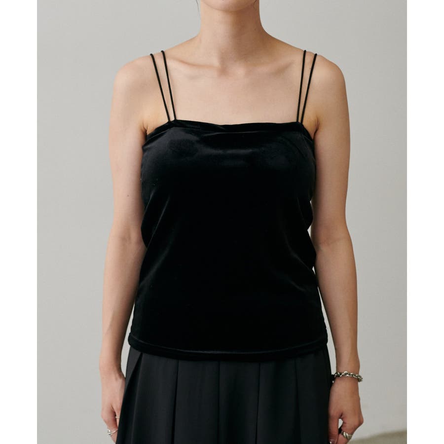 上品な光沢感が魅力のベロア素材で仕立てたカップ付きキャミソール。
