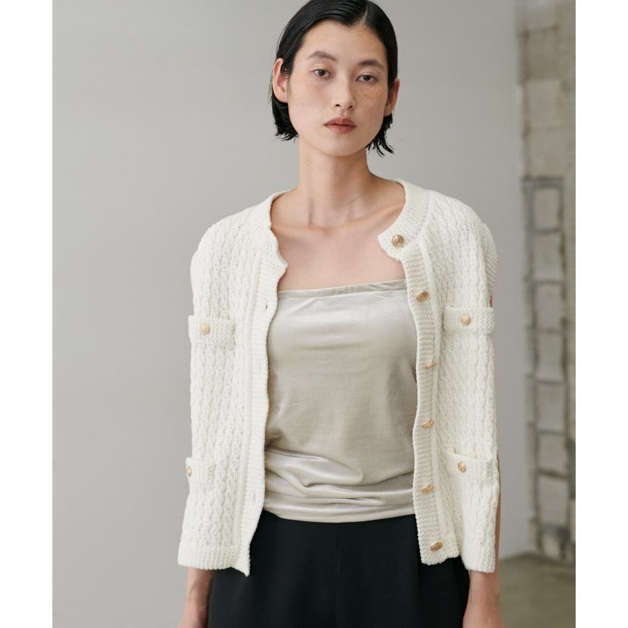カップ付きなのでインナーなしでも着用でき、1枚で着映えるデザインです。