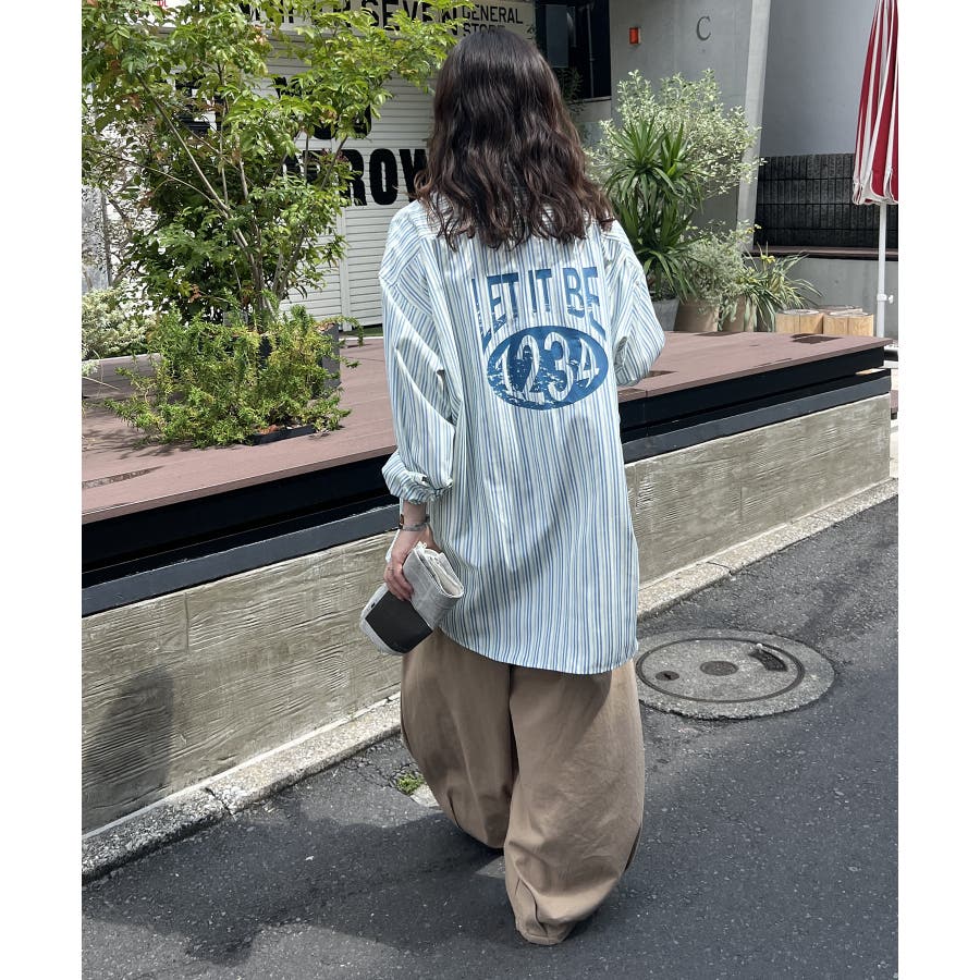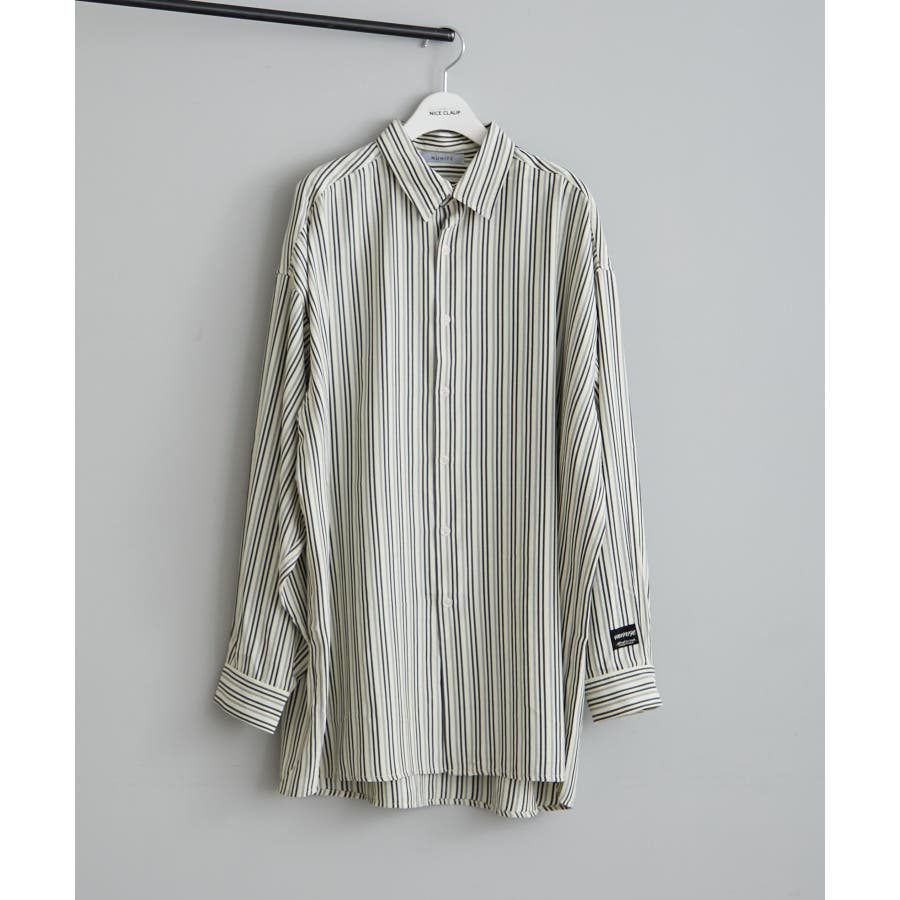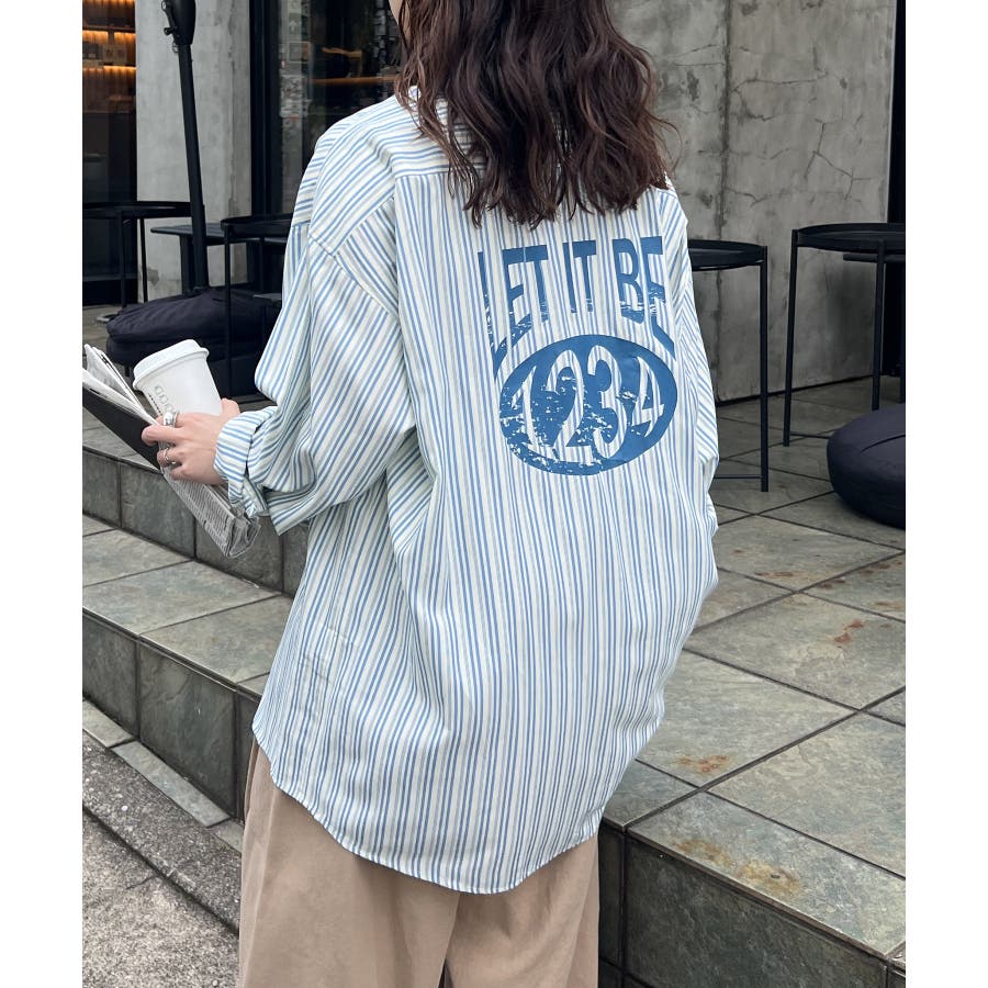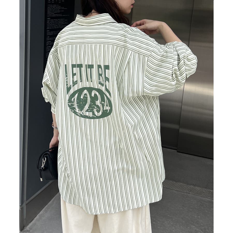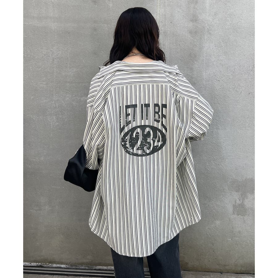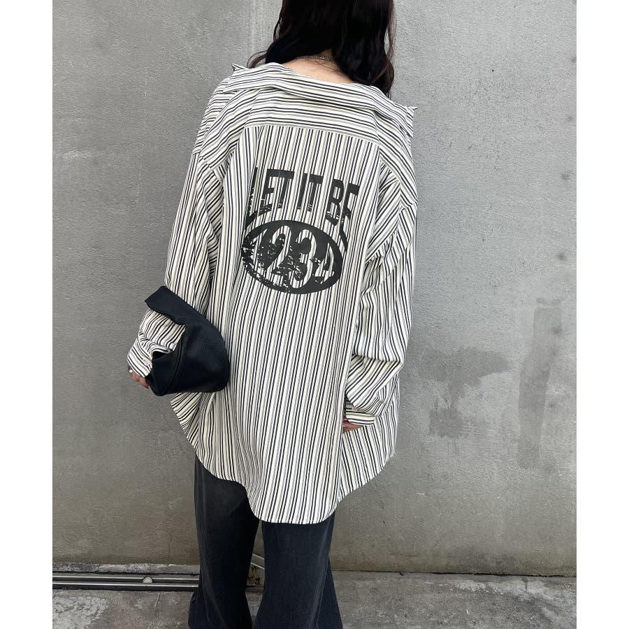 【ブラック】【NUNIFE】バックプリントストライプシャツ