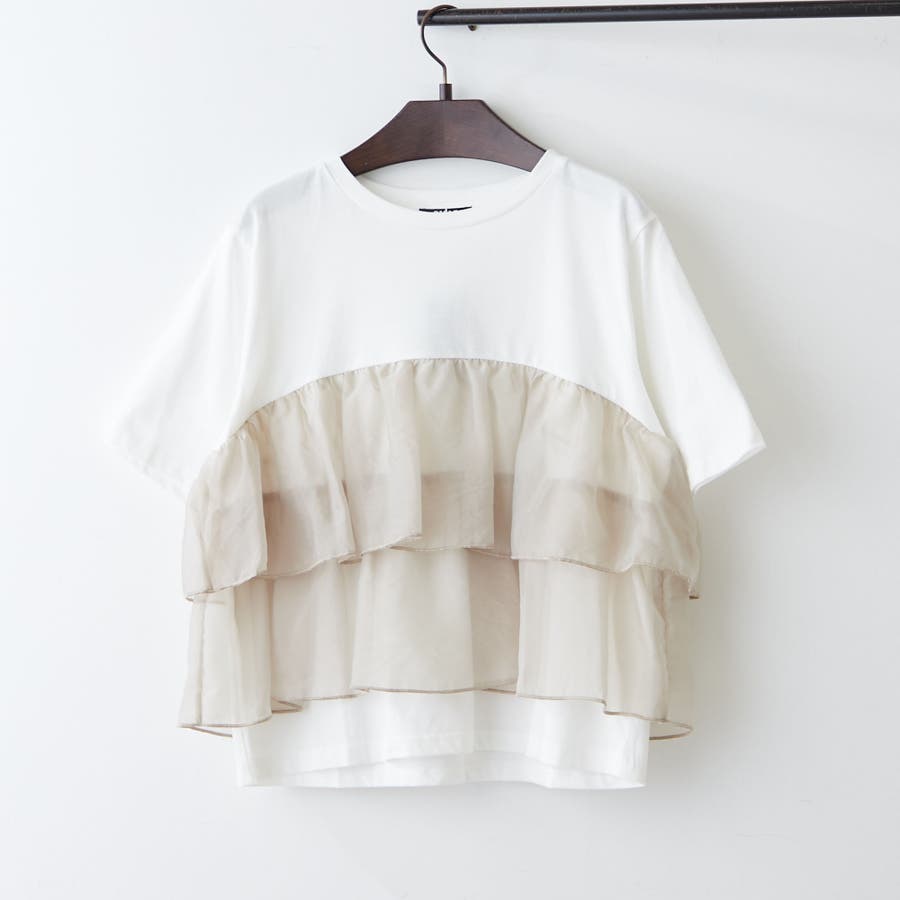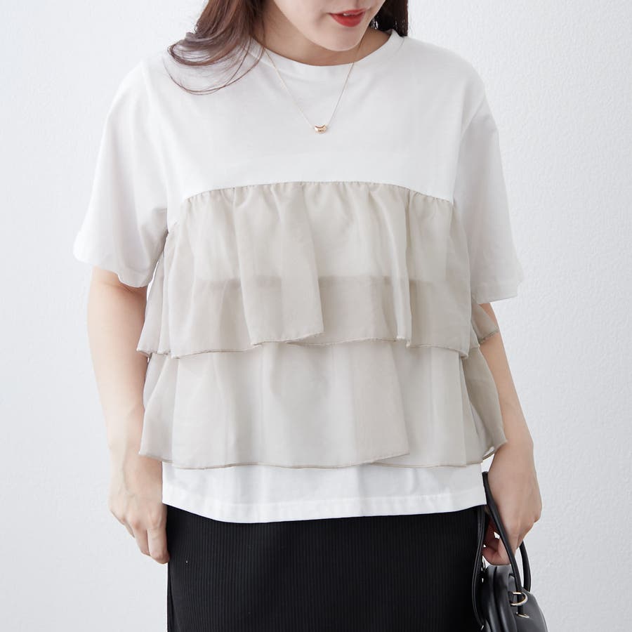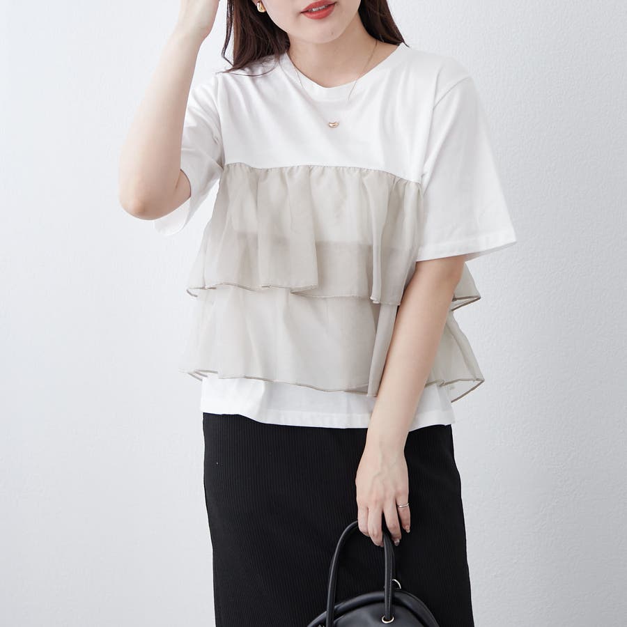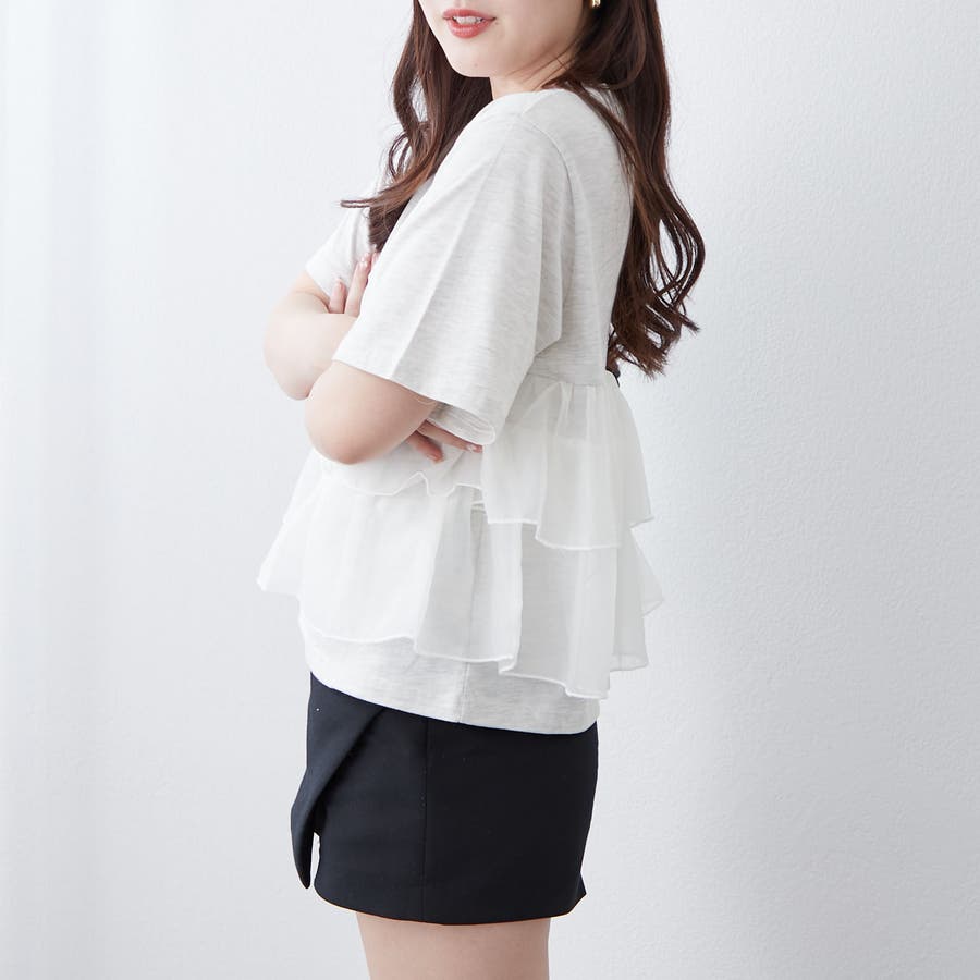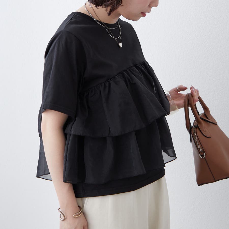 トレンドのフリルデザインをレイヤードしたかの様な、1枚でおしゃれを楽しめる優れたアイテム!