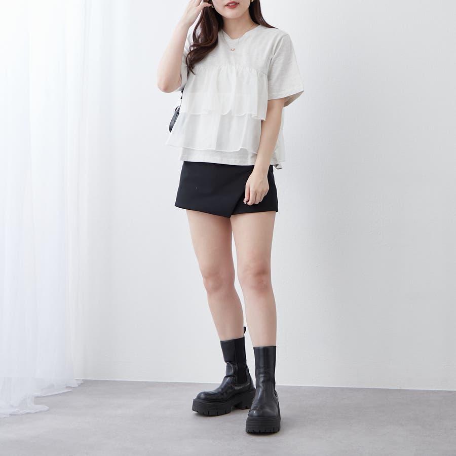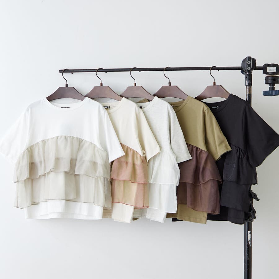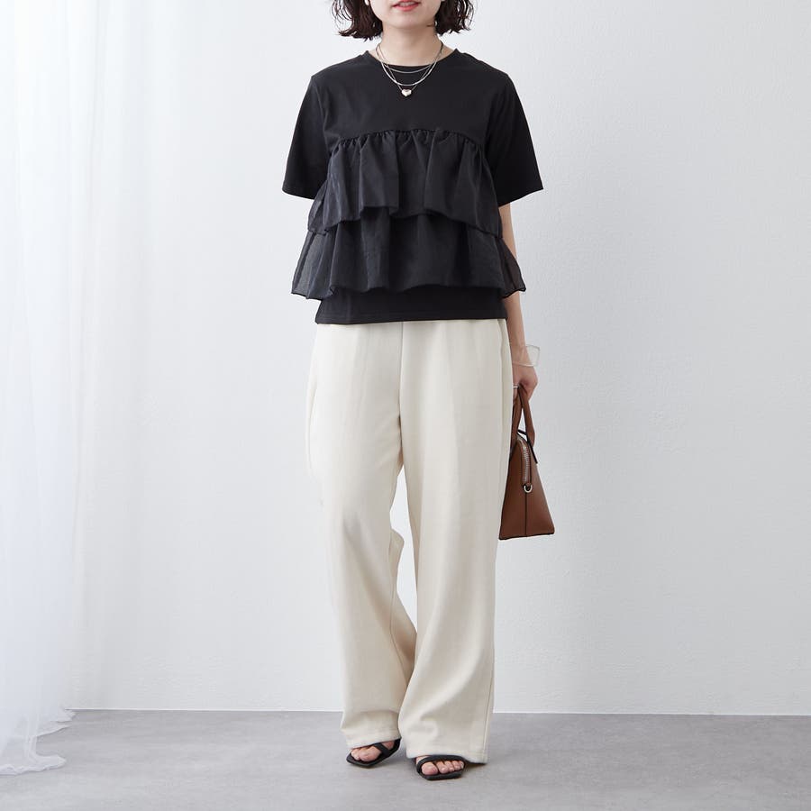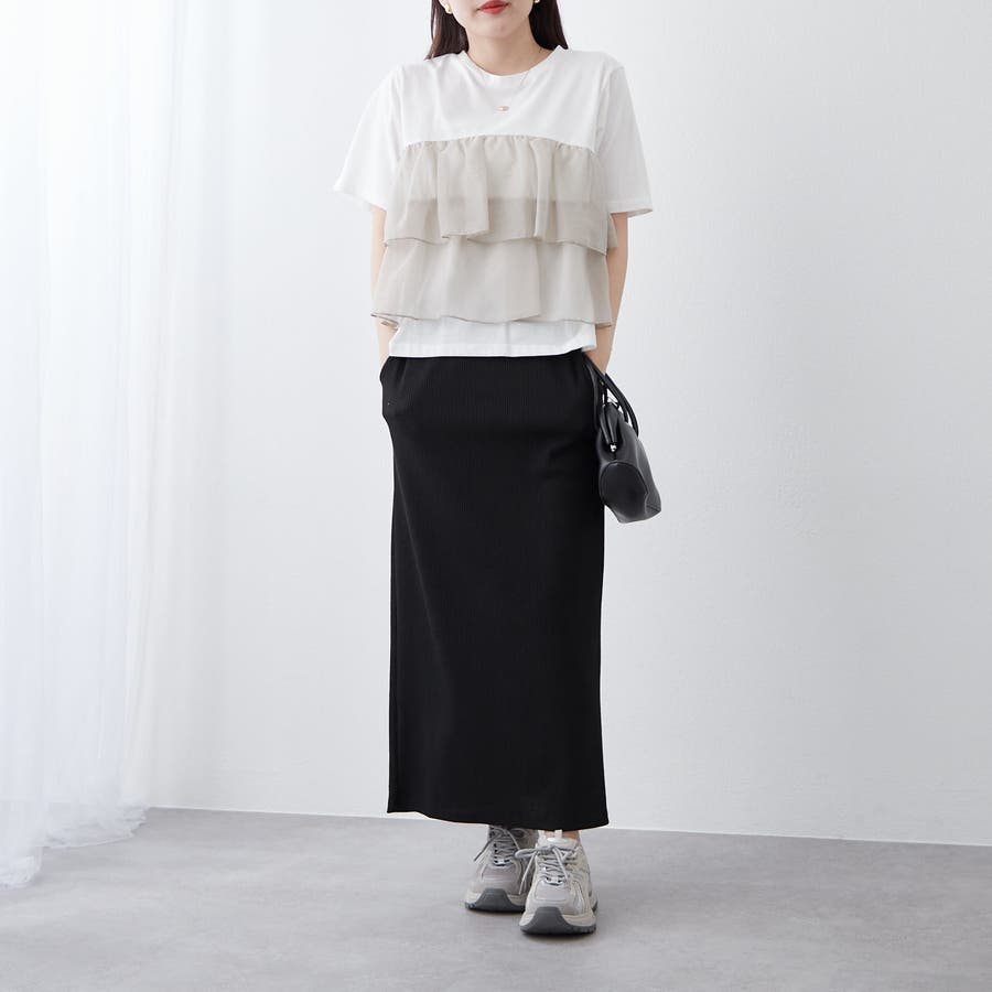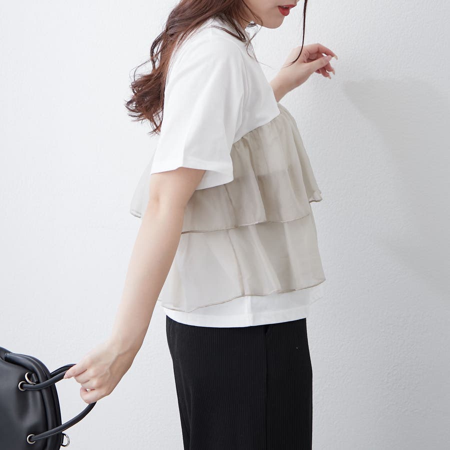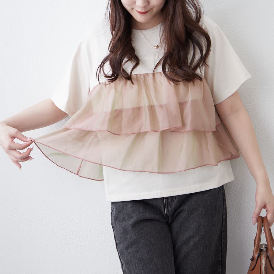 トレンドのフリルデザインをレイヤードしたかの様な、1枚でおしゃれを楽しめる優れたアイテム!