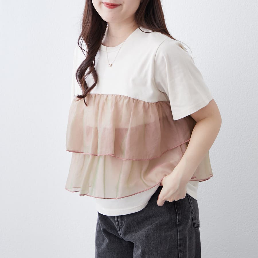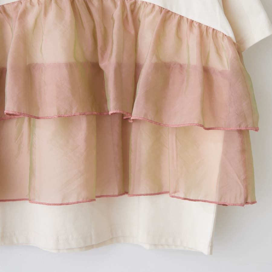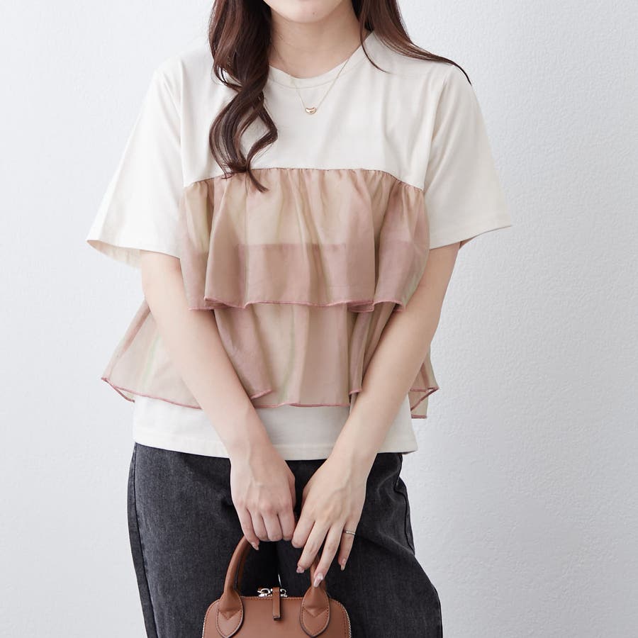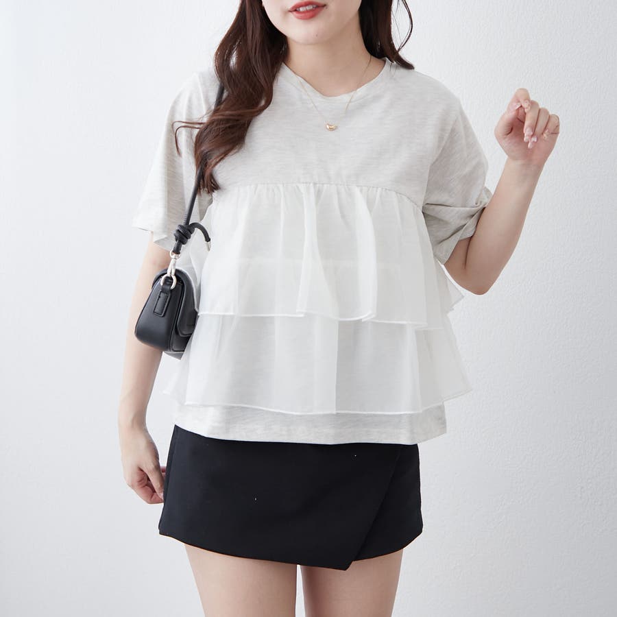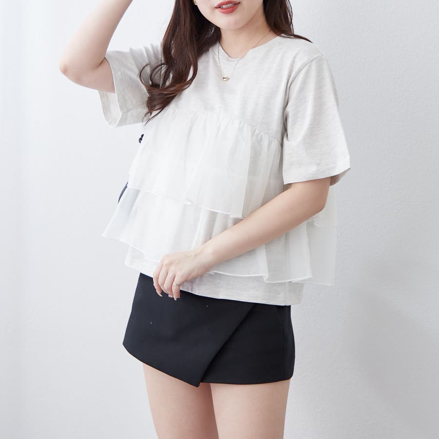 ・ふわっとしたギャザーをたっぷり寄せた、華やかなドッキングTシャツ