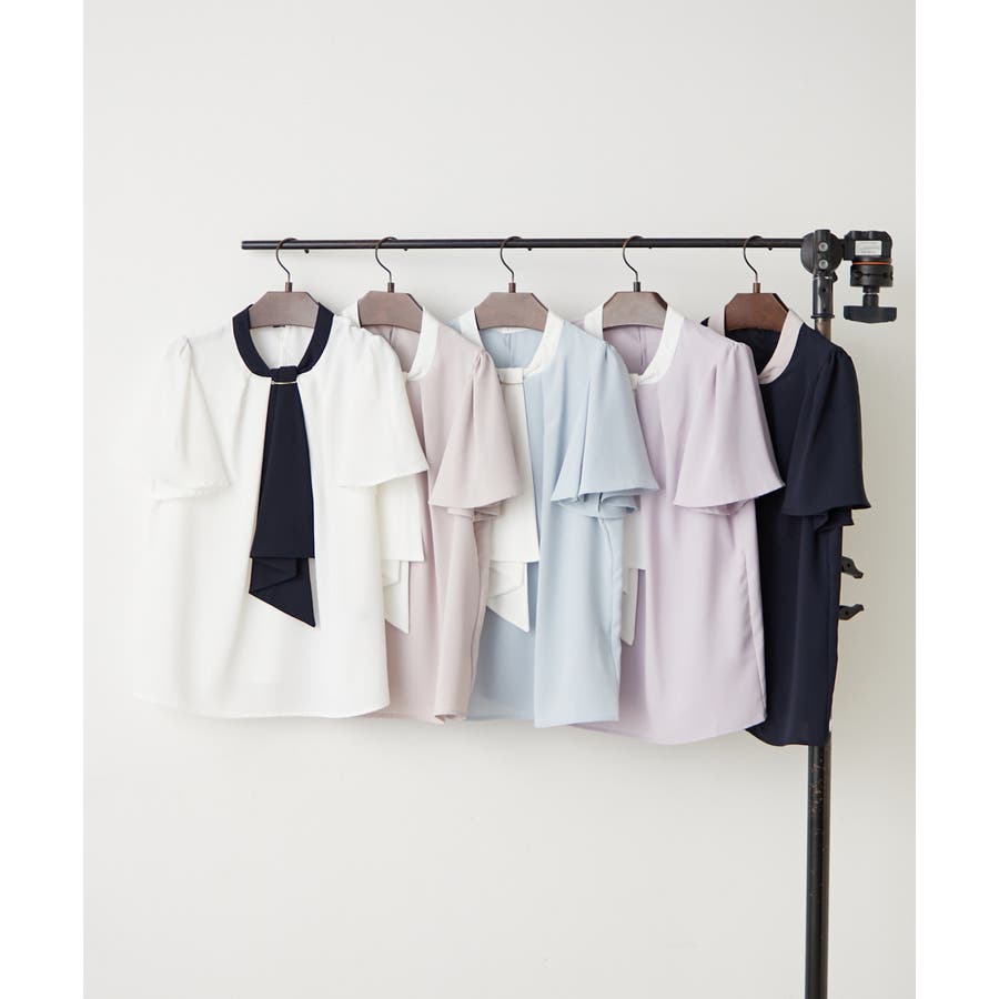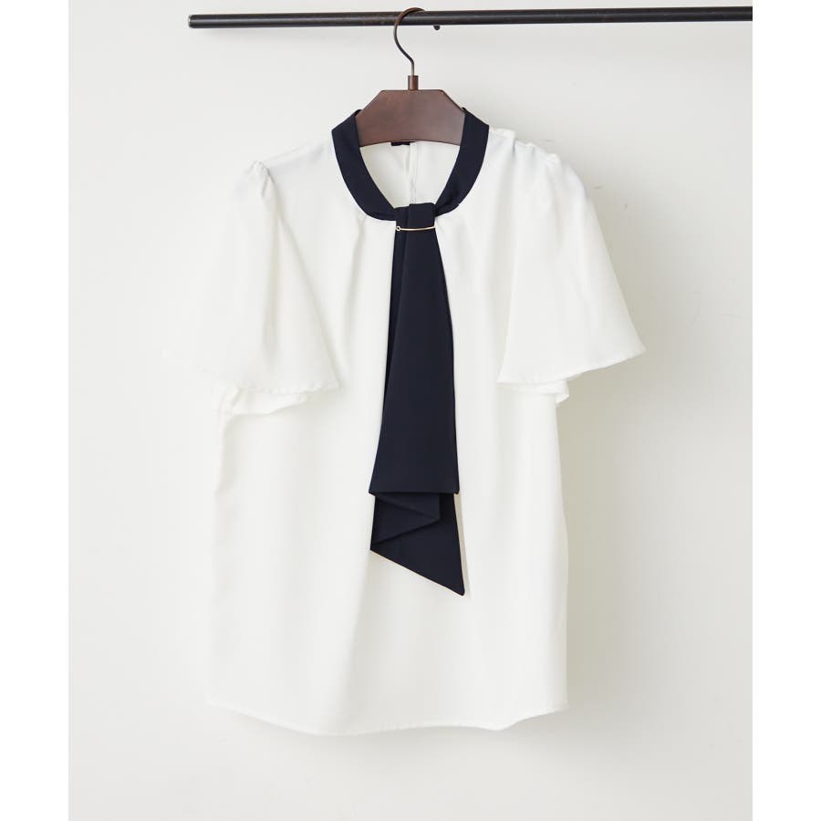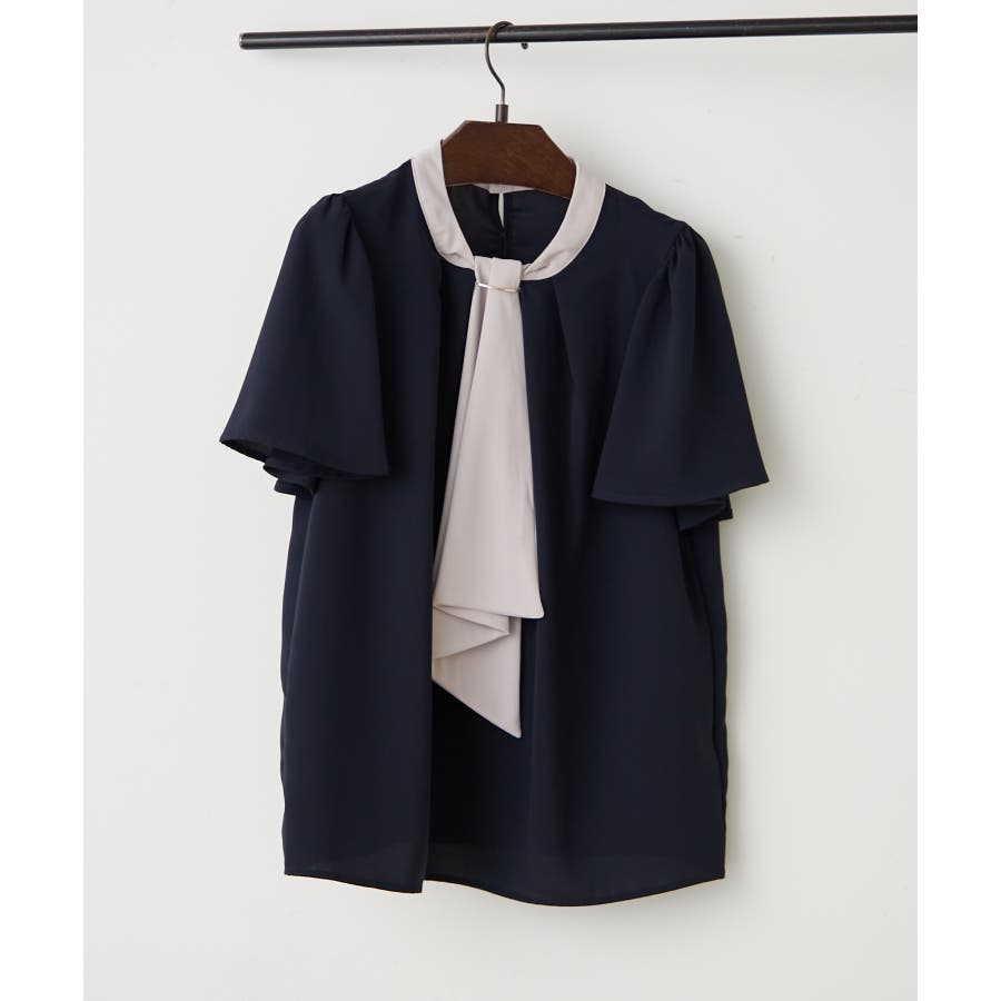 【Web限定】取り外し可能◎襟ぐりチャーム付きボウタイブラウス