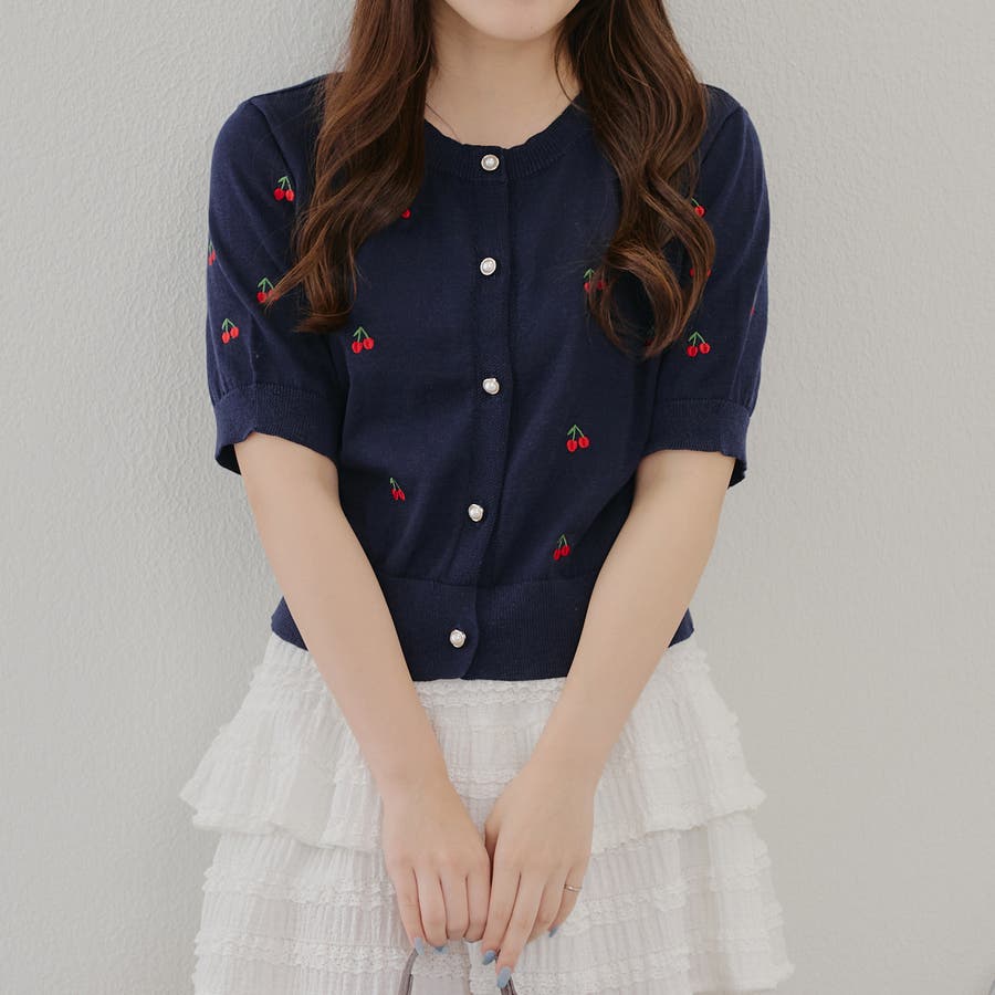 RMAF Remindmeandforever olivedesolive niceclaup 夏 夏服 夏物 春 春服 春物 韓国 韓国系 韓国風 韓国ファッション 10代 20代 30代 大人 人気 大人かわいい 大人カジュアル トレンド 新作 プチプラ 半袖ニット 半袖 チェリー 刺繍 カーディガン カーデ 羽織 トップス ニット 刺繍ニット 刺繍トップス 6051050300