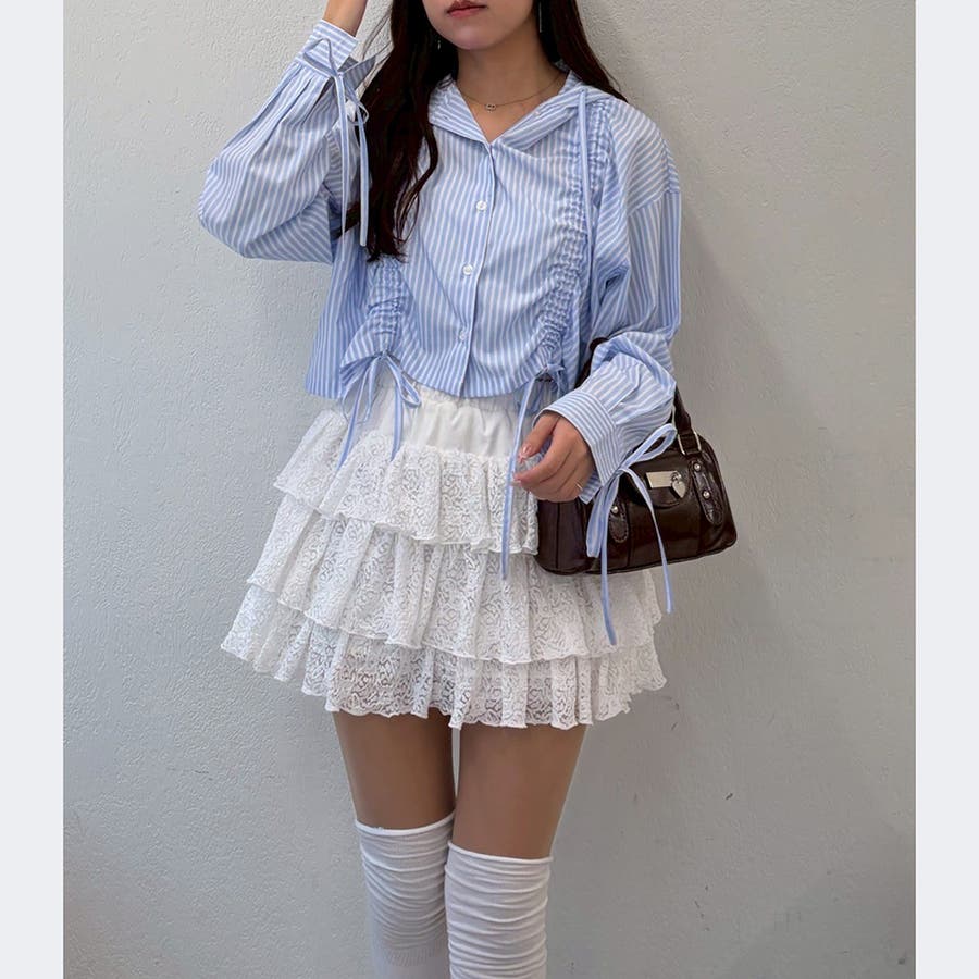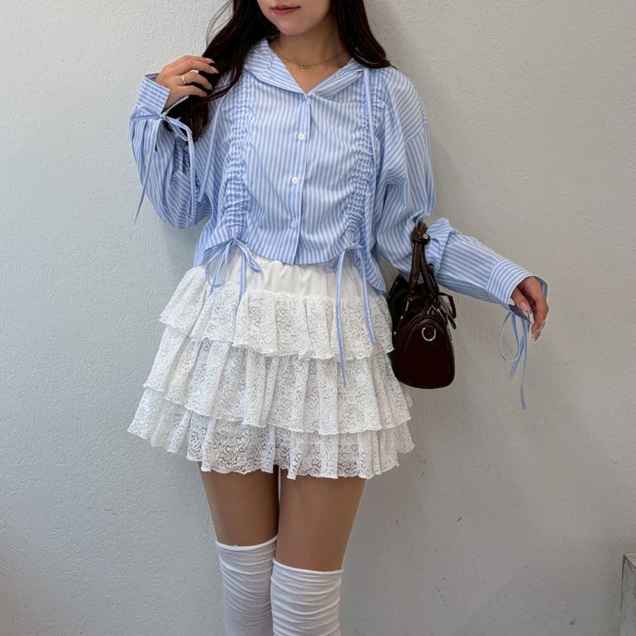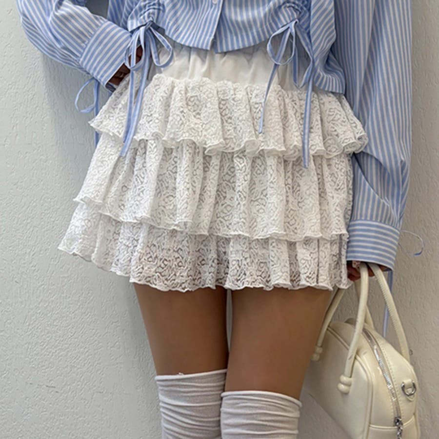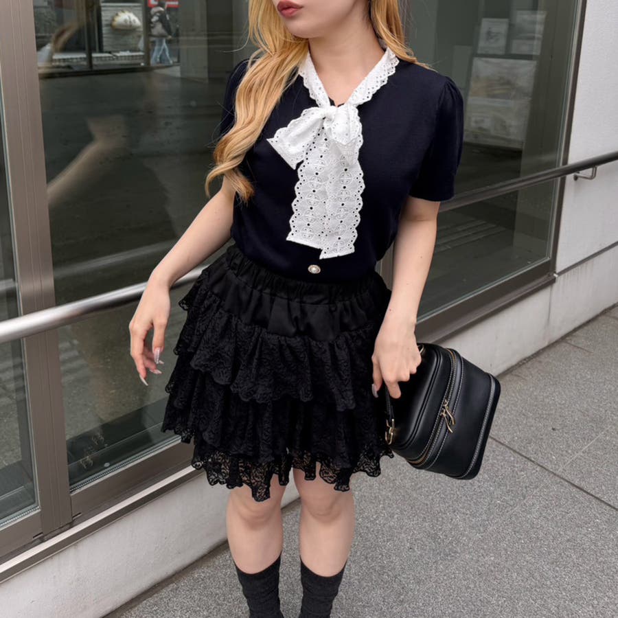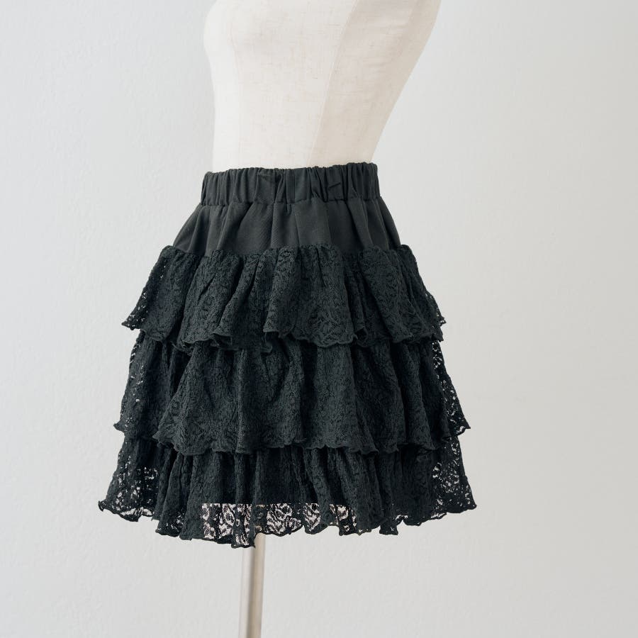 ・・繊細なレースを贅沢に使用した、ロマンティックな3段フリルスカート