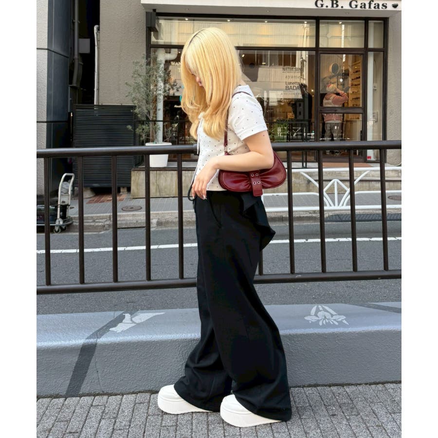 後ろ姿までかわいい!リボン付きバレルカットパンツ