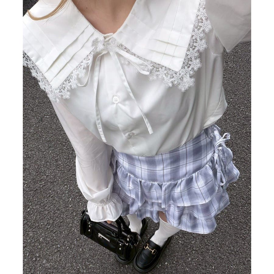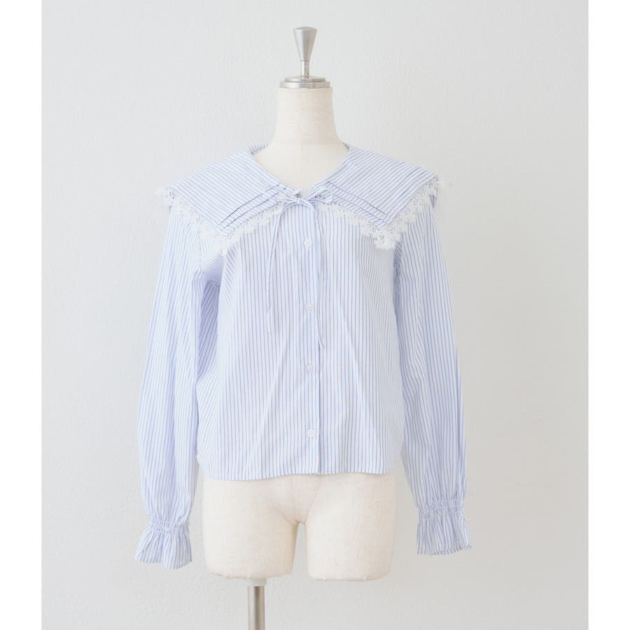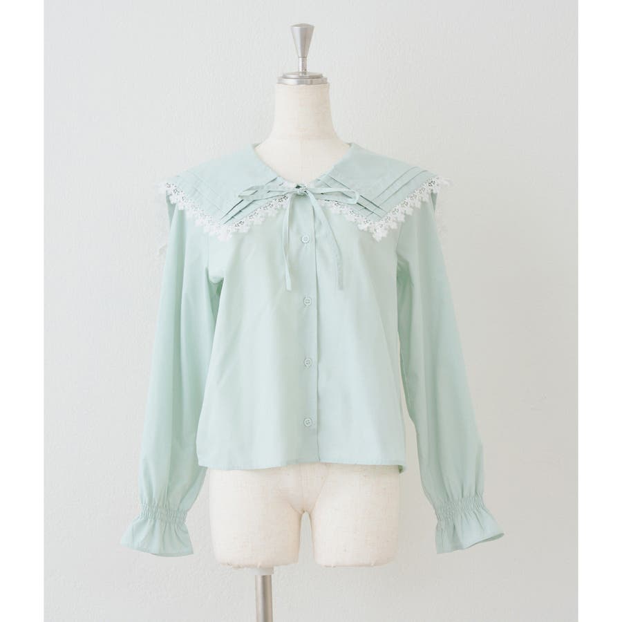 ・清楚で上品な印象を与える、ピンタックとレースをあしらった襟がポイントのブラウス