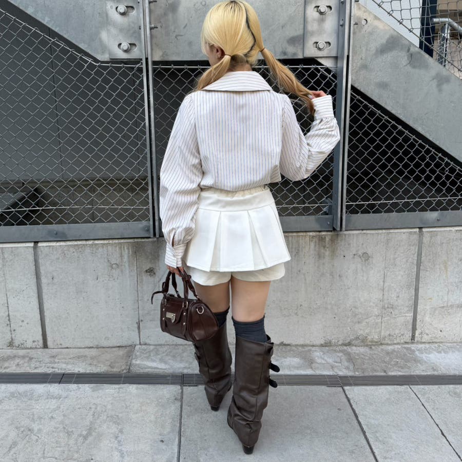 ・上品な着こなしが叶う、ニットポロシャツとプリーツスカートのセットアップ