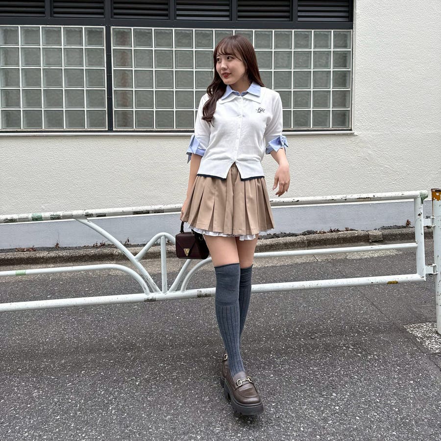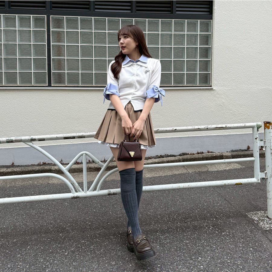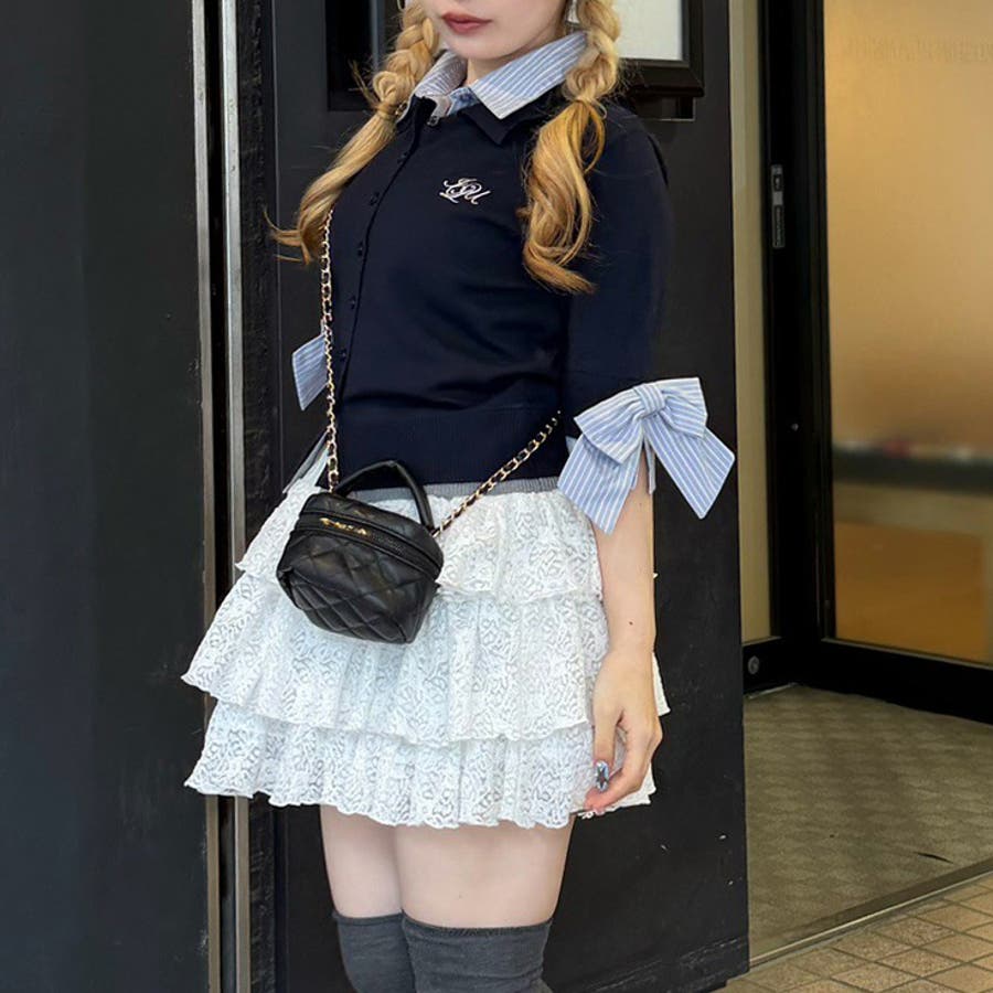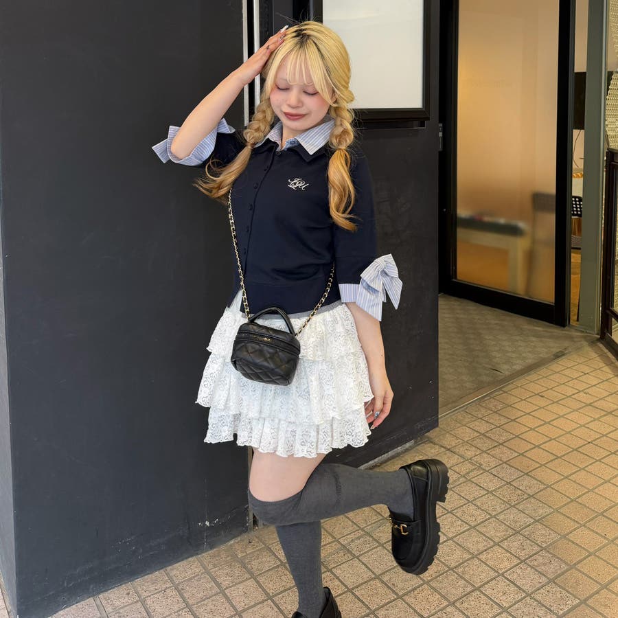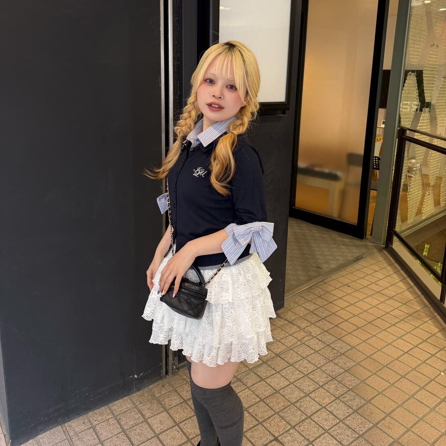 ・フレアスカートと合わせて、とことん甘いスタイリングに。足元はスニーカーでカジュアルダウンすると、こなれ感が出ます