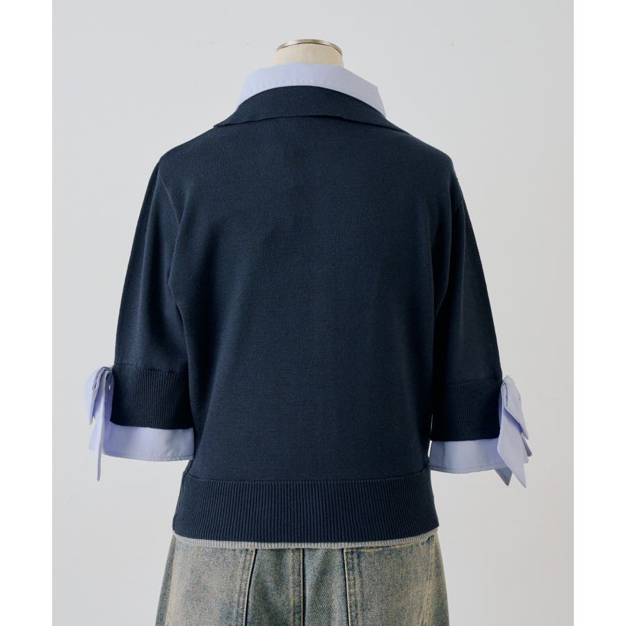 2枚衿ドッキング5分袖ニット