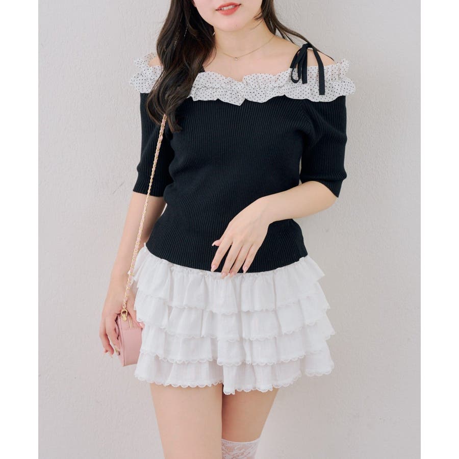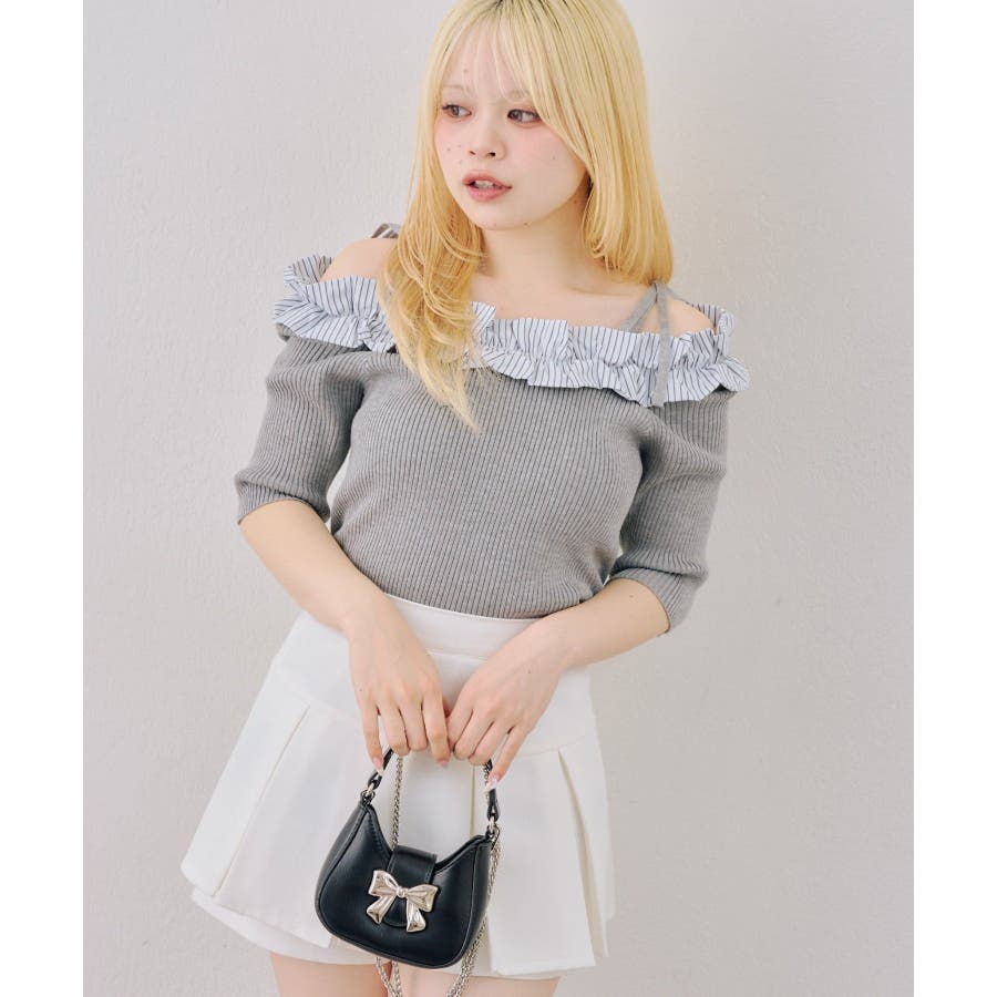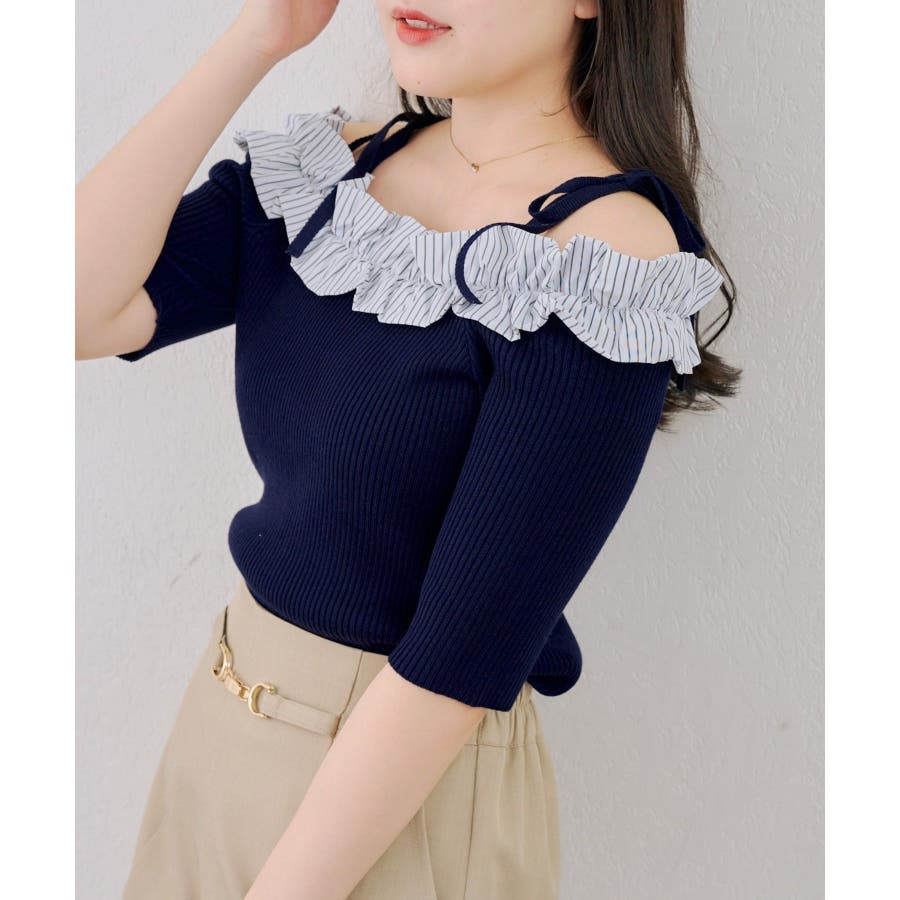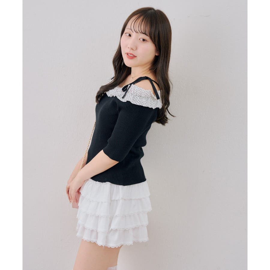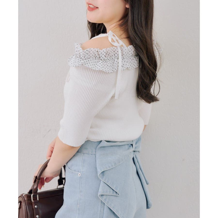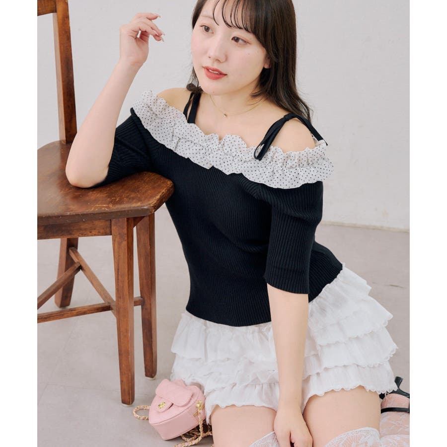 オフショルフリルニットプルオーバー